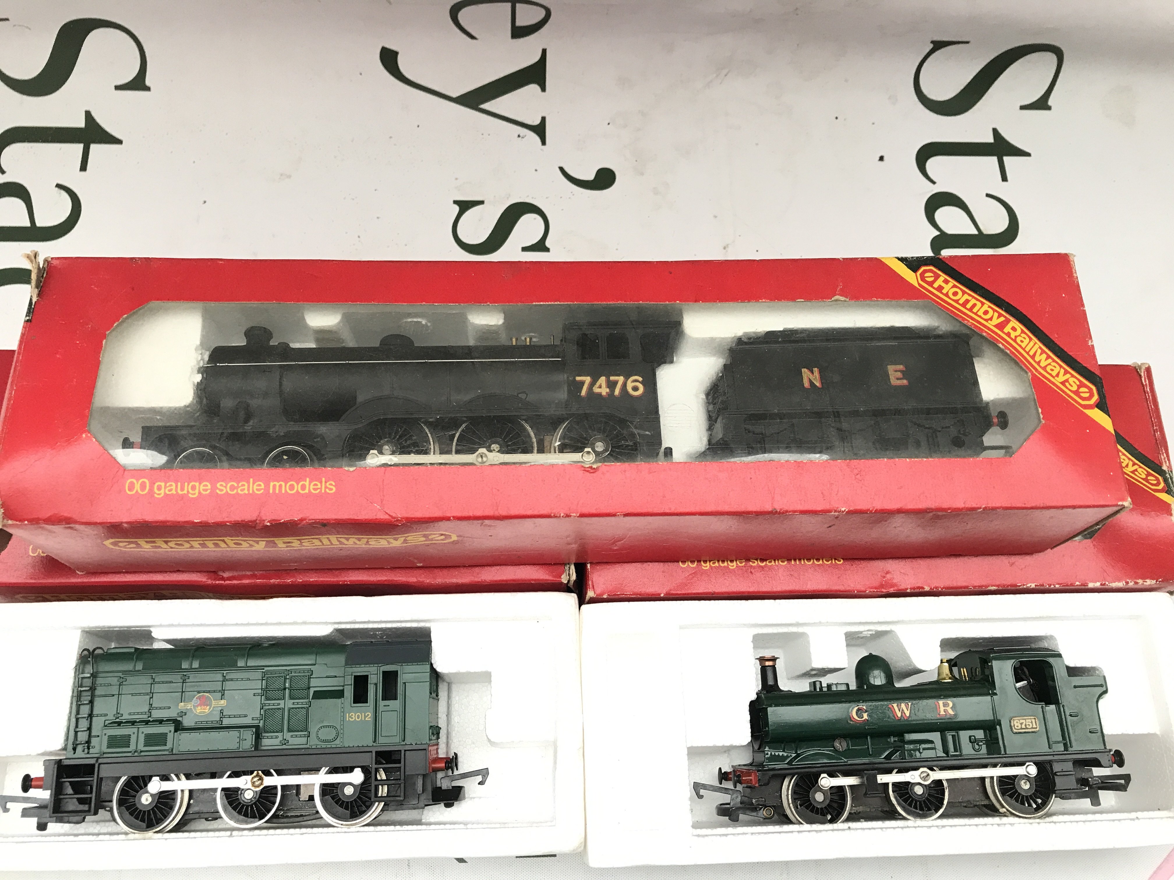 Withdrawn - 3 Boxed Hornby 00 Gauge Locomotives. A Diesel Shunter #R.156 A GWR Loco #R.041 And A LNER Loco Class B12/3 #R150. (3)