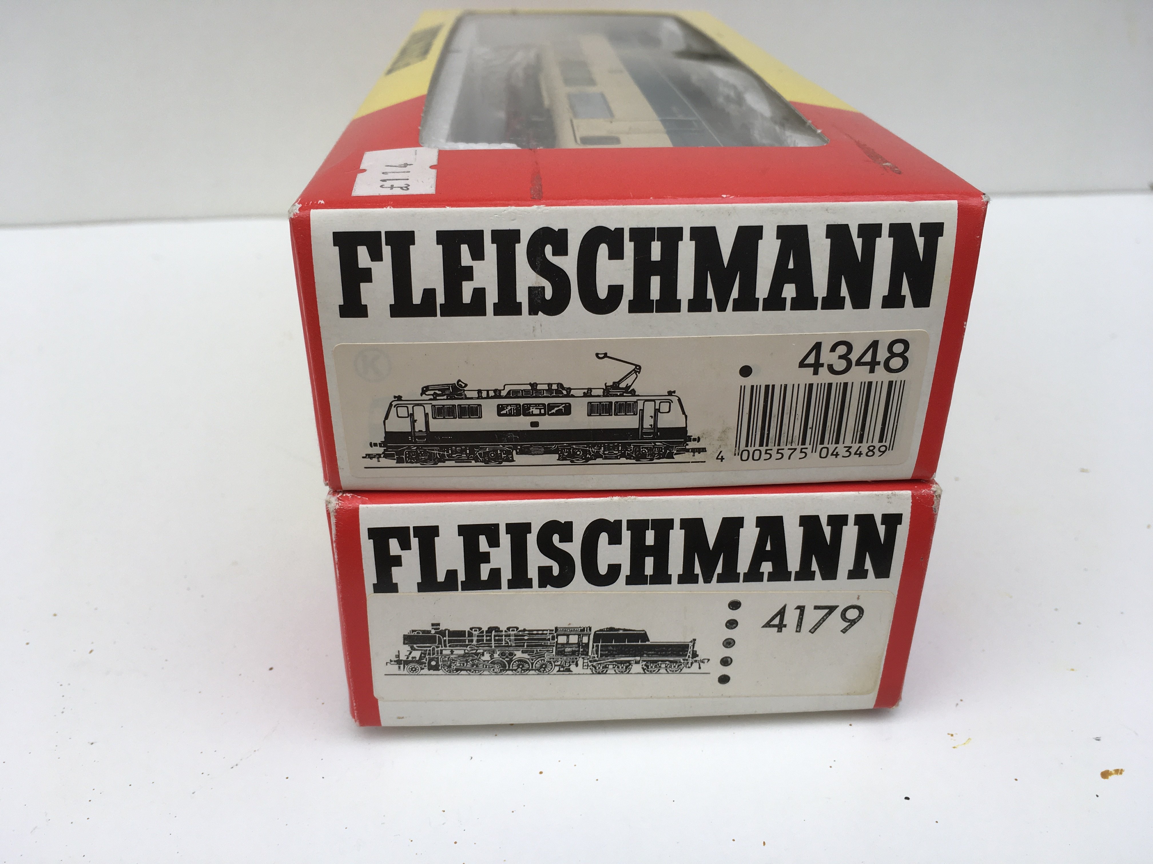 2x boxed model railway locomotives by Fleischmann featuring 4348 and 4179. No reserve
