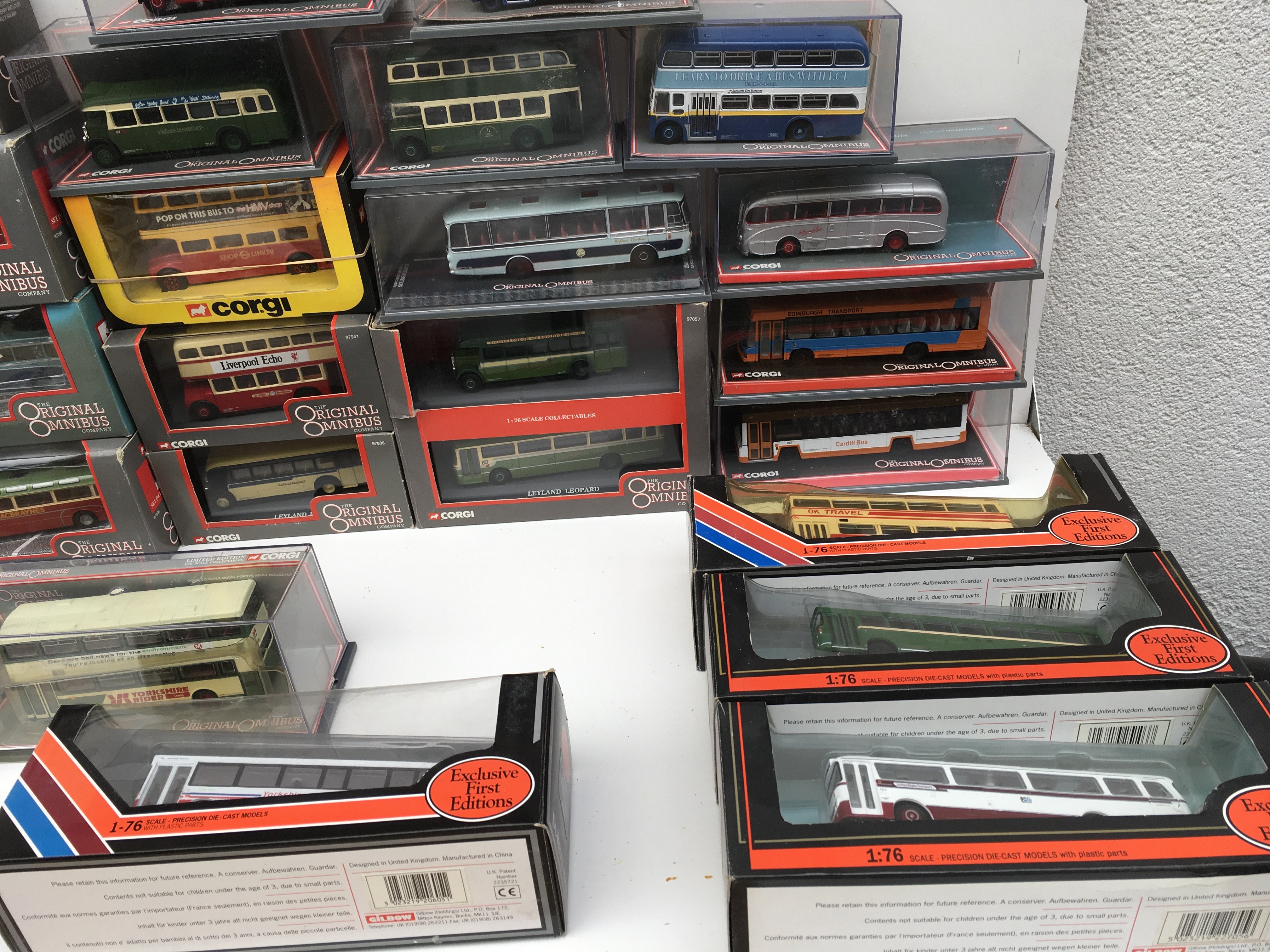 A collection of 25 boxed diecast model vehicles by Corgi and EFE featuring buses. Some limited edition with certificates. No reserve