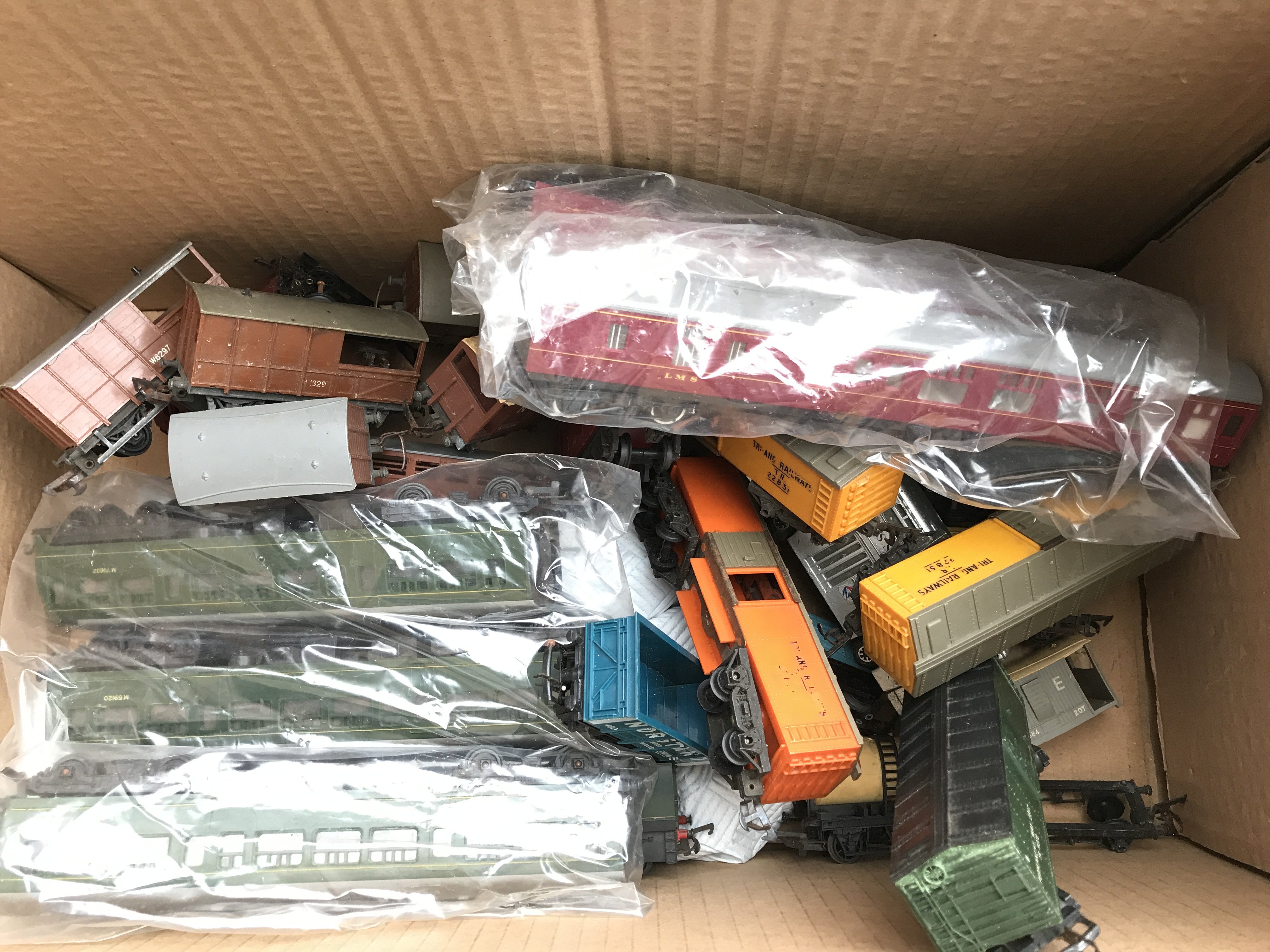 Withdrawn - A Box Containing Loose 00 Gauge Wagons And Coaches.