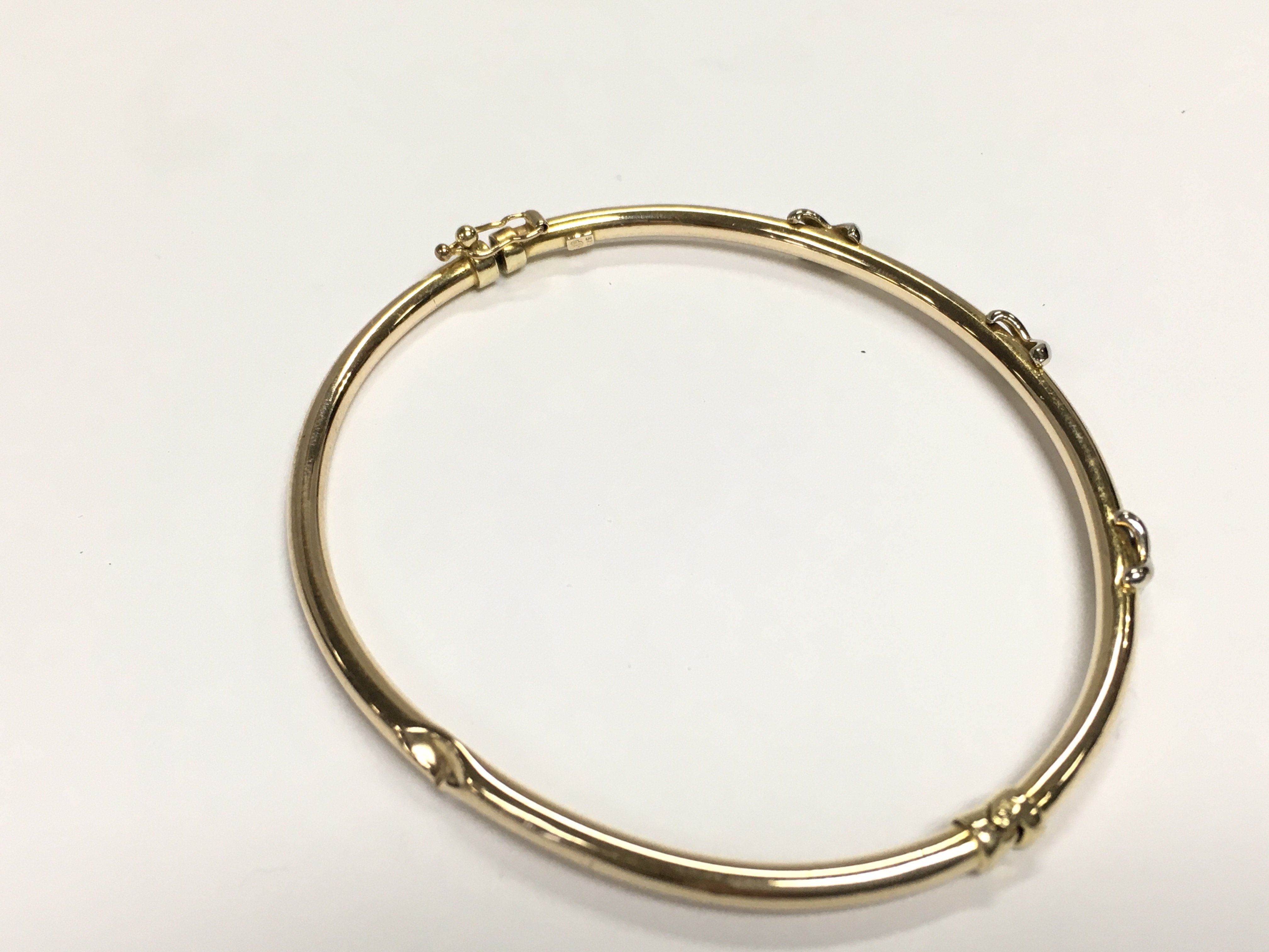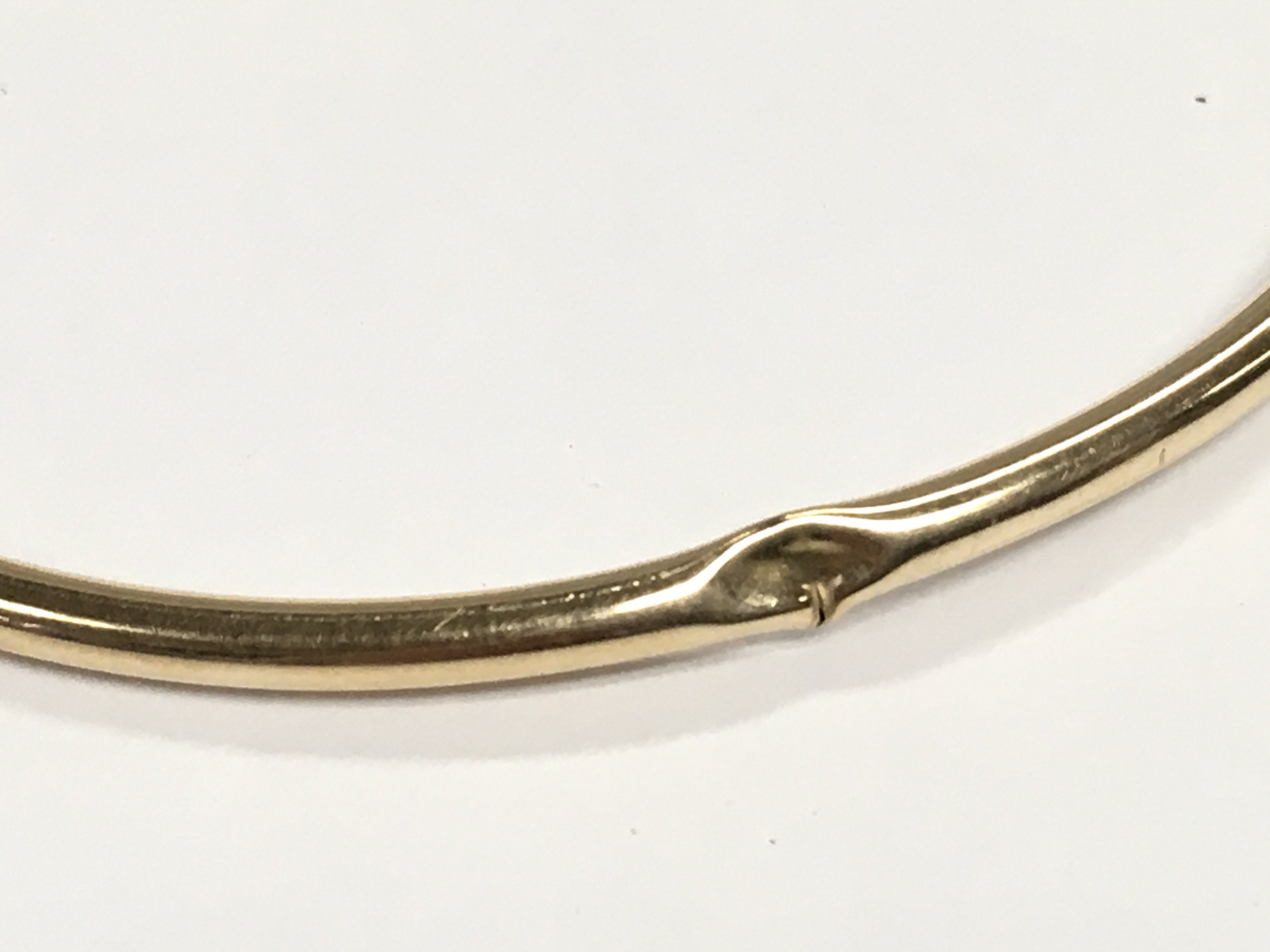 A 9ct gold bangle. Approximately 7cm diameter. 4.39g