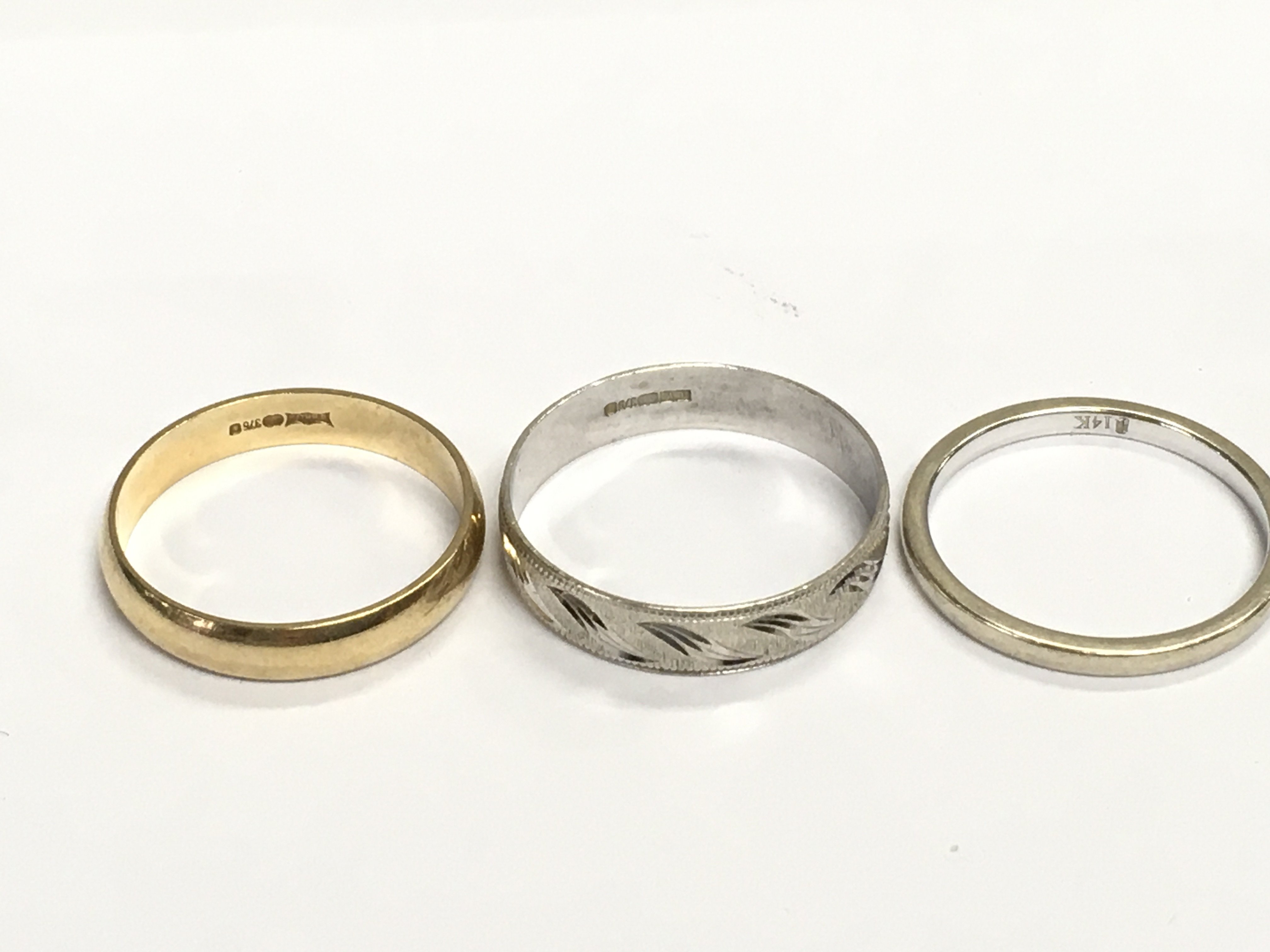 Two 9ct gold rings 4.49g and a 14ct gold ring 2.26g Postage A