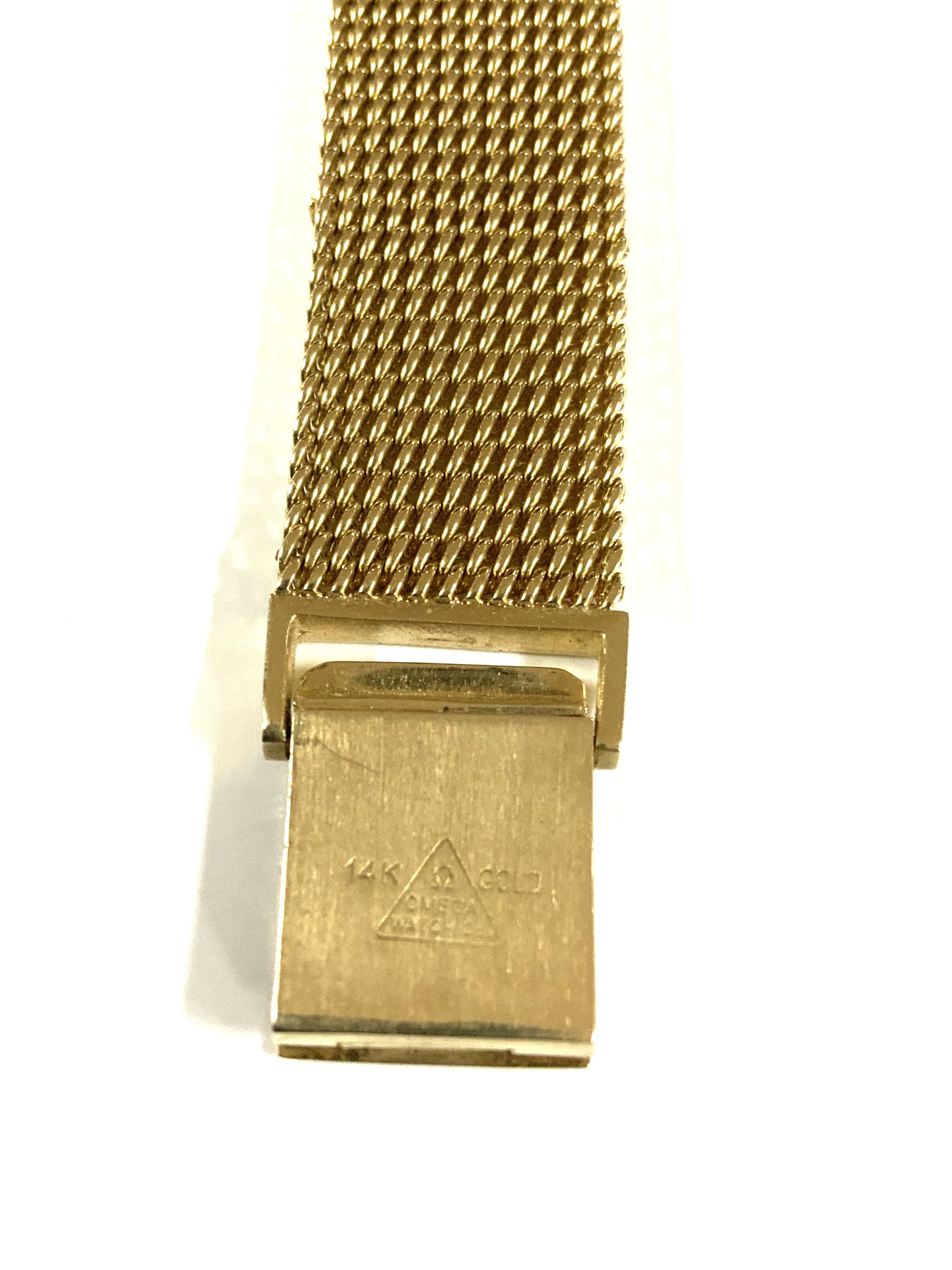 A gents 14ct yellow gold Omega wristwatch watch, mechanical movement. Weight 55g. (A)