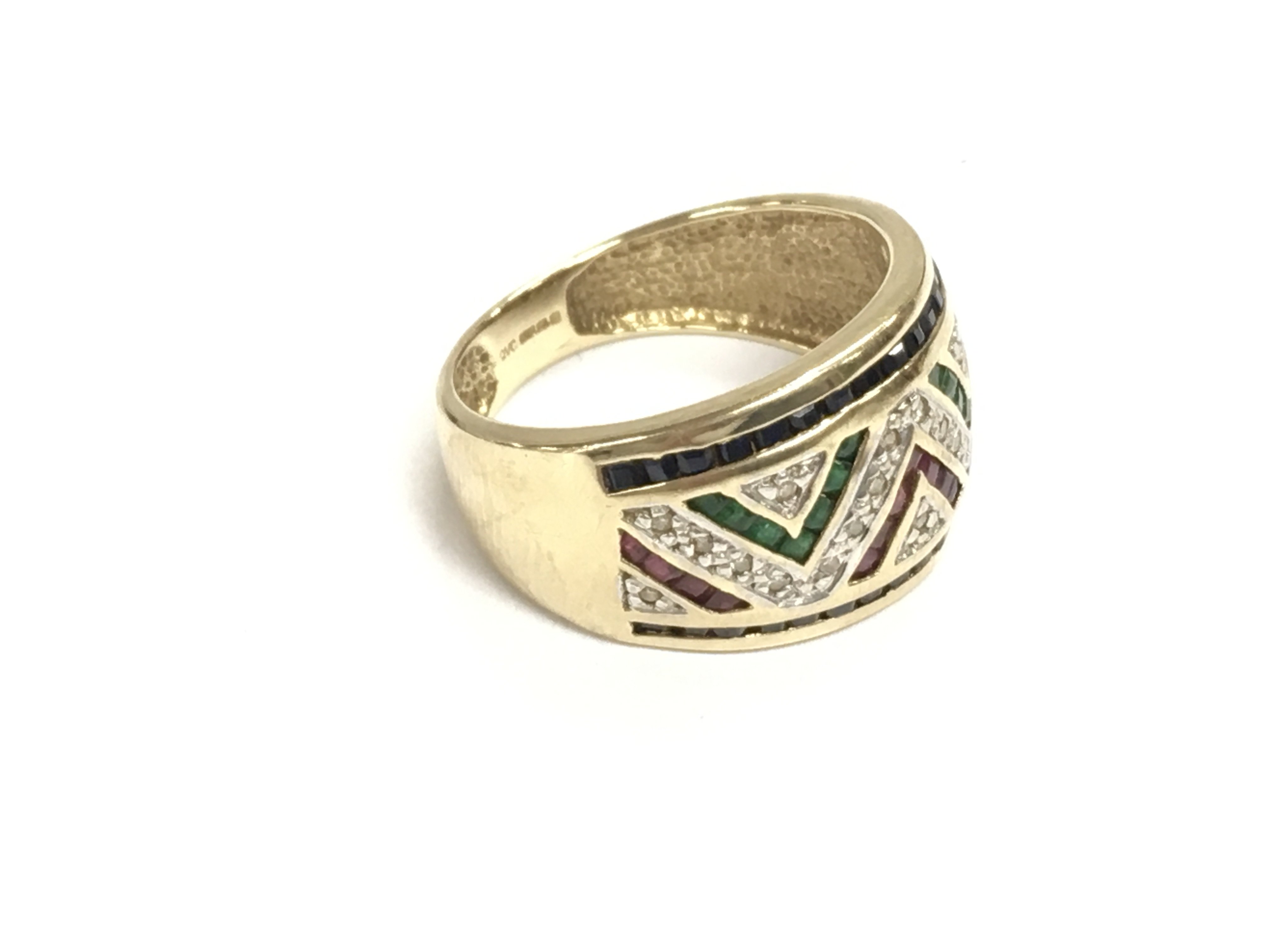 A 9ct gold multi stone ring size R and 5.16g Postage B
