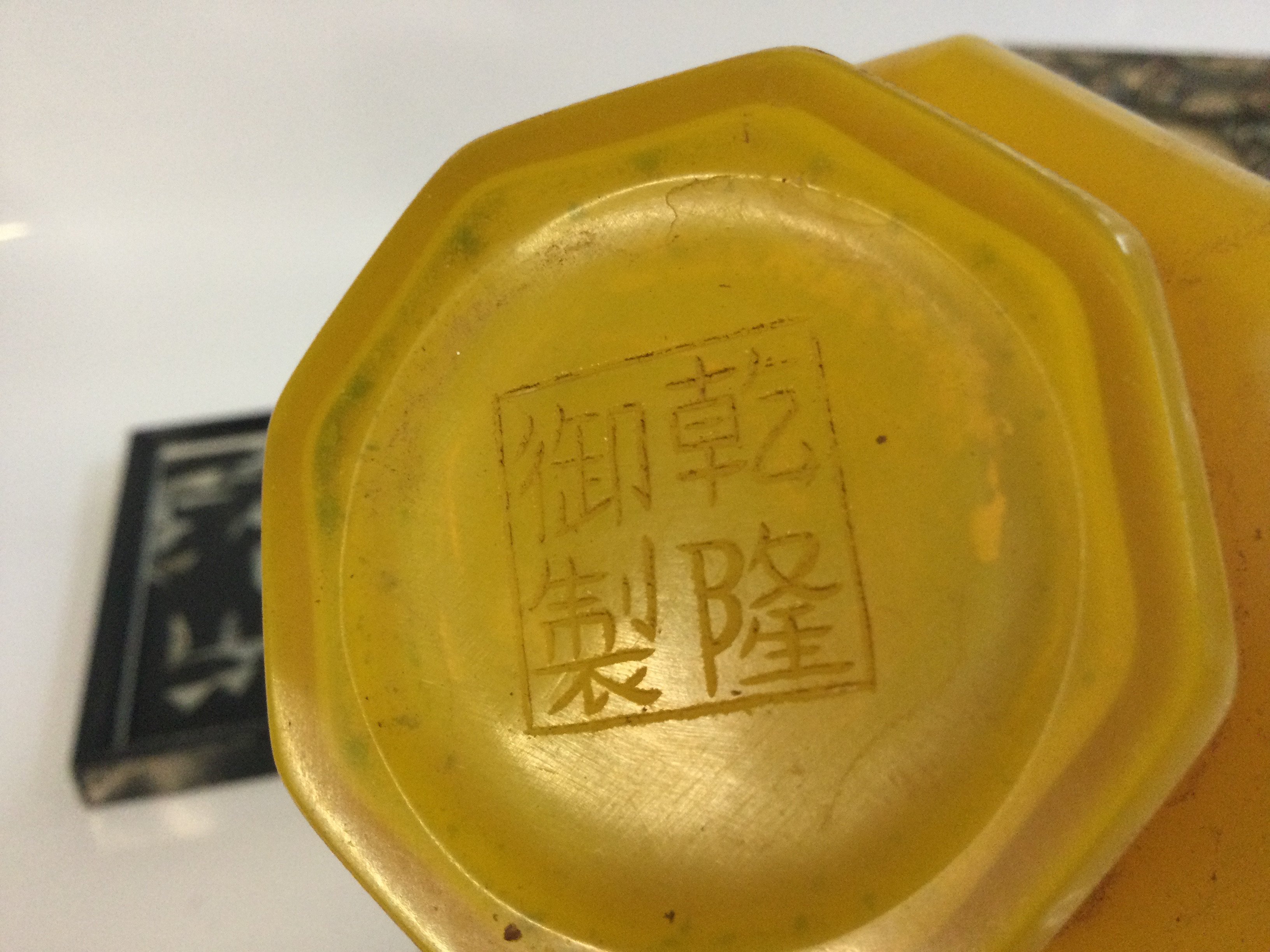 Chinese lacquer and mother of pearl scene picture , yellow glaze peking vase 19cm tall , dragon picture frame and a miniature picture. This lot cannot be posted