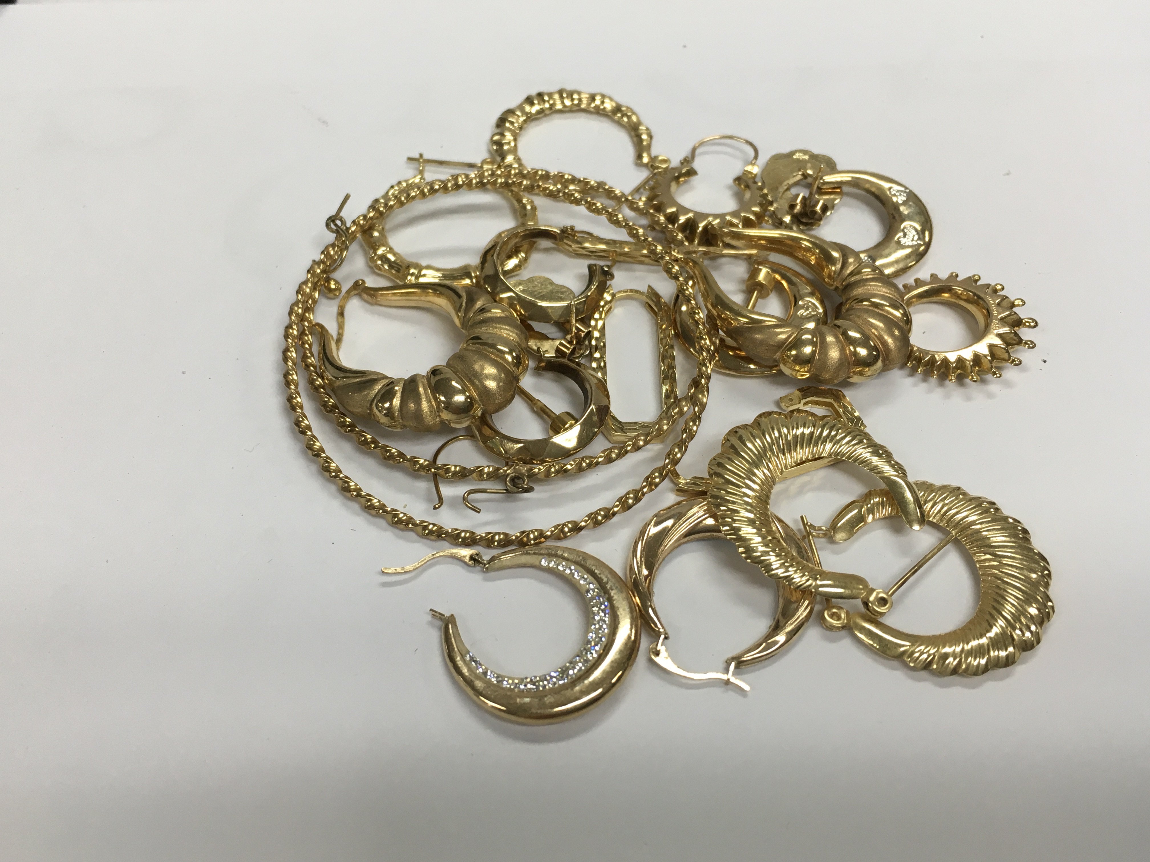 A large collection of assorted 9ct gold earrings. 26.20g Approx