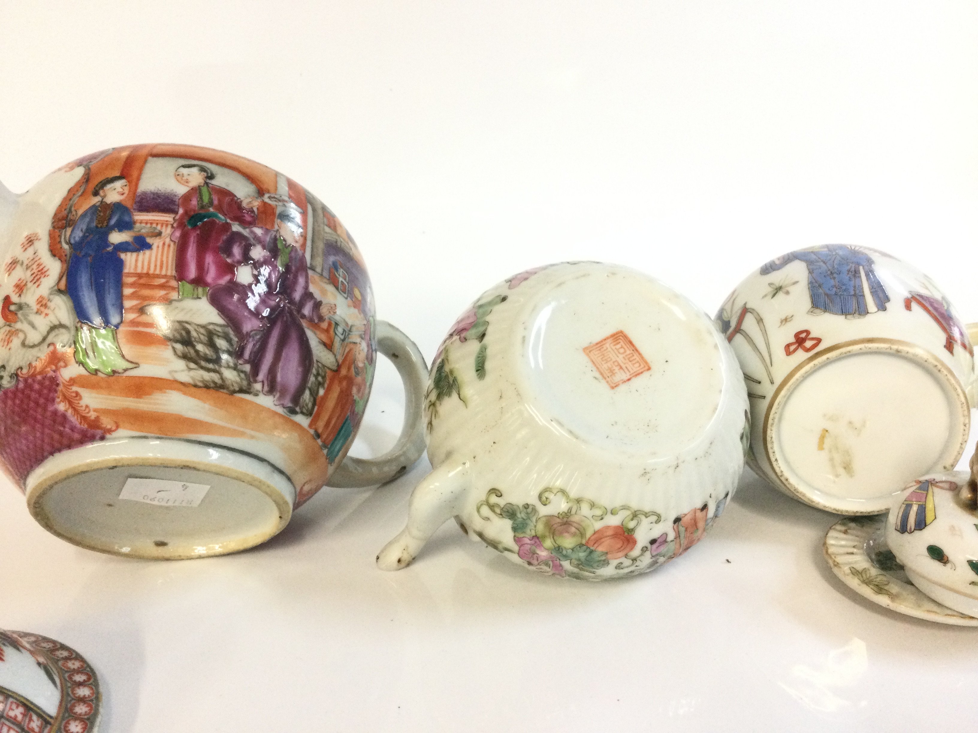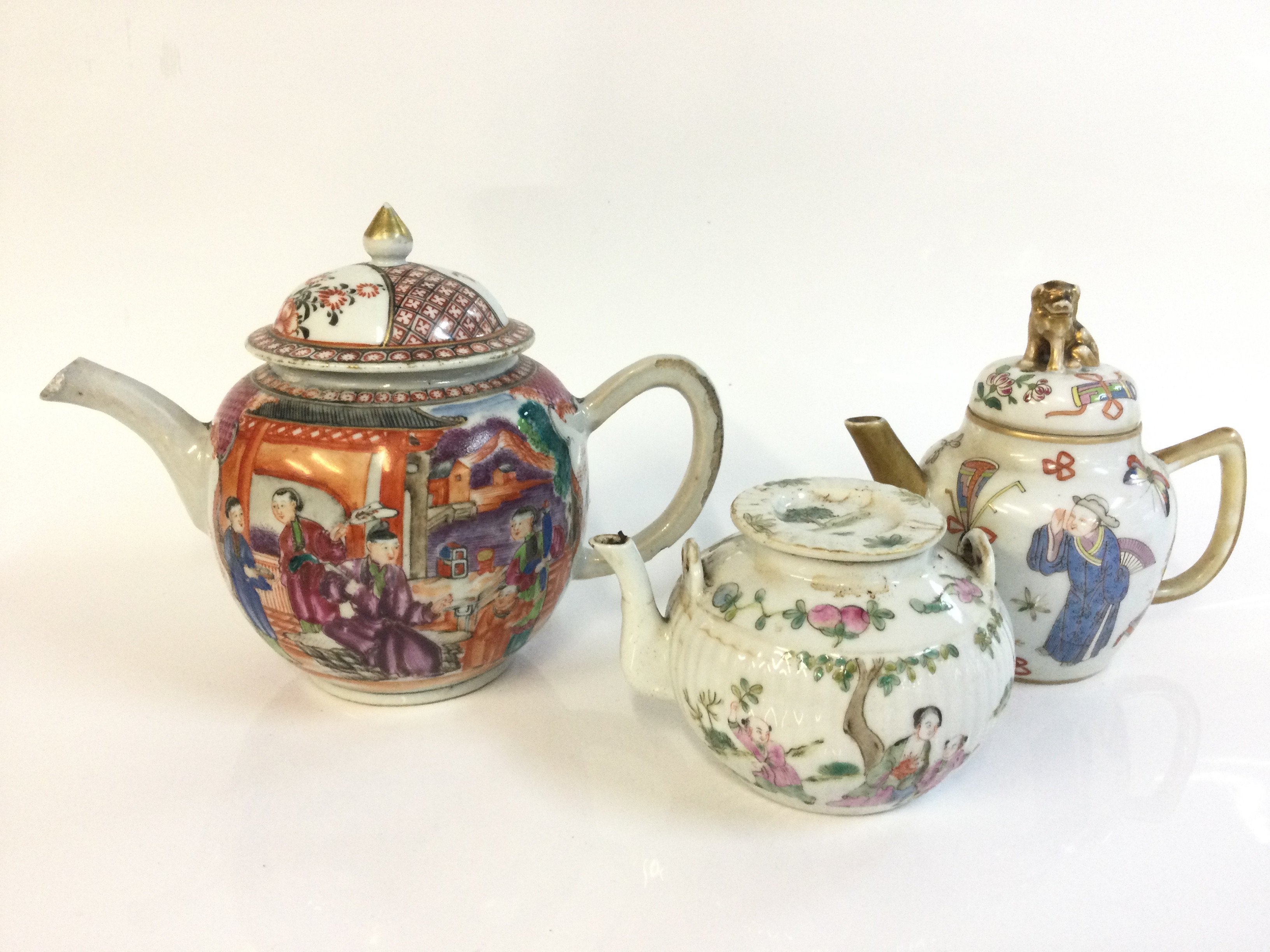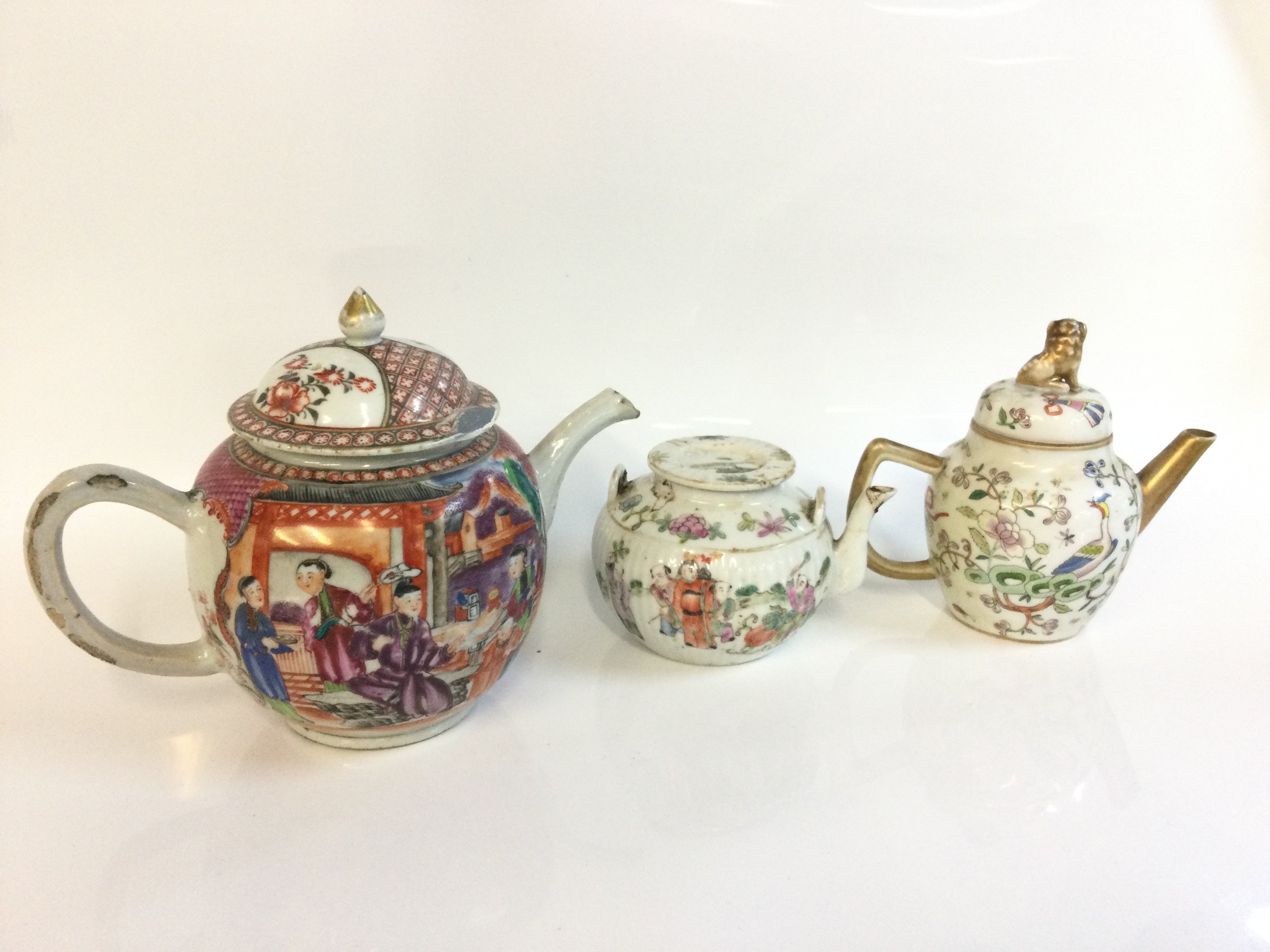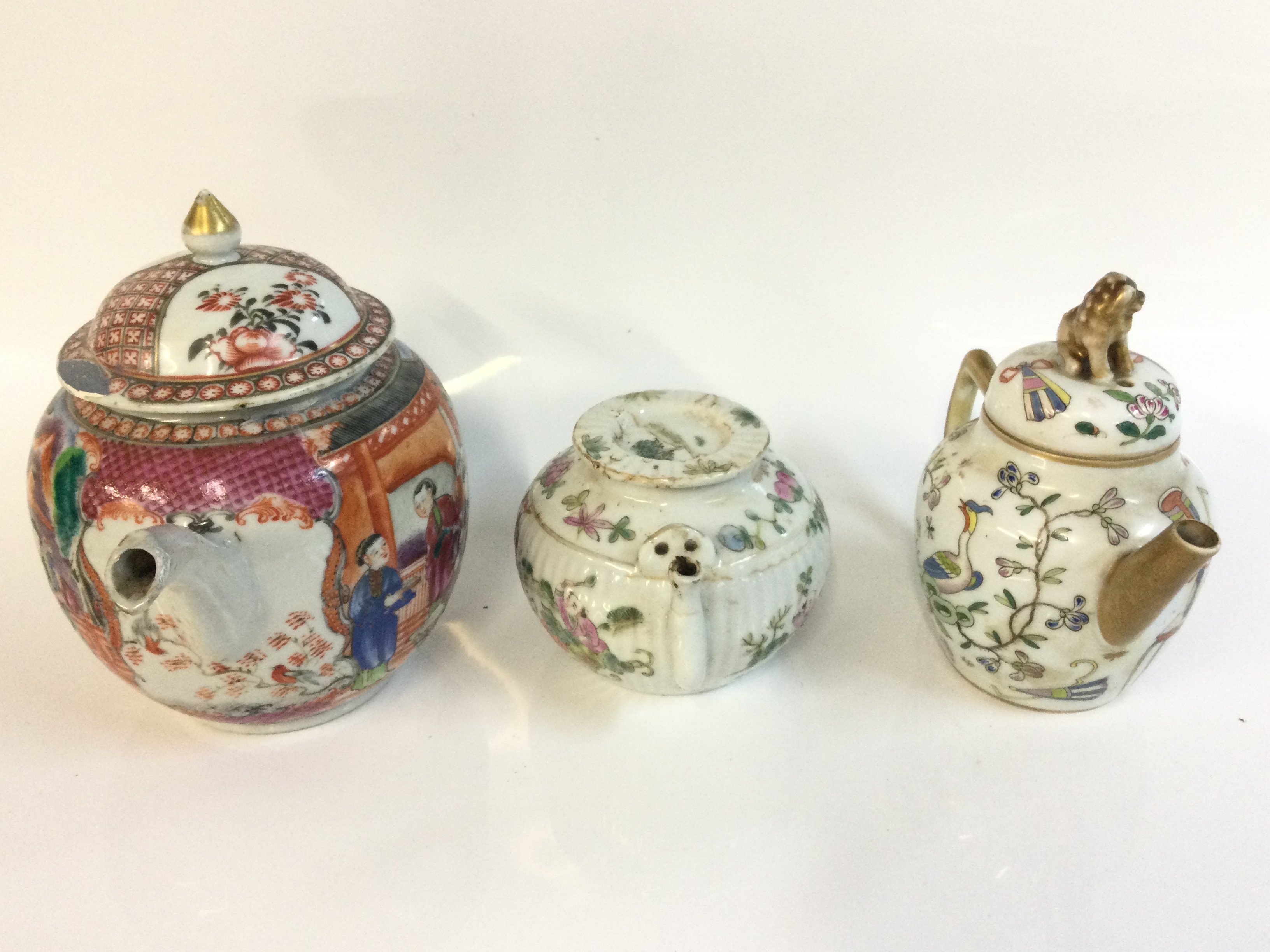 Chinese tea pots including Famille Rose from 9cm to 16.5Cm tall. This lot cannot be posted