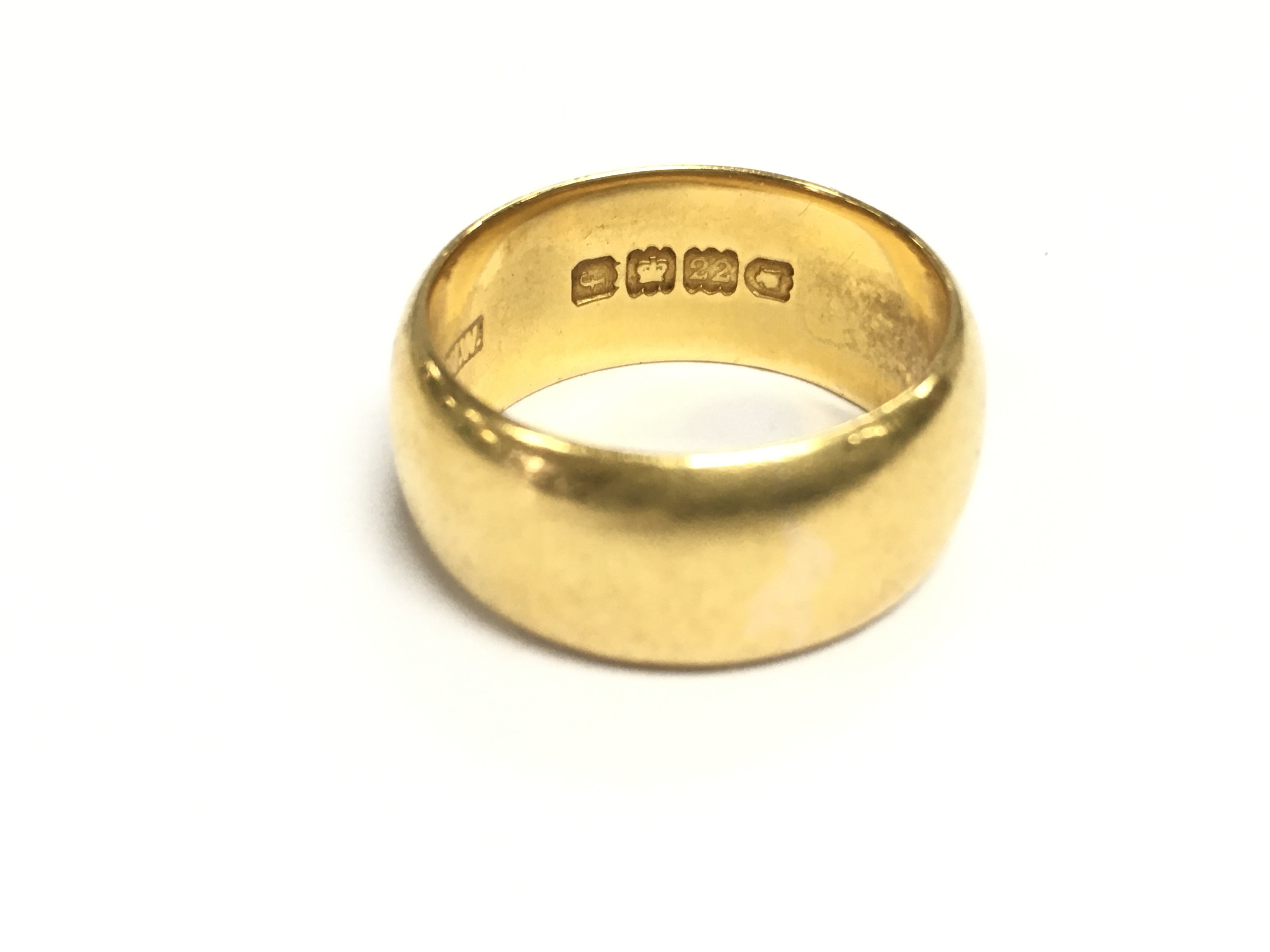 A 22ct gold wedding band. Size M 1/2 and 11.70g approximately.