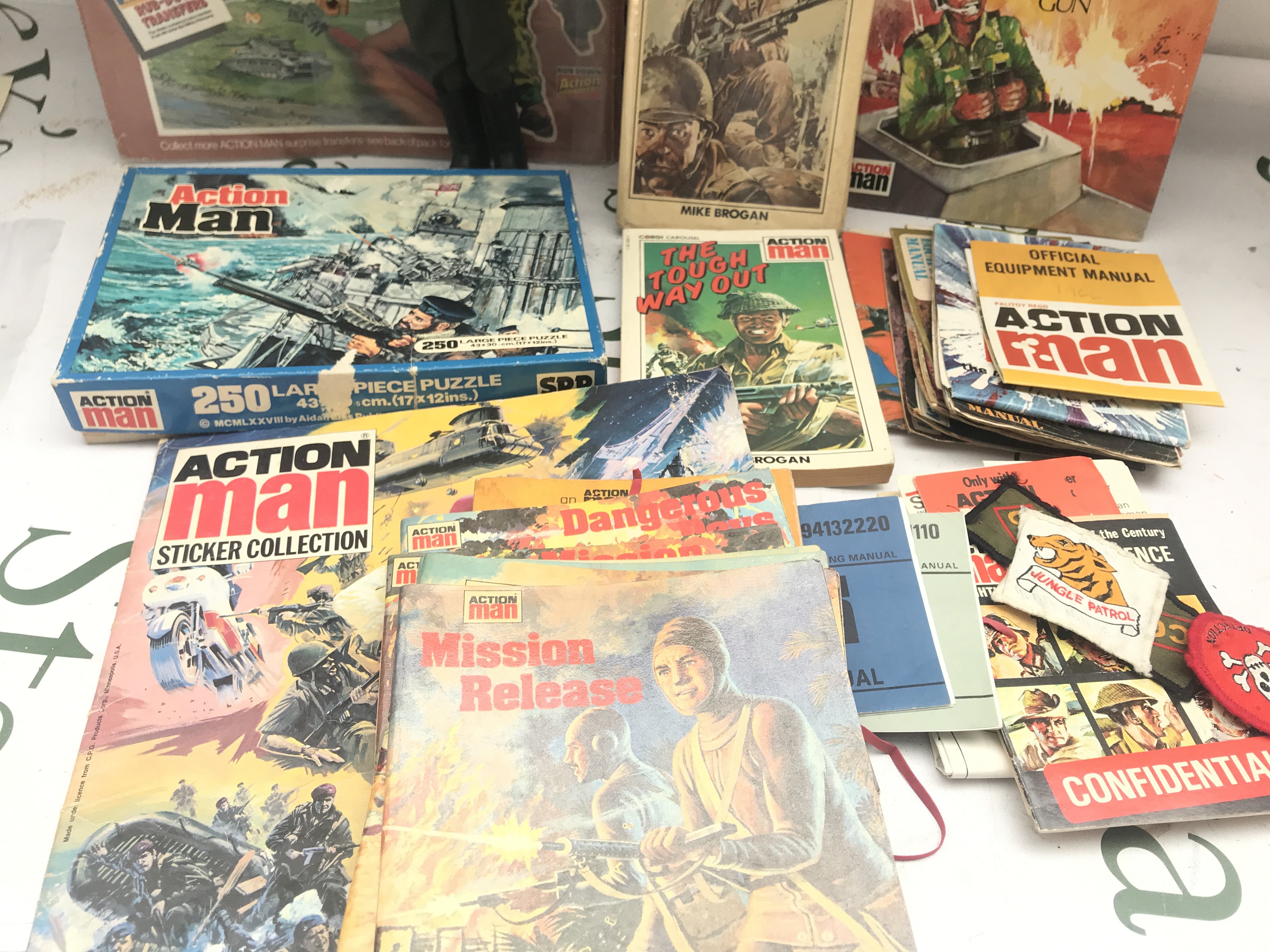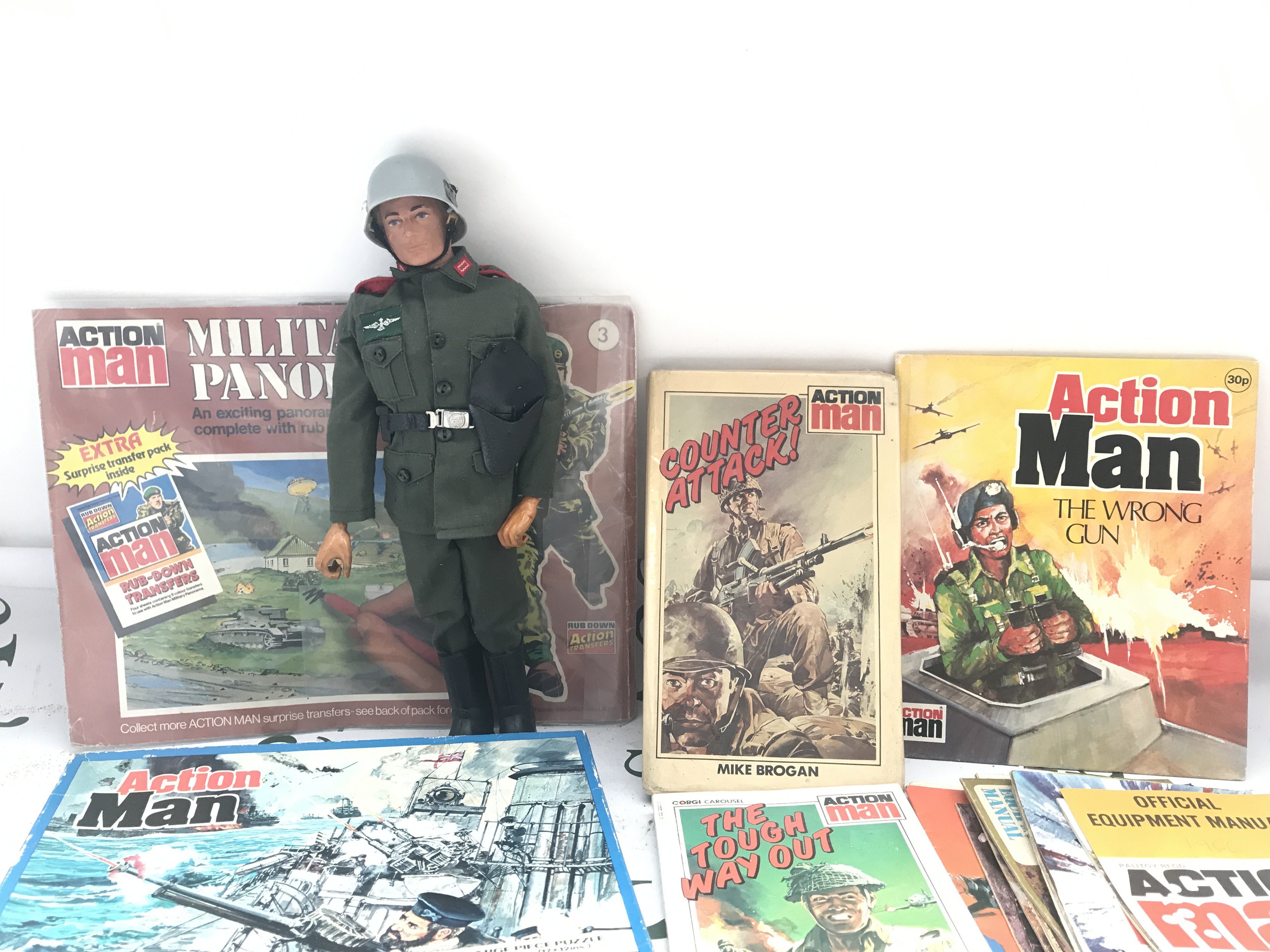 A Vintage Palitoy Action Man With Books. Comics And A Collection Of Accessories. No Reserve.