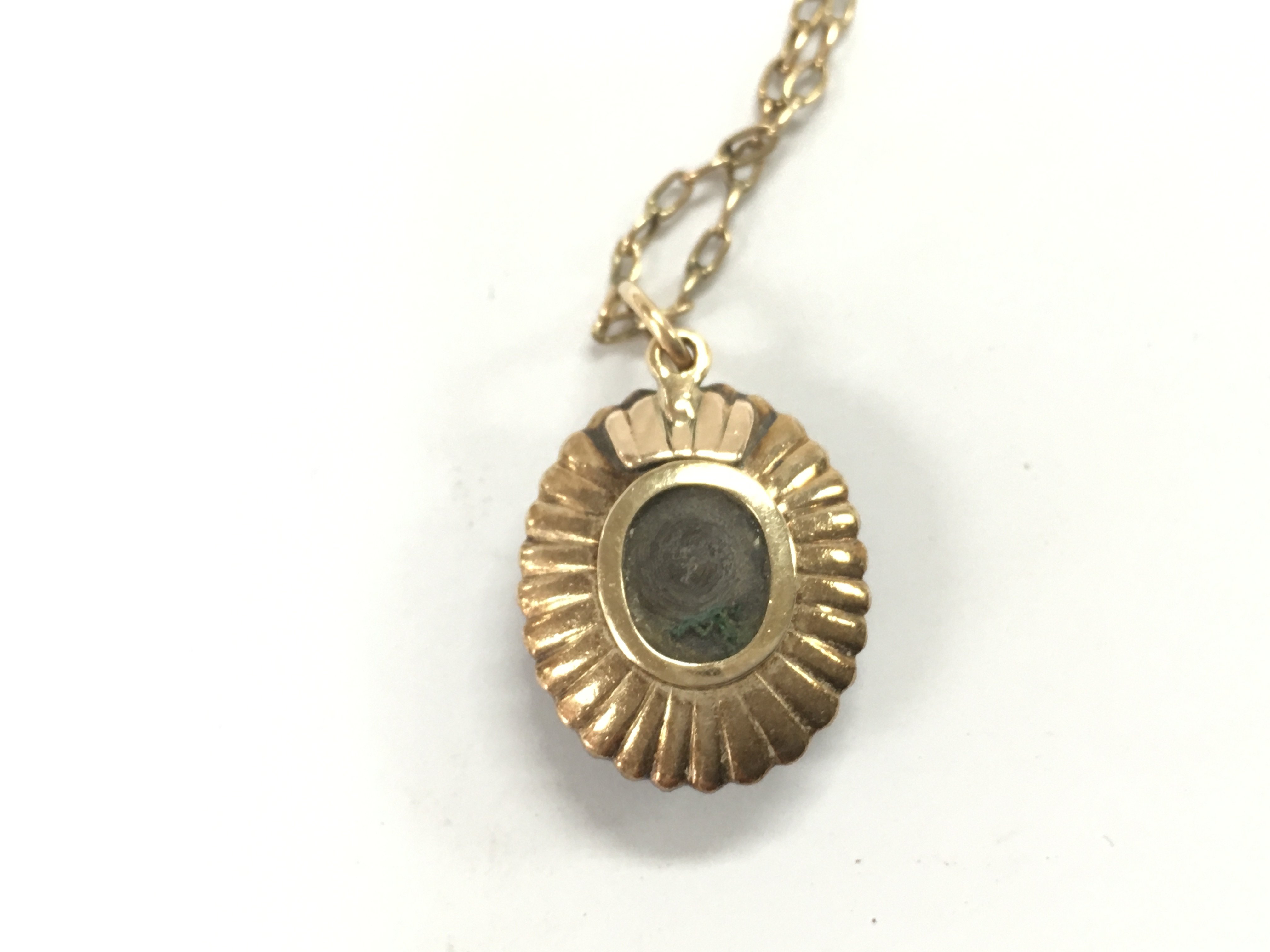 A 9ct gold necklace with pendant. 5.57g chain broken.