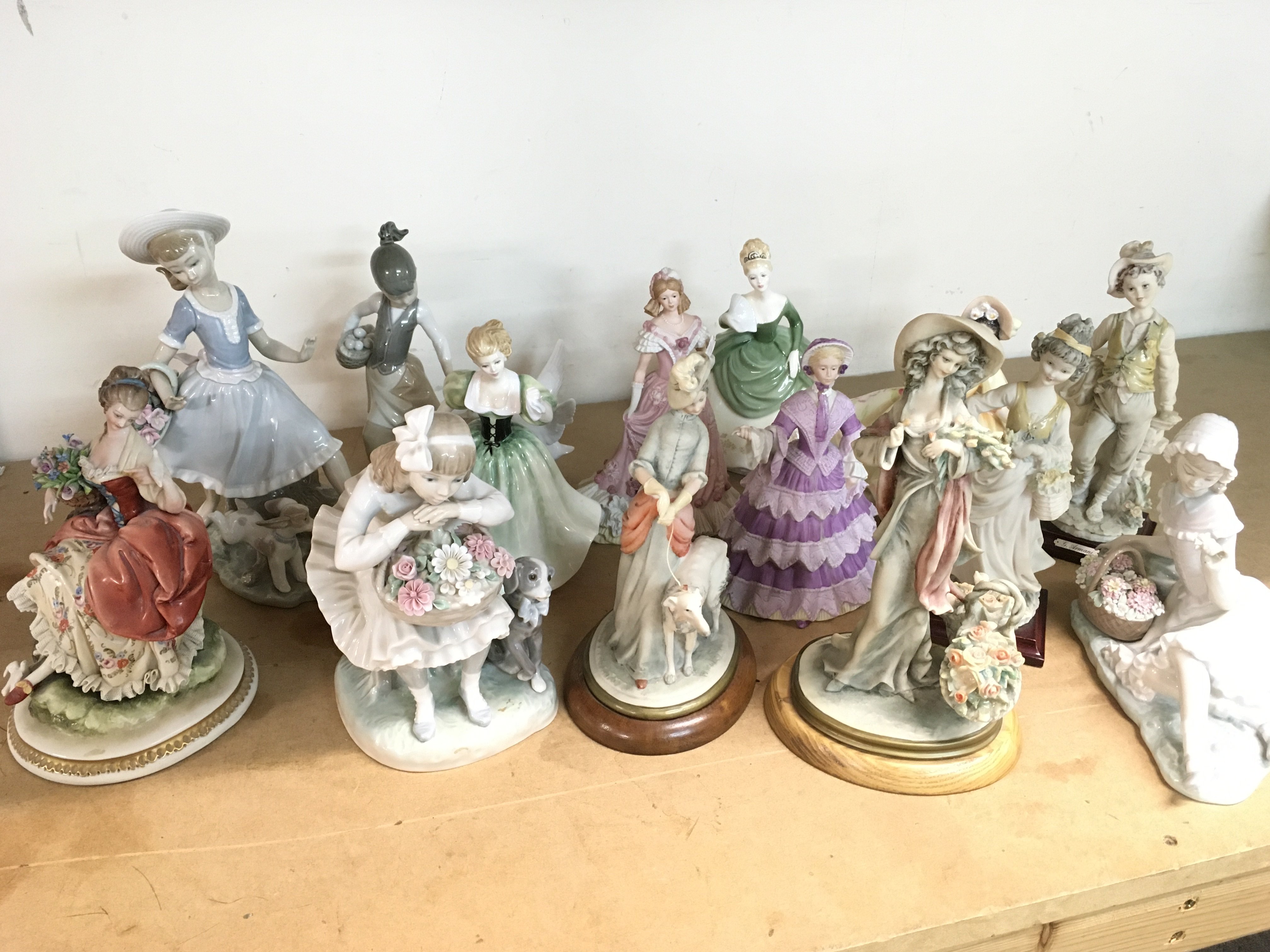 A collection of Doulton, Lladro and Capodimonte figures some with minor damage . This lot cannot be posted