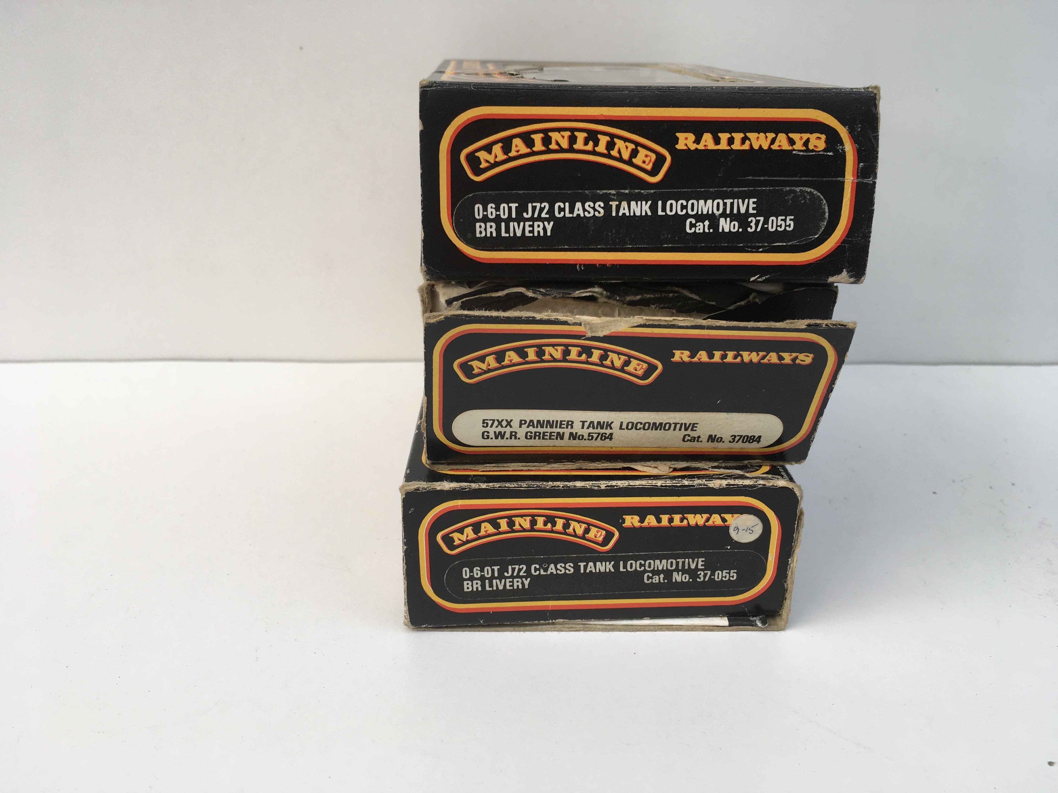 3x boxed 00 gauge model railway locomotives including 2x J72 class and a 57XX pannier tank . No reserve
