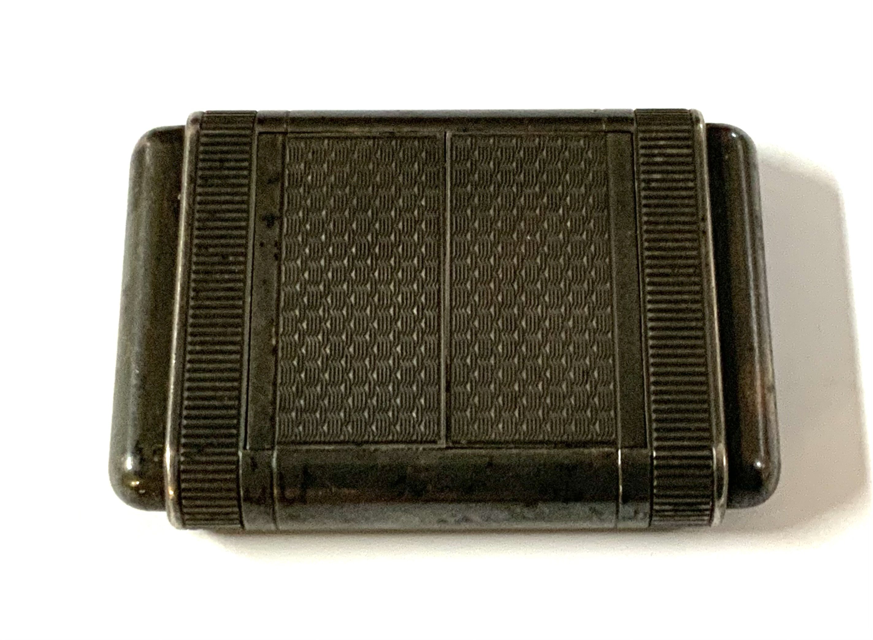 Tavannes silver engine turned purse watch, import hallmarks, with end pushers opening spring loaded doors revealing the square silvered dial.