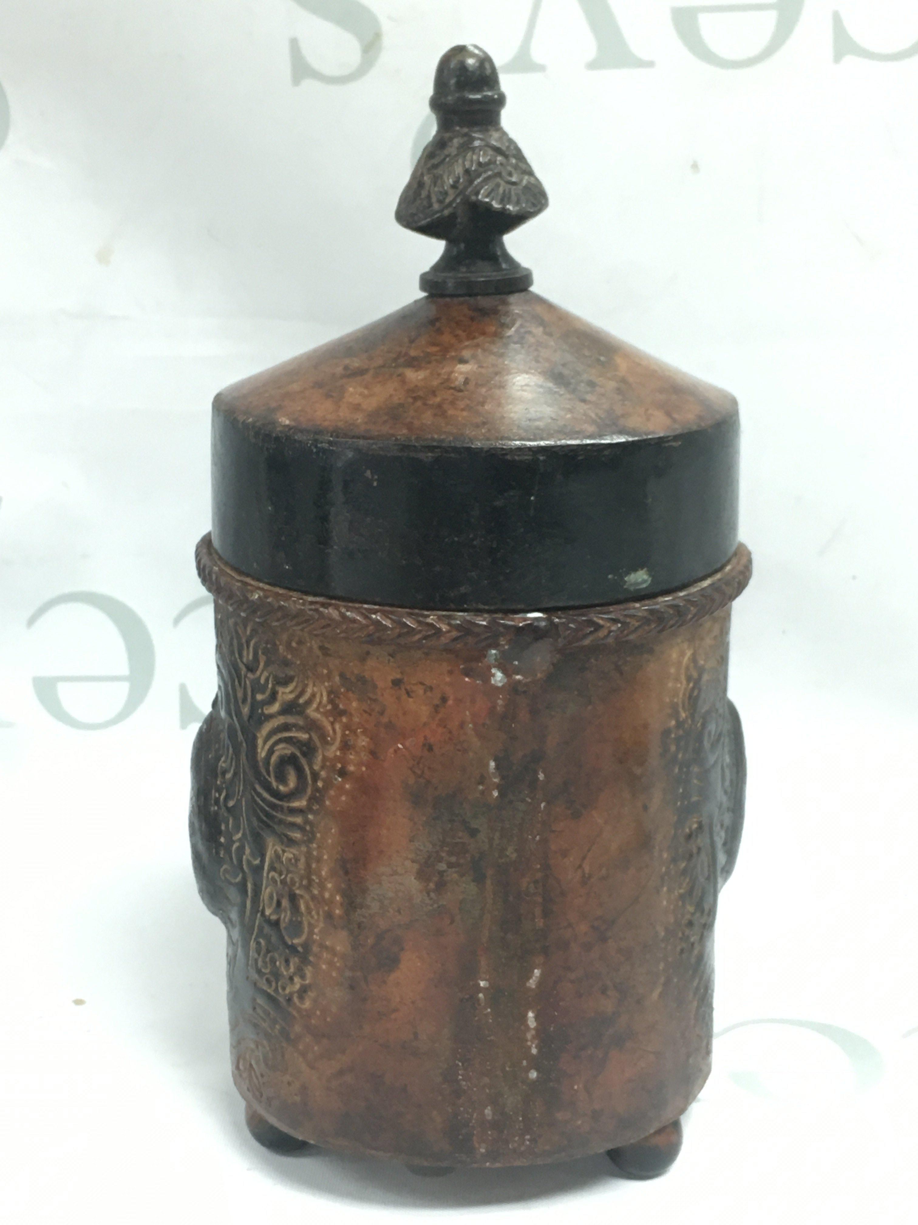 An unusual Victorian metal cylinder box with lid, possibly for cigars . Postage cat B