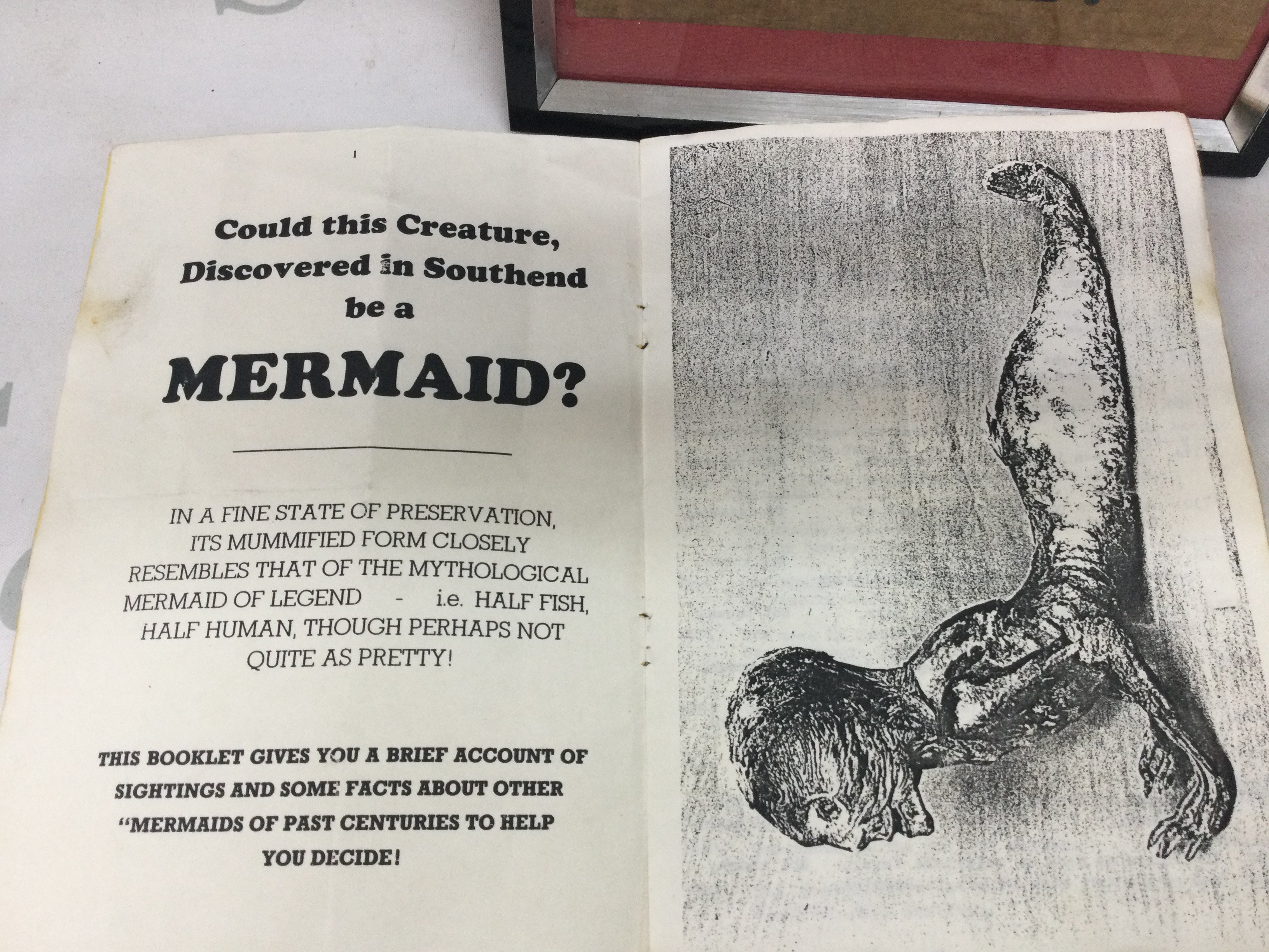 An Unsual framed photo of possible Southend mermaid and booklet on details