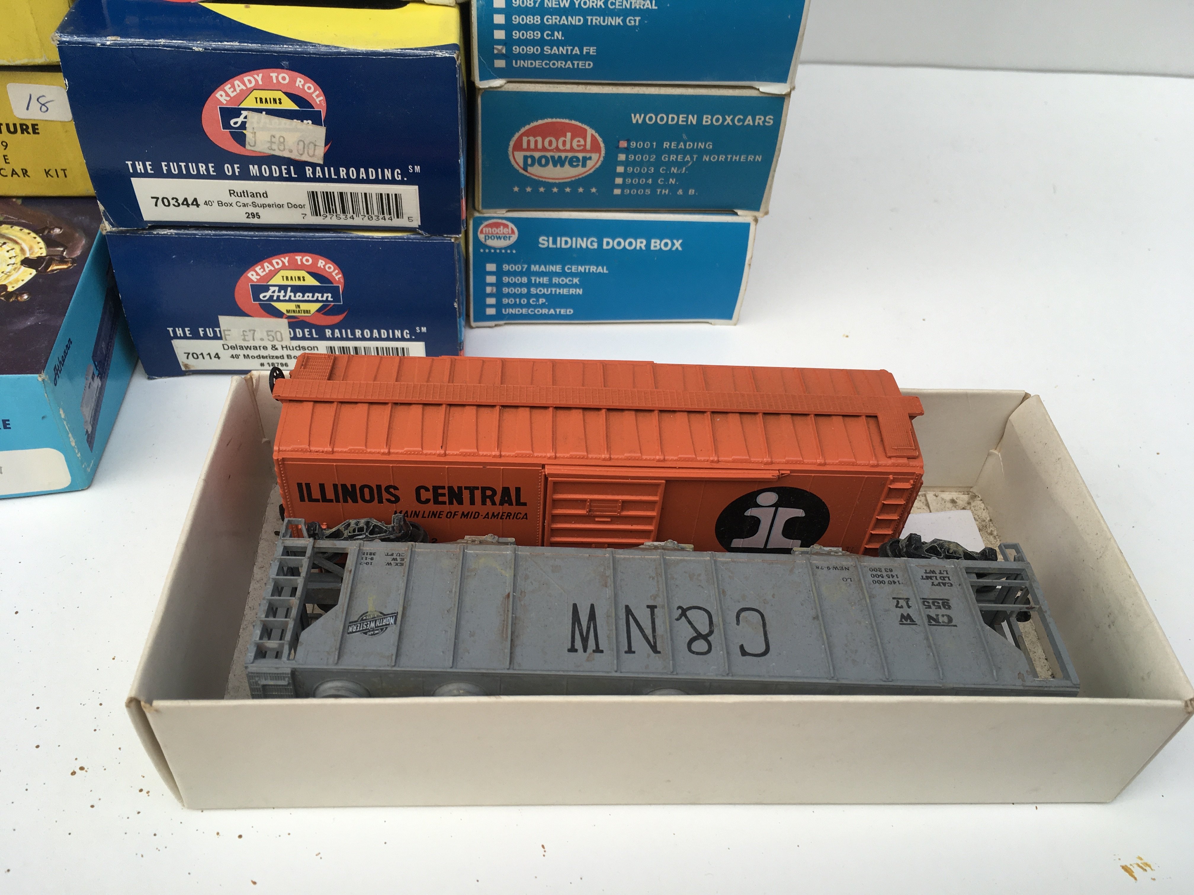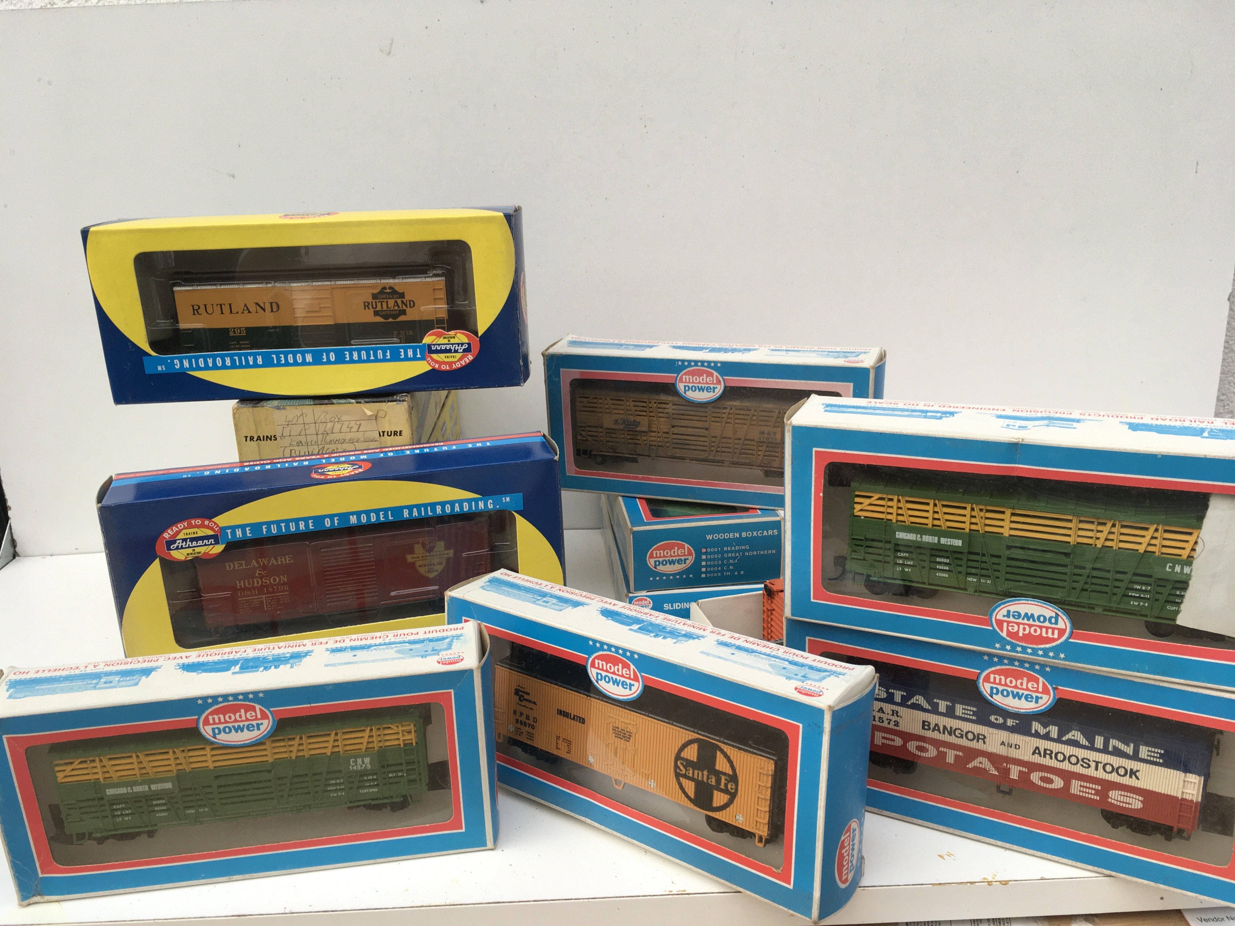 A collection of 13 boxed HO gauge model railway rolling stock by Athearn and Model Power. Also 2 loose wagons. No reserve.