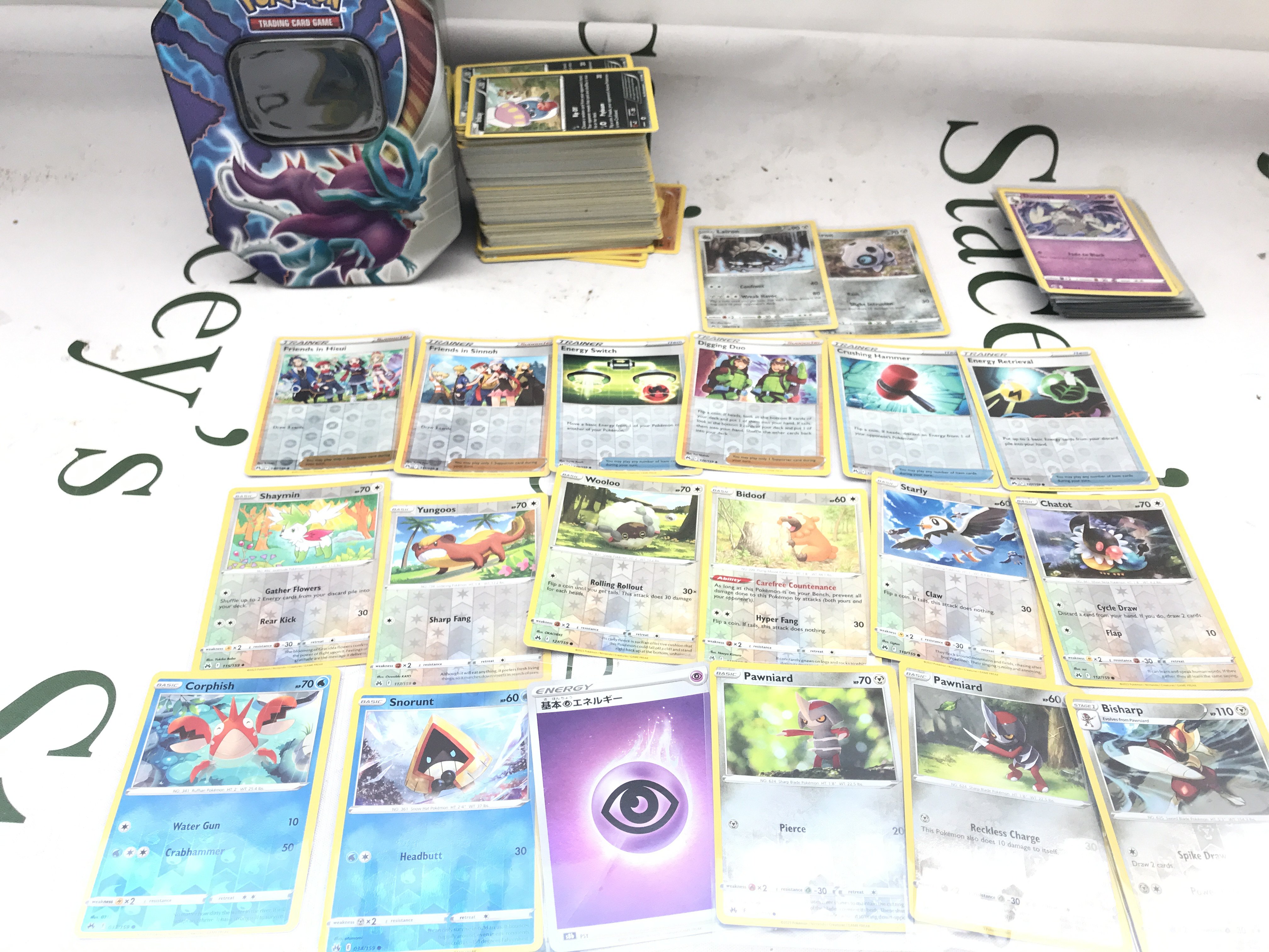 250 Pokemon Cards Including Vintage And Holographic. With Tin.
