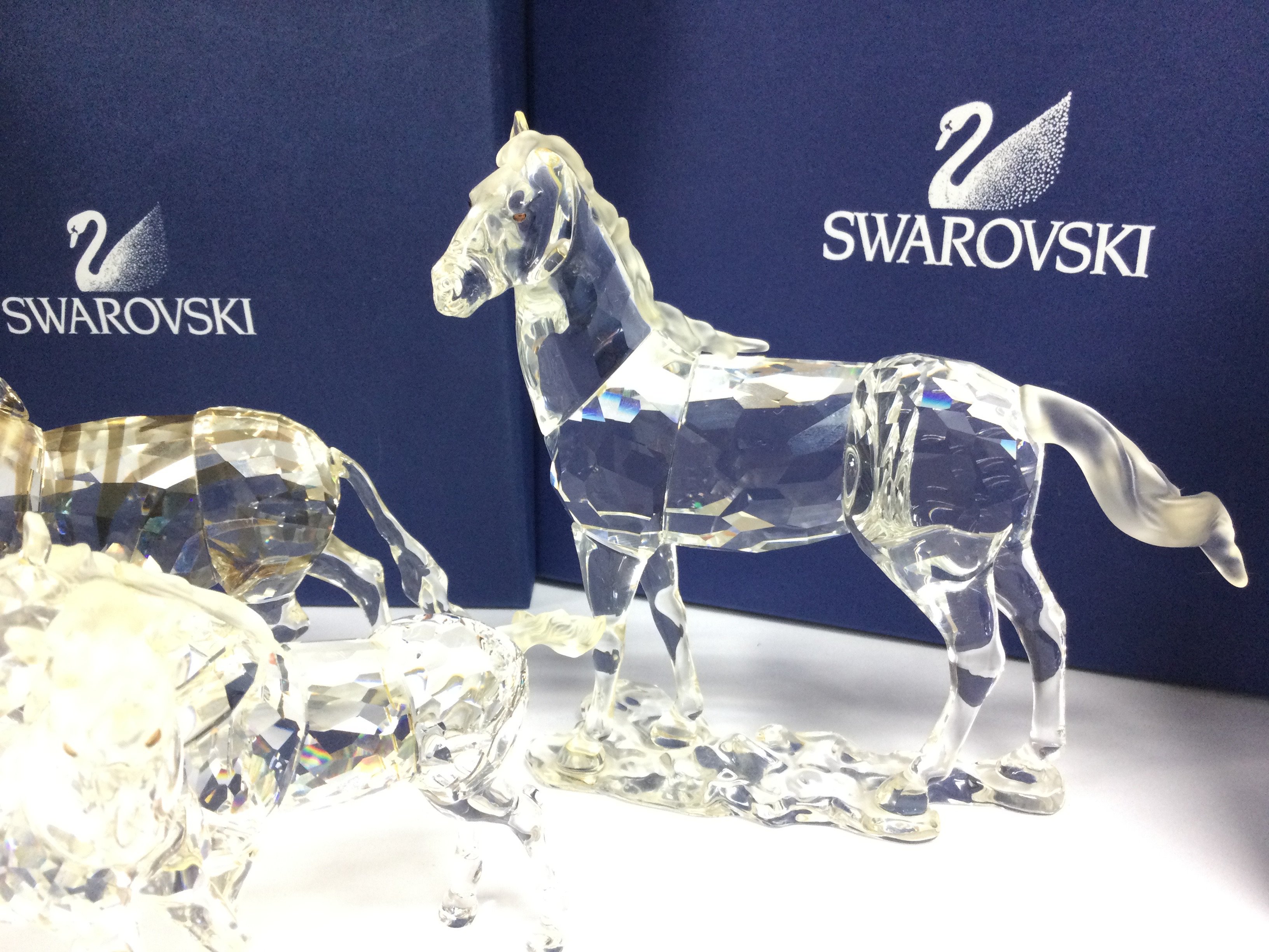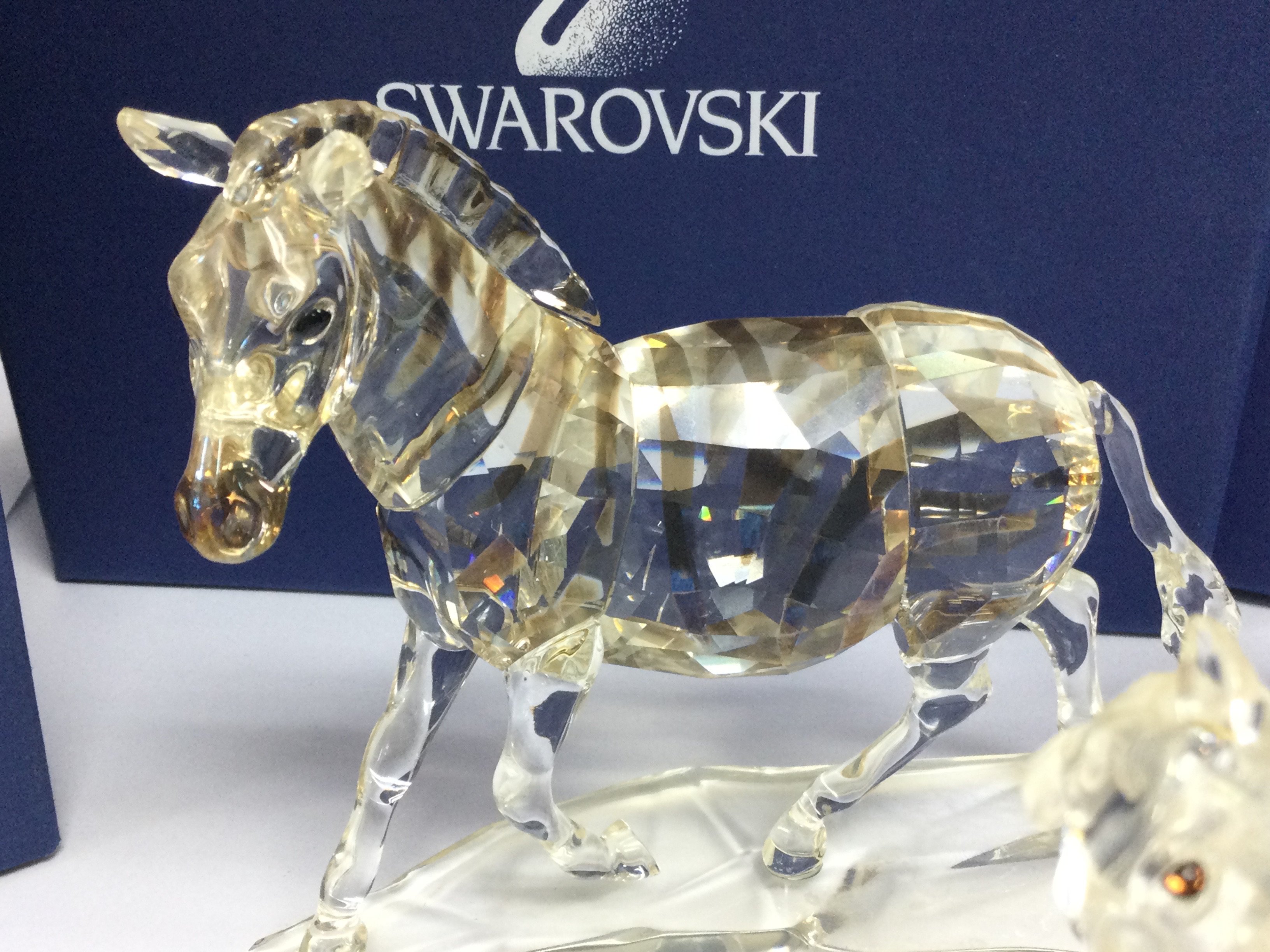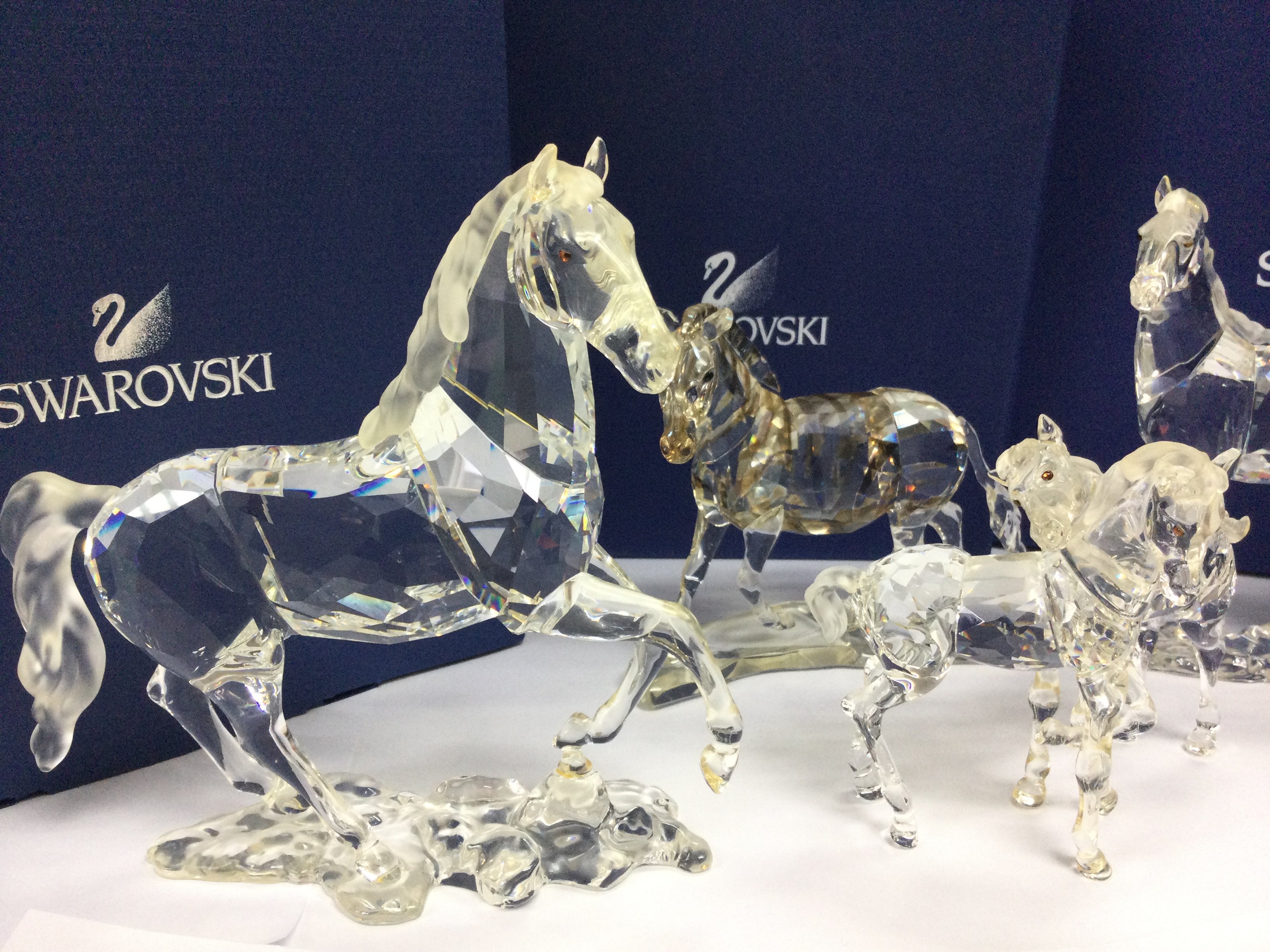 Boxed Swarovski crystal glass figures including a Pair of Foals, Zebra, Stallion and Mare. This lot cannot be posted