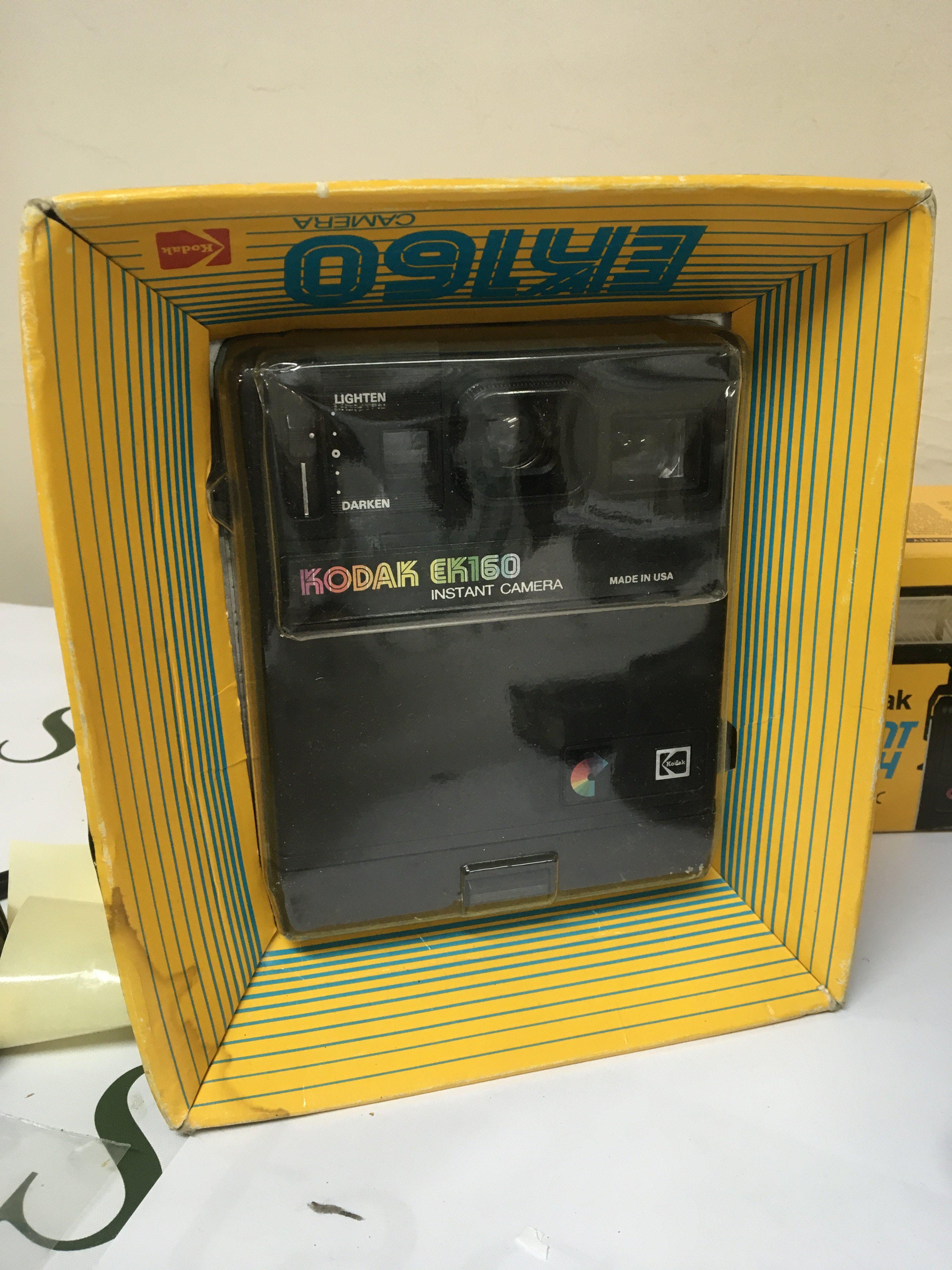 A collection of Vintage cameras boxed and as new Kodak Instamatic 133 Kodak EK160 instant flash Model C a Cosmic 35 with box and other cameras.- NO RESERVE