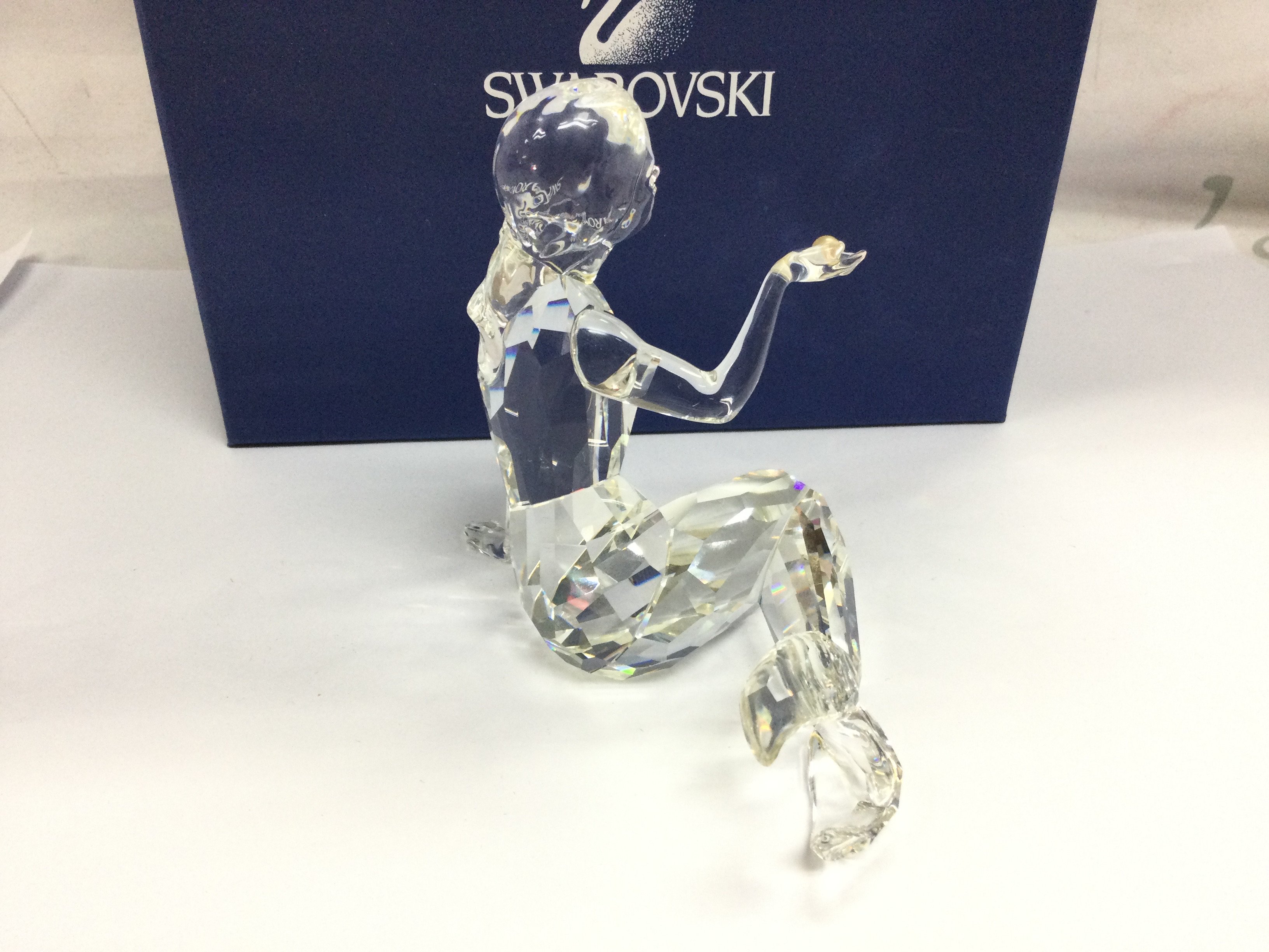 A boxed Swarovski Crystal glass Mermaid with pearl figure . This lot cannot be posted