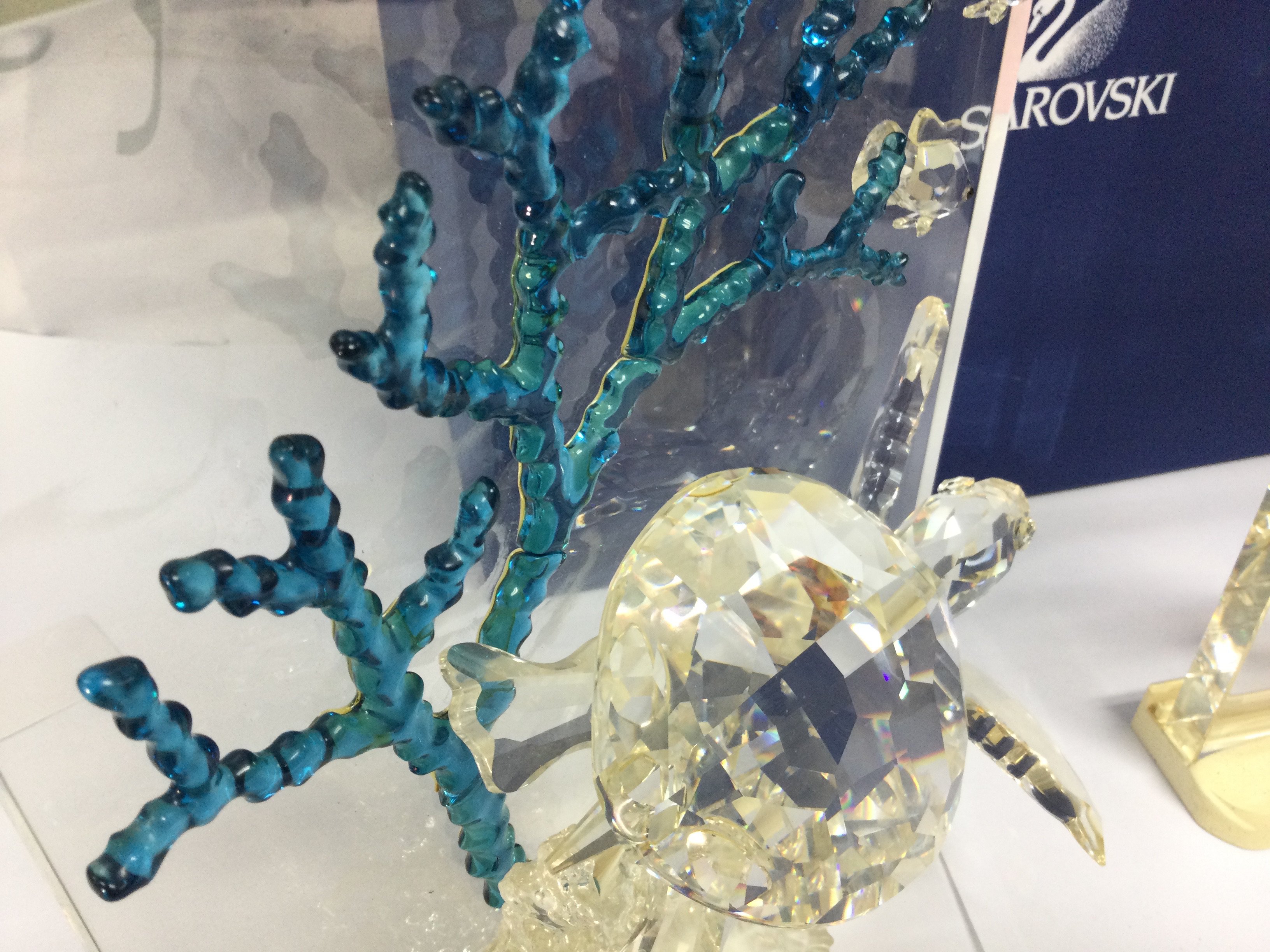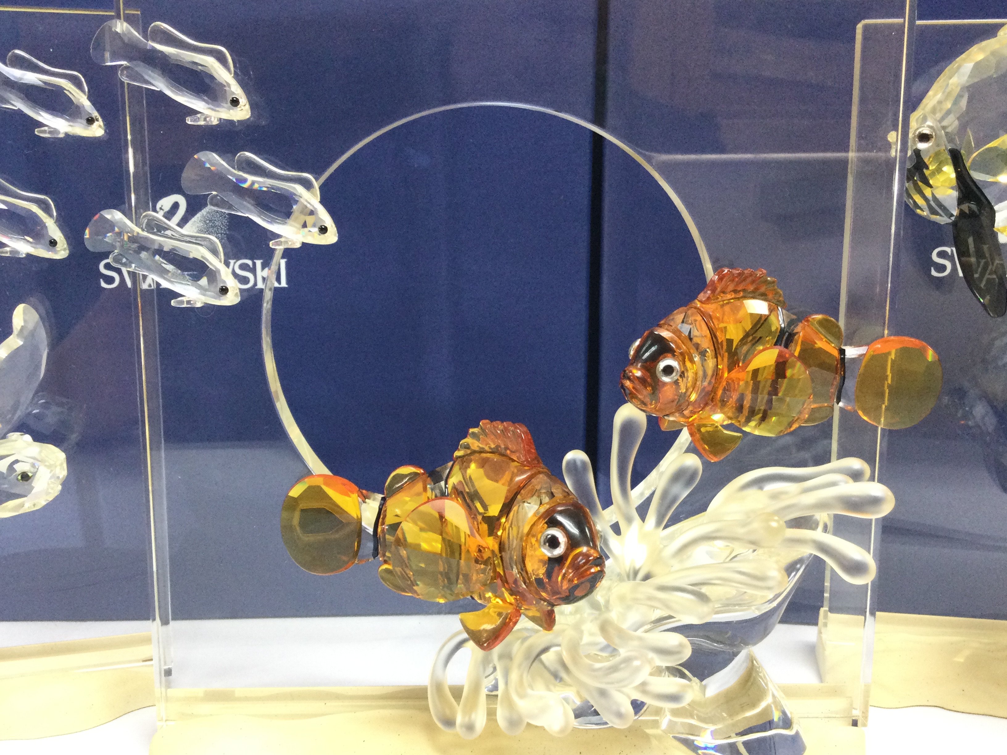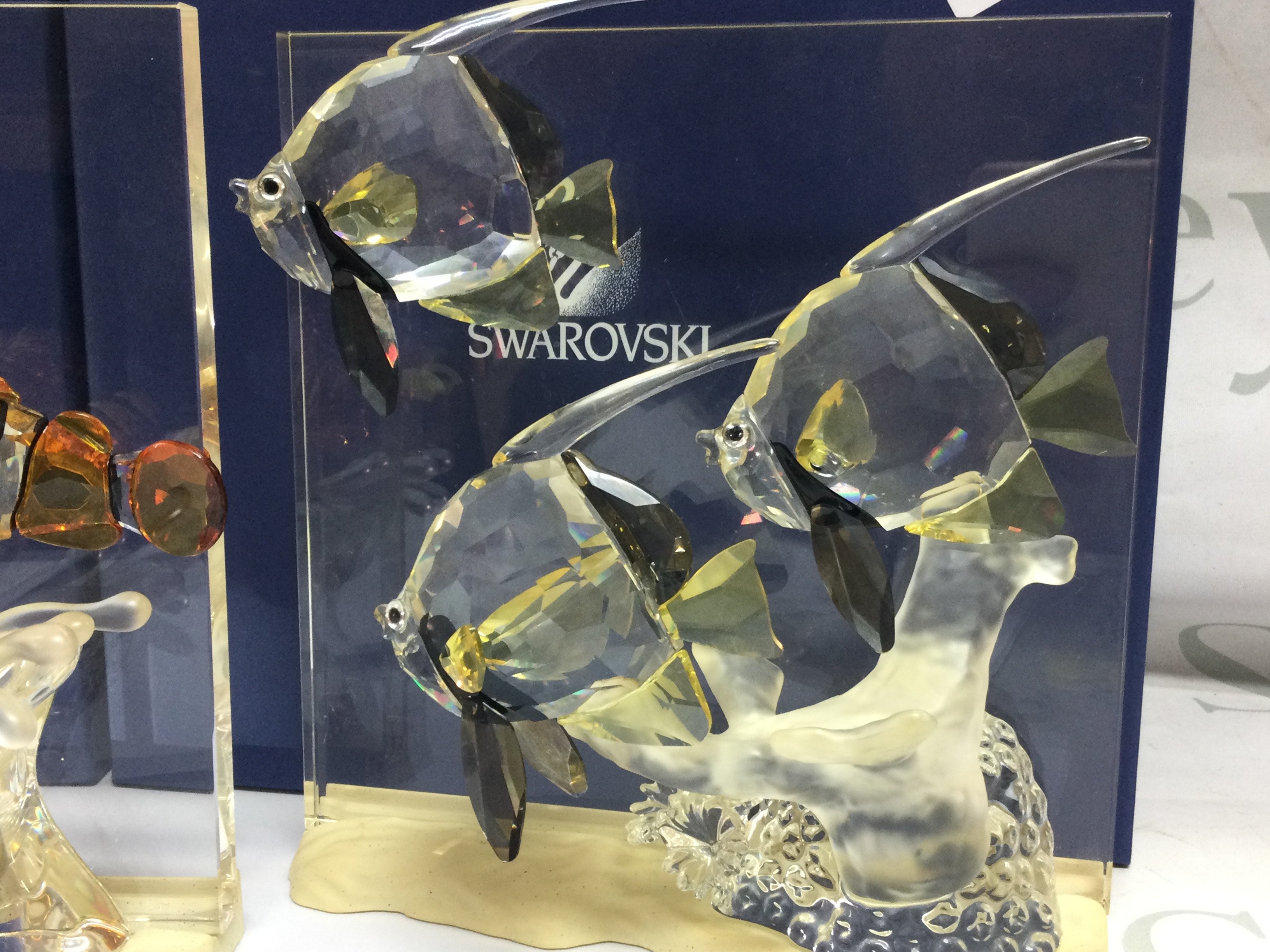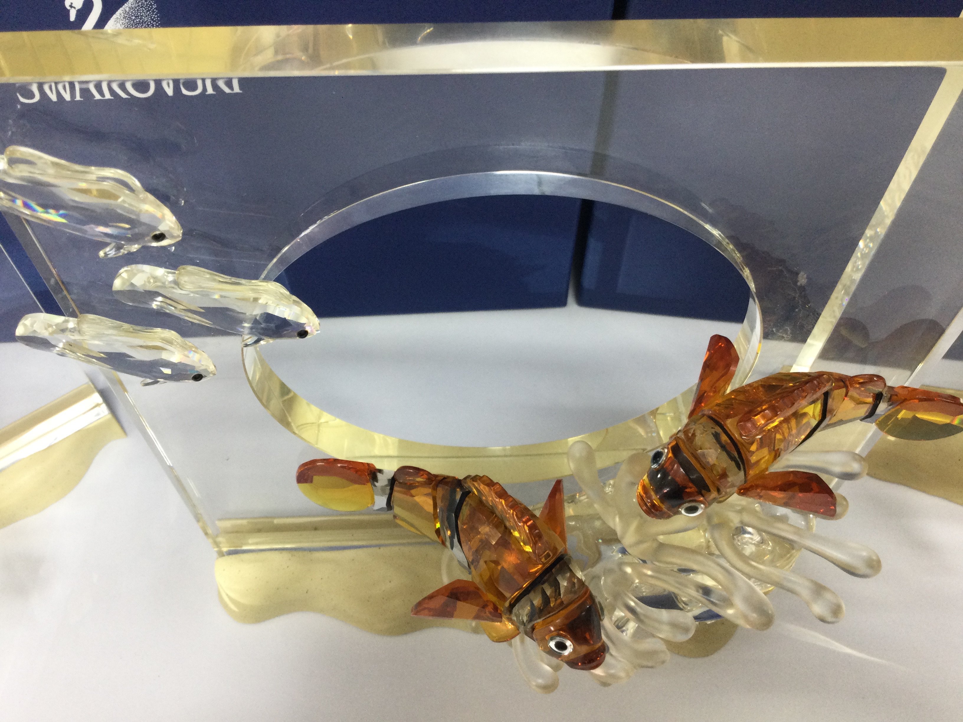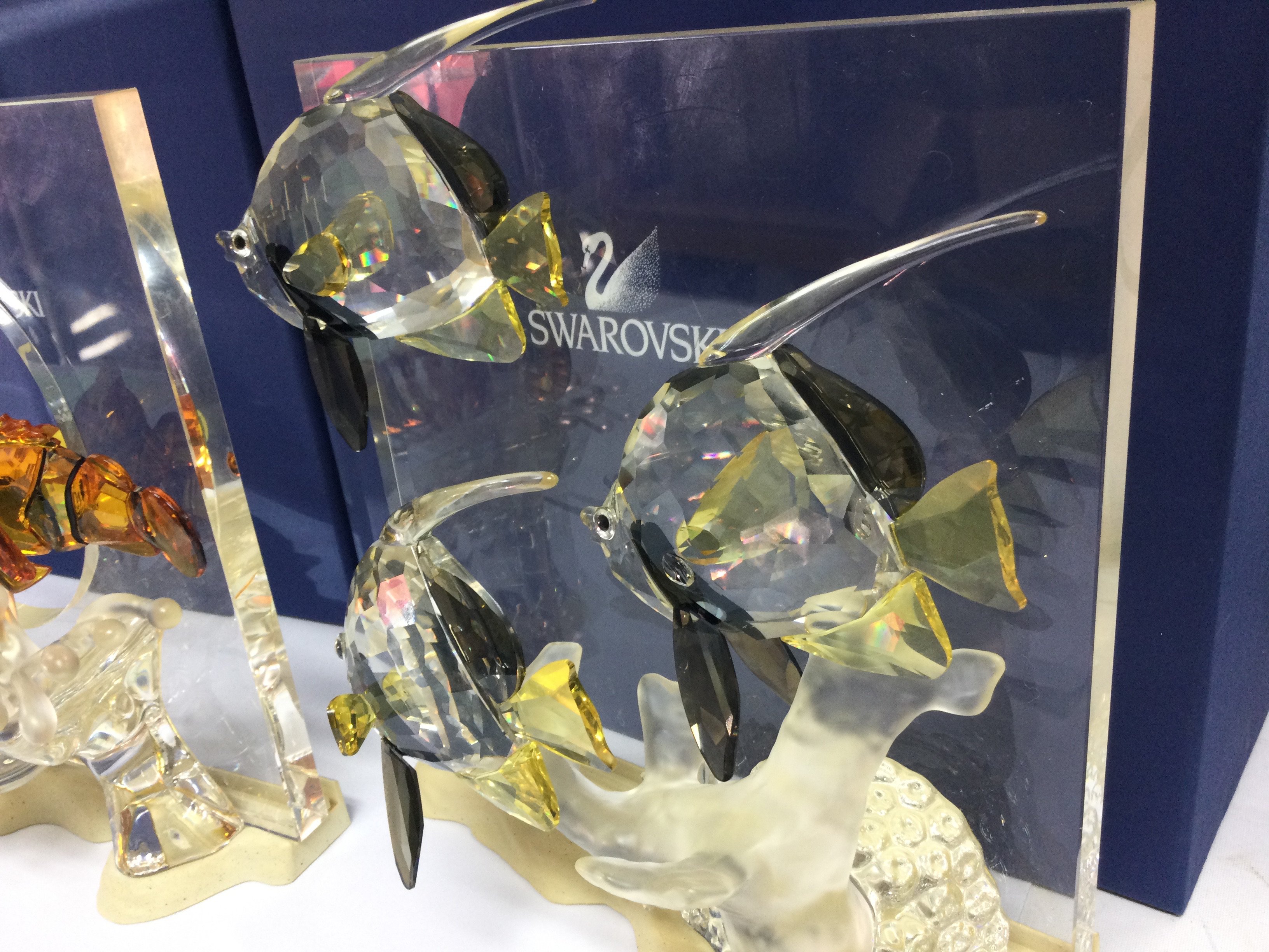 A collection of boxed Swarovski crystal glass Wonders of the Sea figures including turtles, clown fish, angel fish ( Fins need regluing) no back drops. This lot cannot be posted