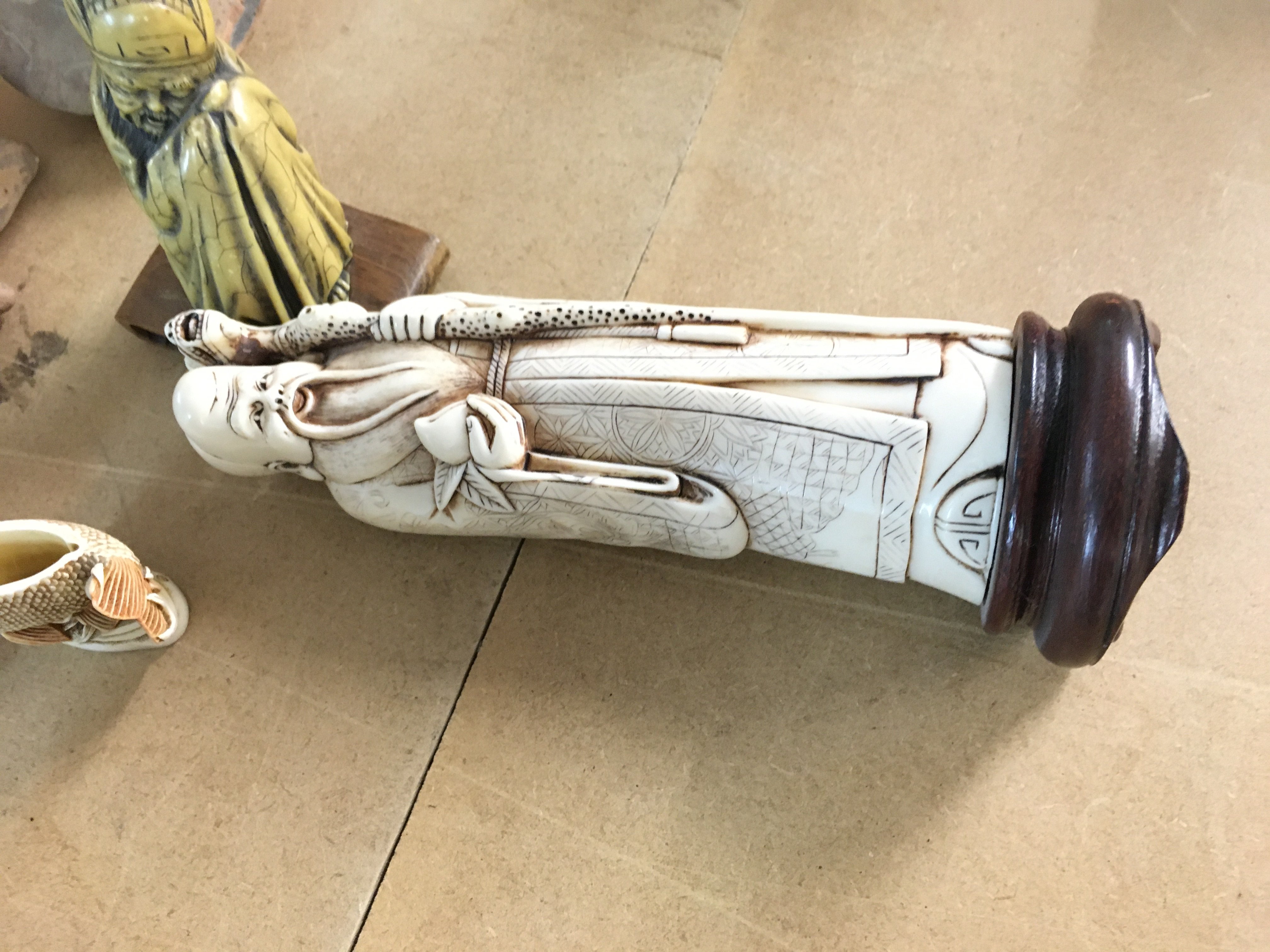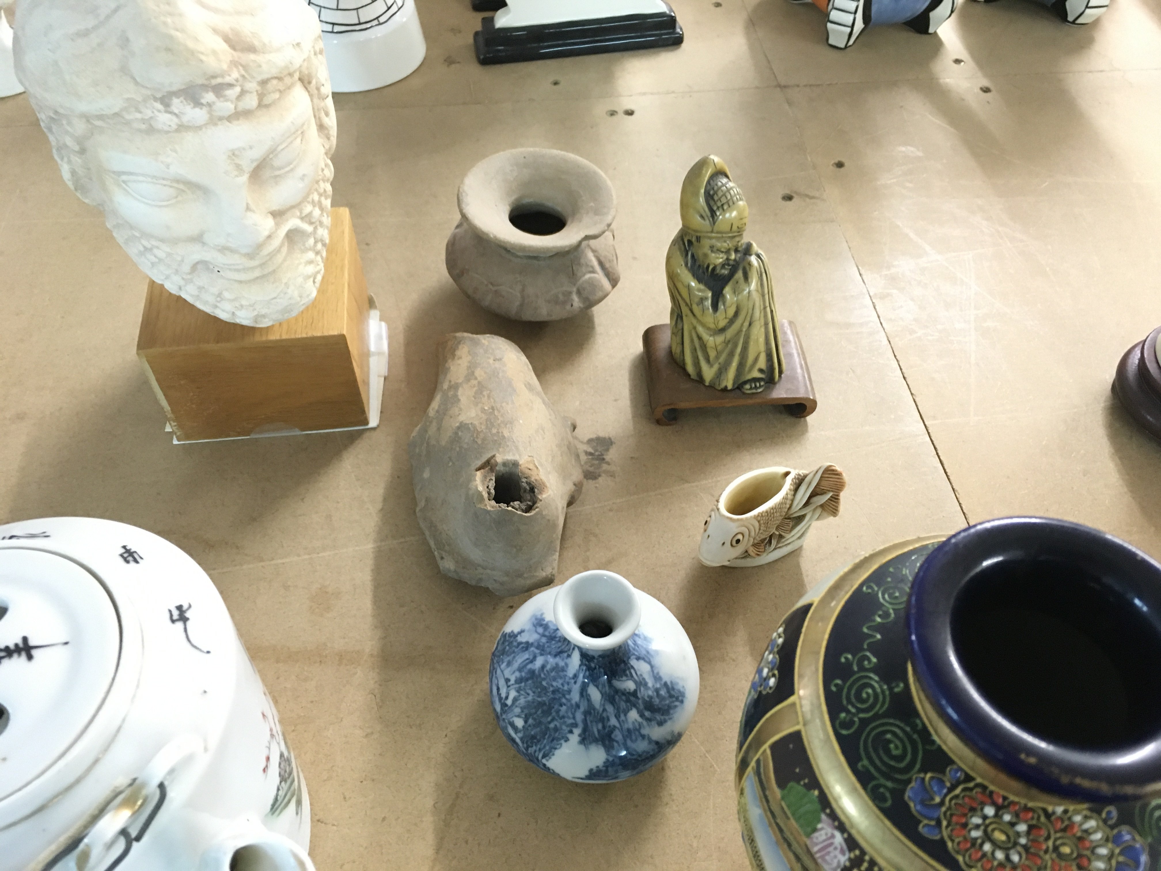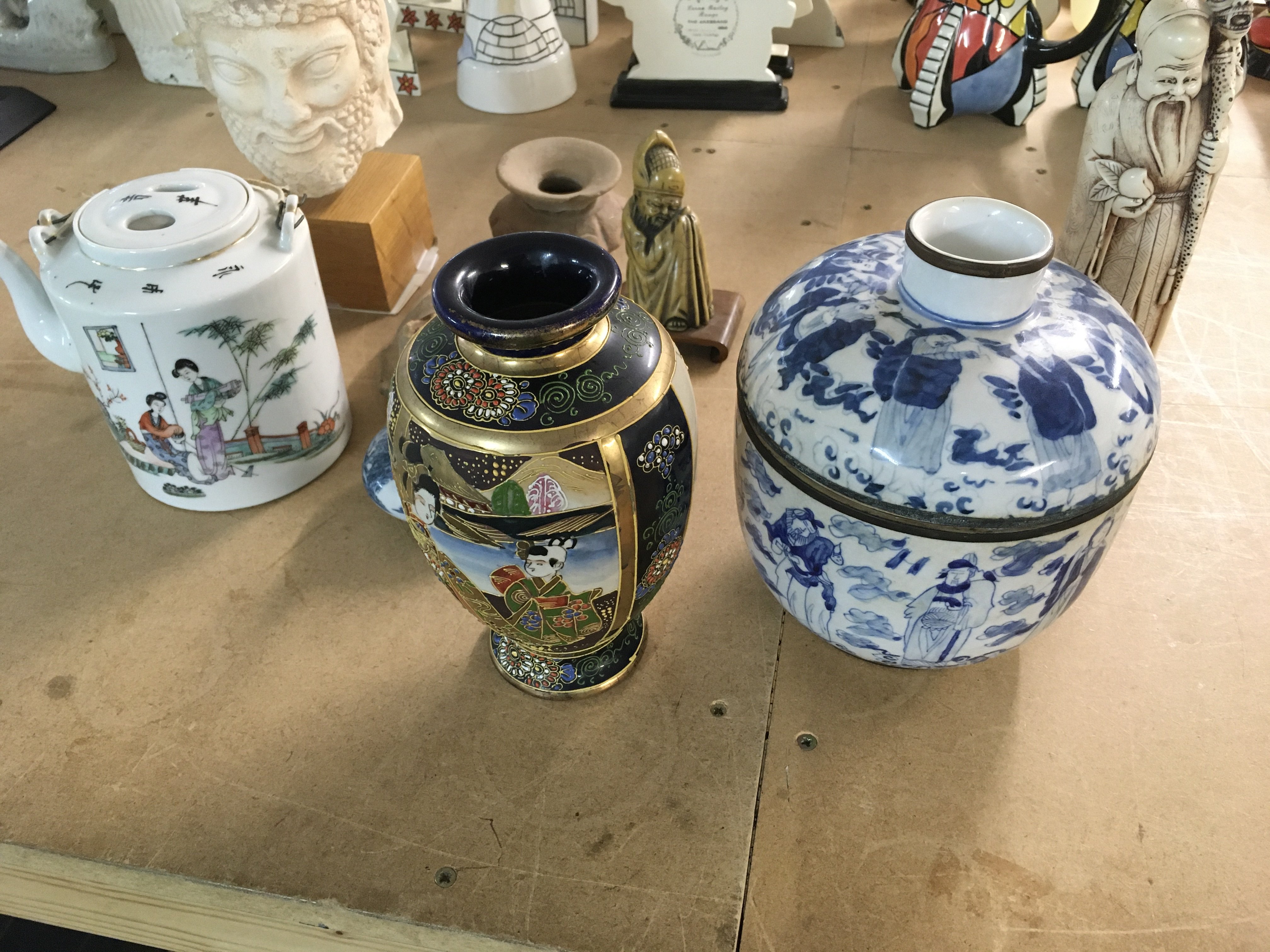 A Chinese blue and white porcelain bowl with lid along with other oriental items. Postage D. NO RESERVE