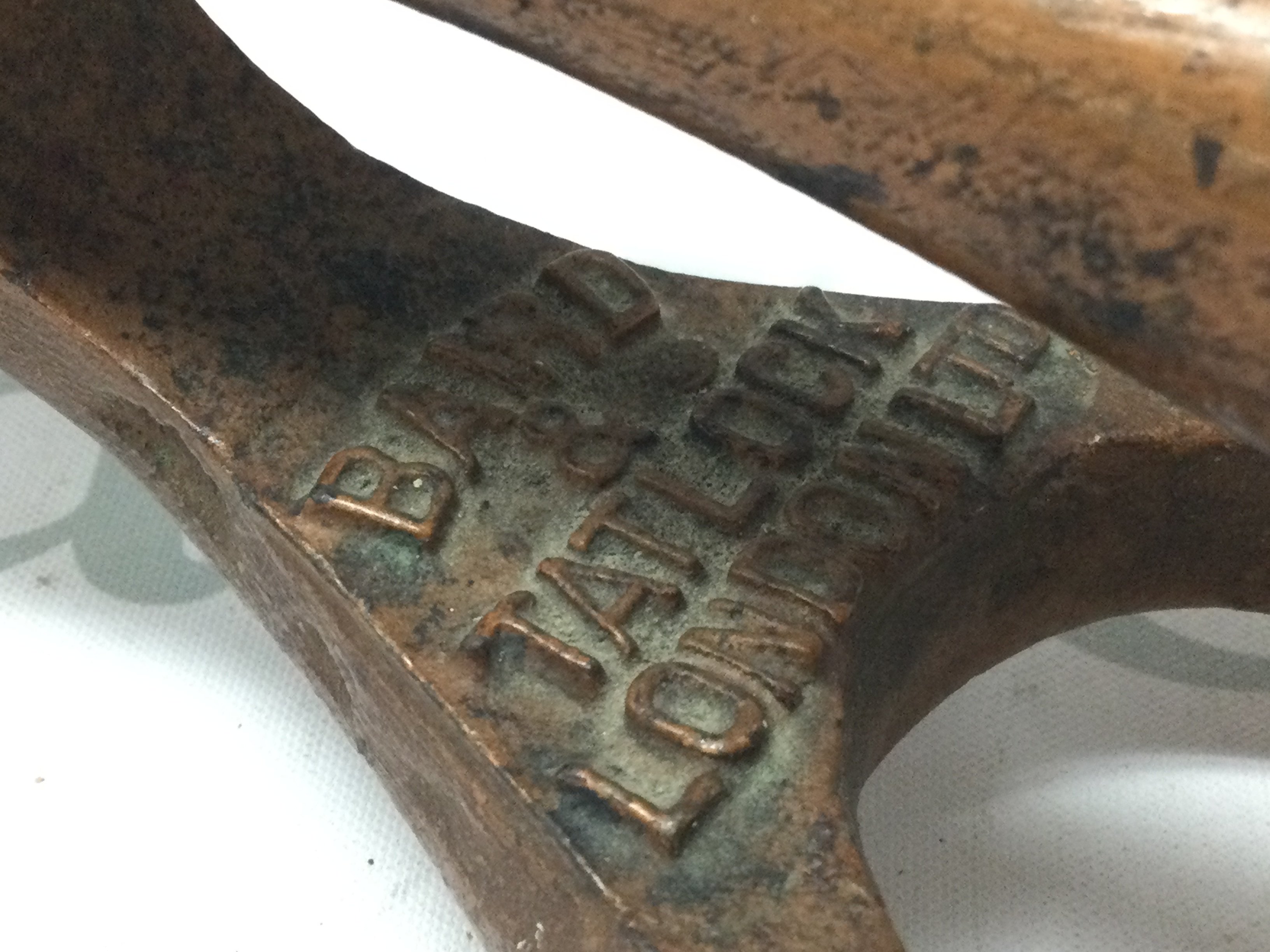 An unusual Victorian heavy metal nut cracker by Bard and Tatlock London, 24cm long. Postage category B. NO RESERVE