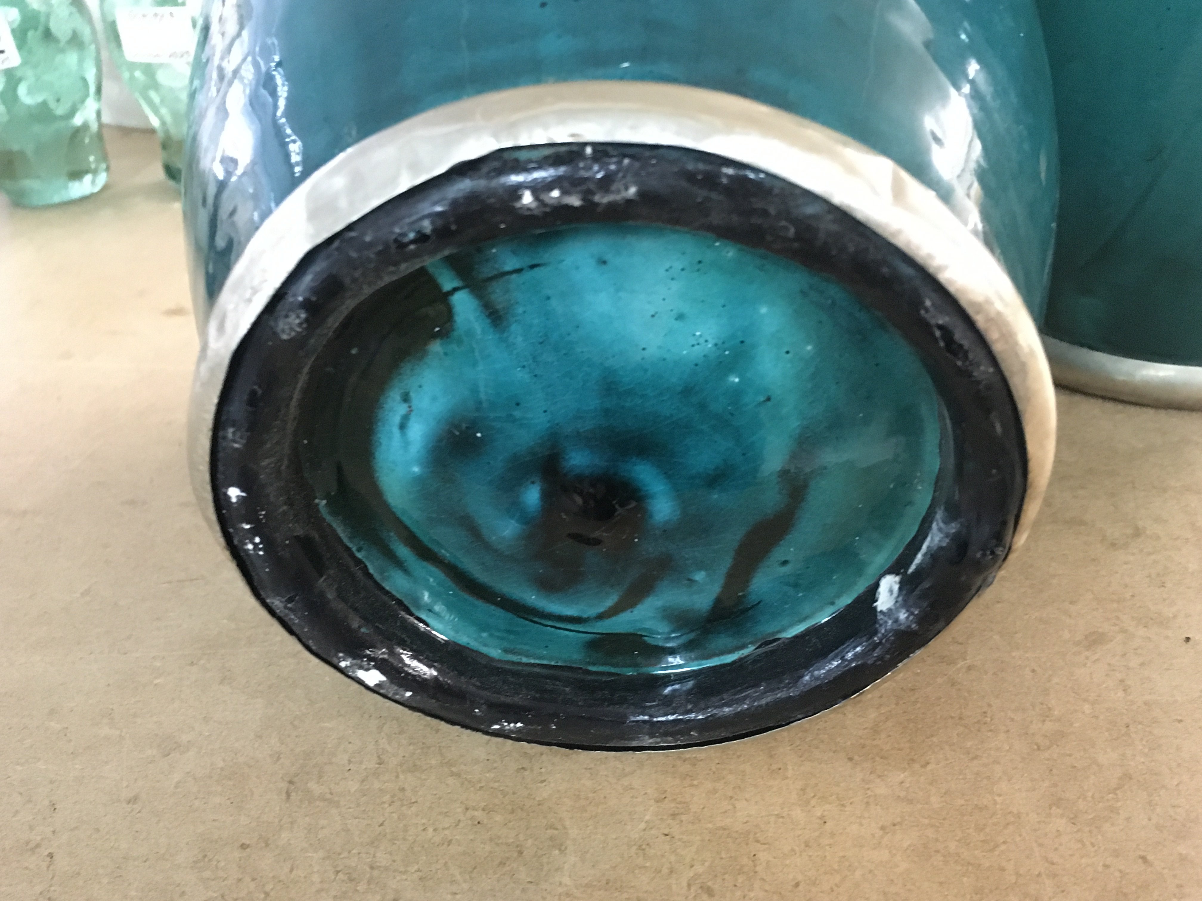 A pair of vases with metal collars. Approximately 13 inches tall. NO RESERVE