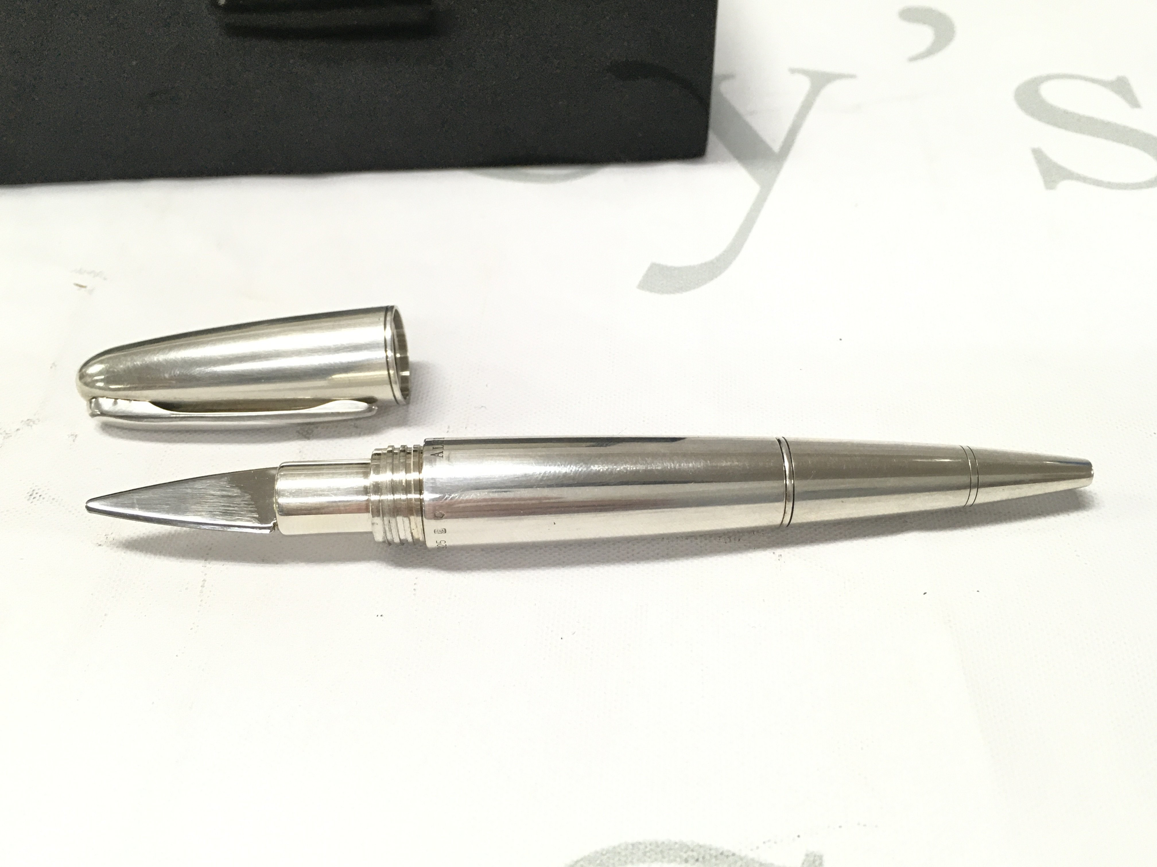 An Alfred Dunhill silver torpedo dual pen and cigar puncher.