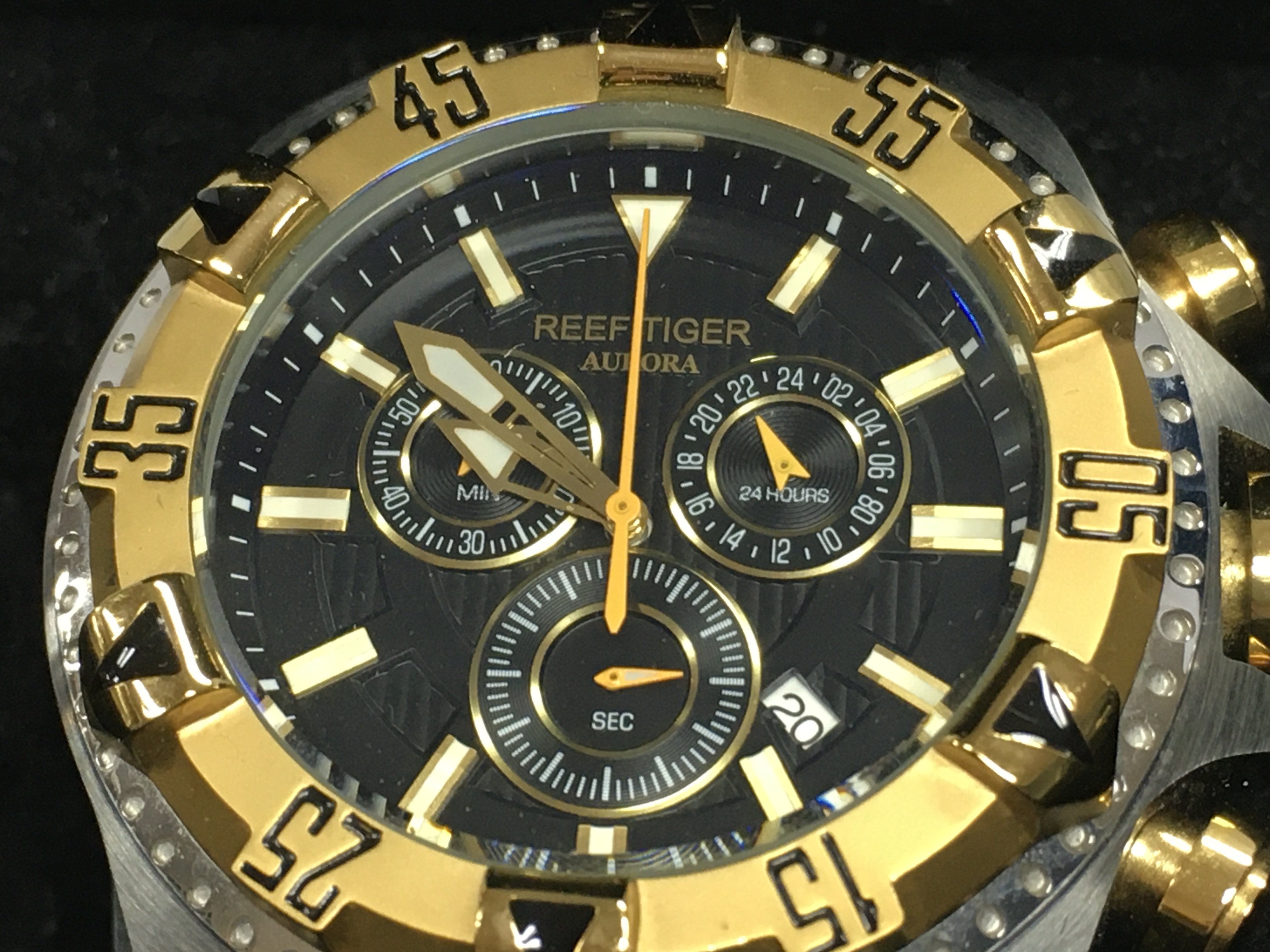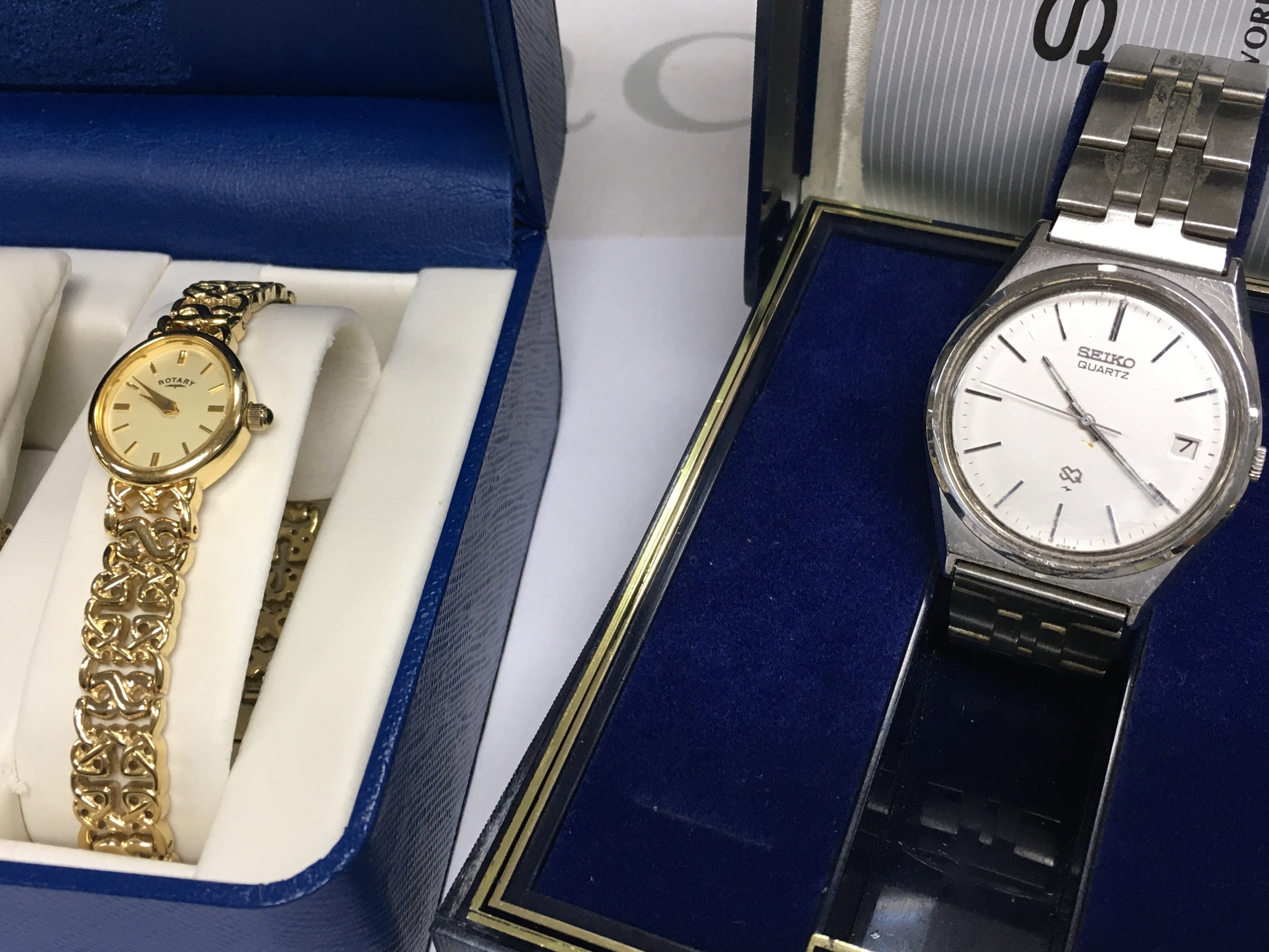 A boxed Seiko 50, Reef tiger mens watch , a ladies rotary boxed working. Postage category B