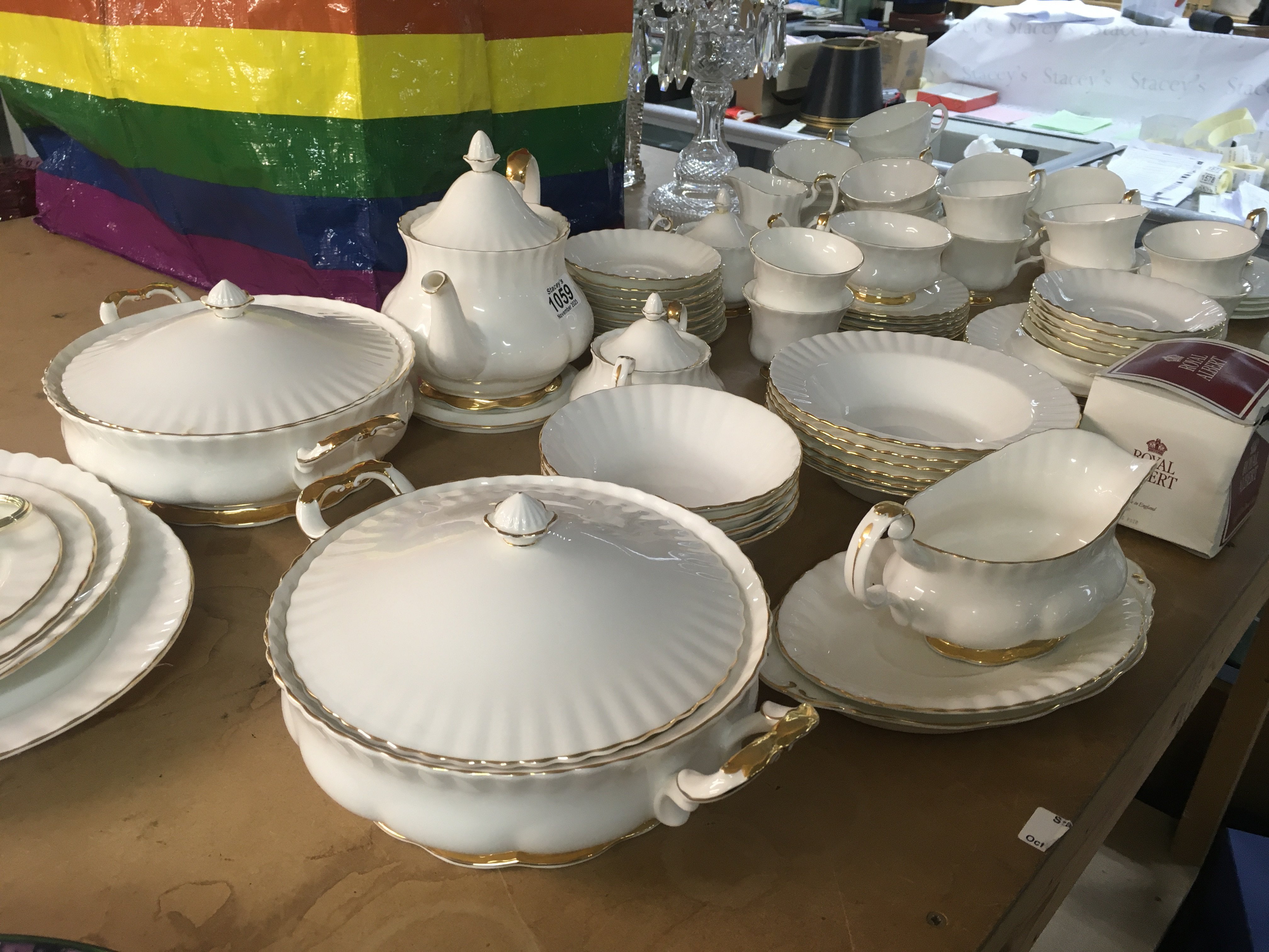 A Royal Albert part Dinner/ tea set together with six Wedgwood cups and saucers.