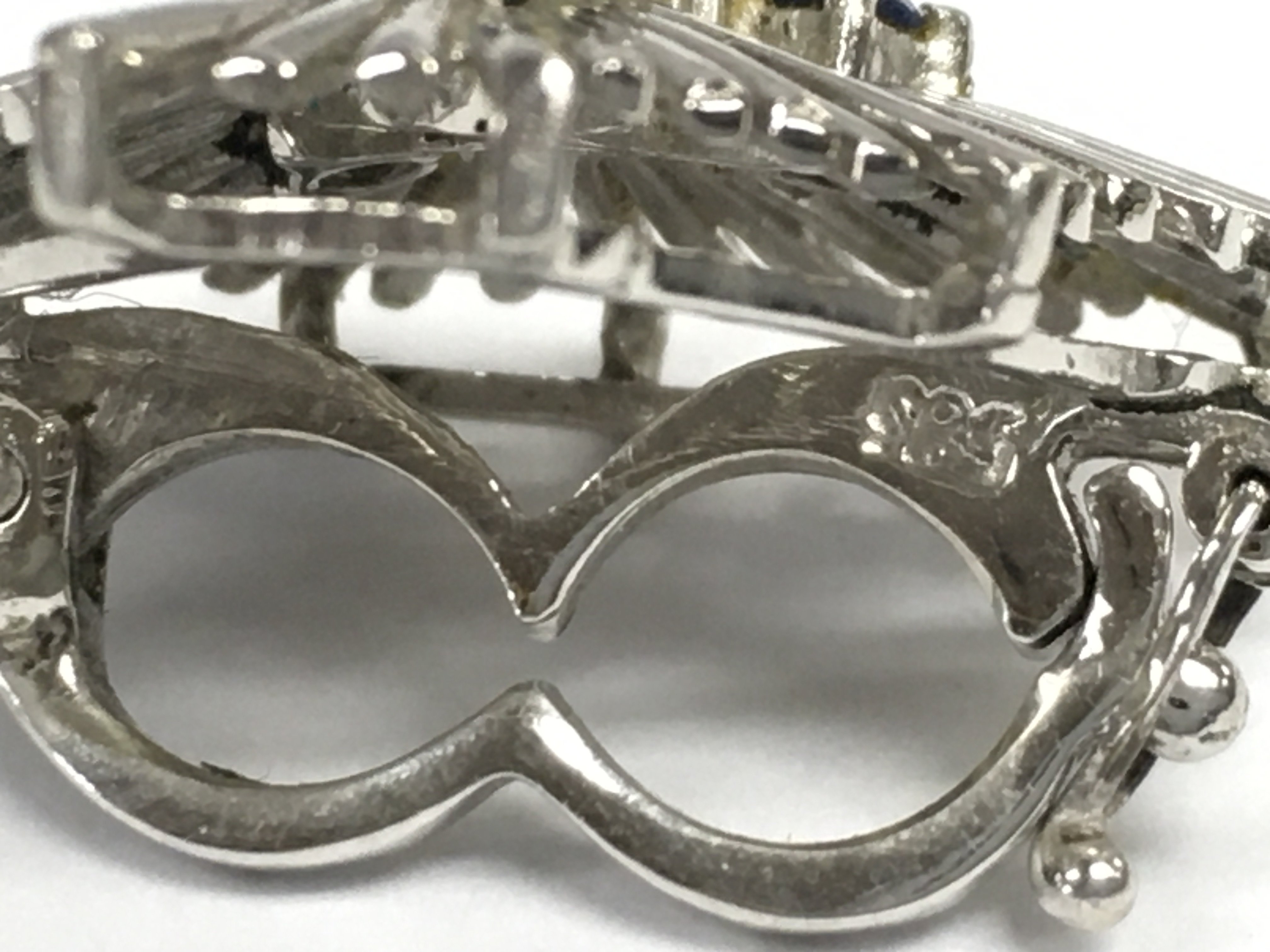 A 14ct white gold pendant set with four small sapphires. Approximately 3.88g and 2cm wide.