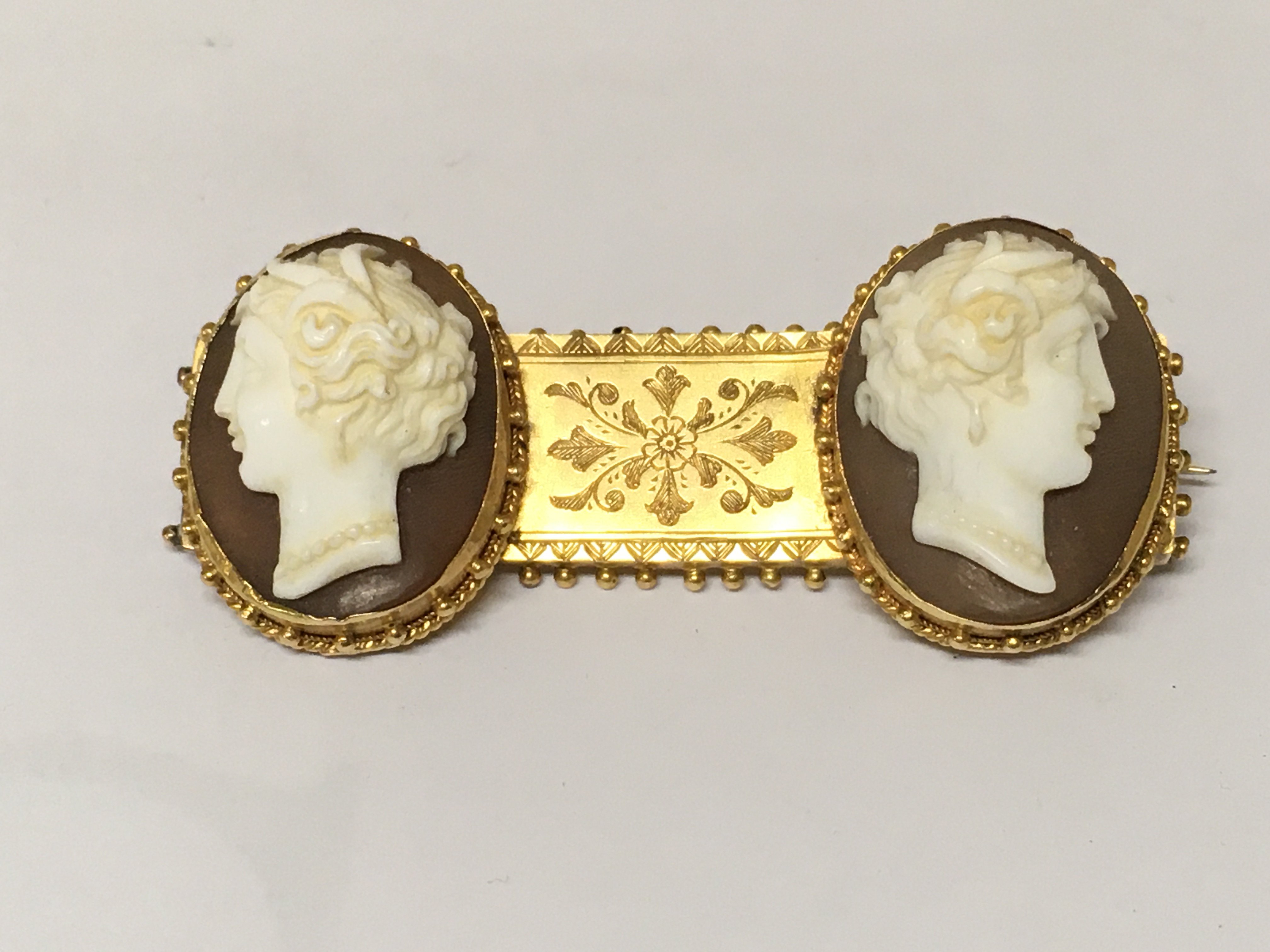 A Victorian double cameo brooch. 9.81g Postage B
