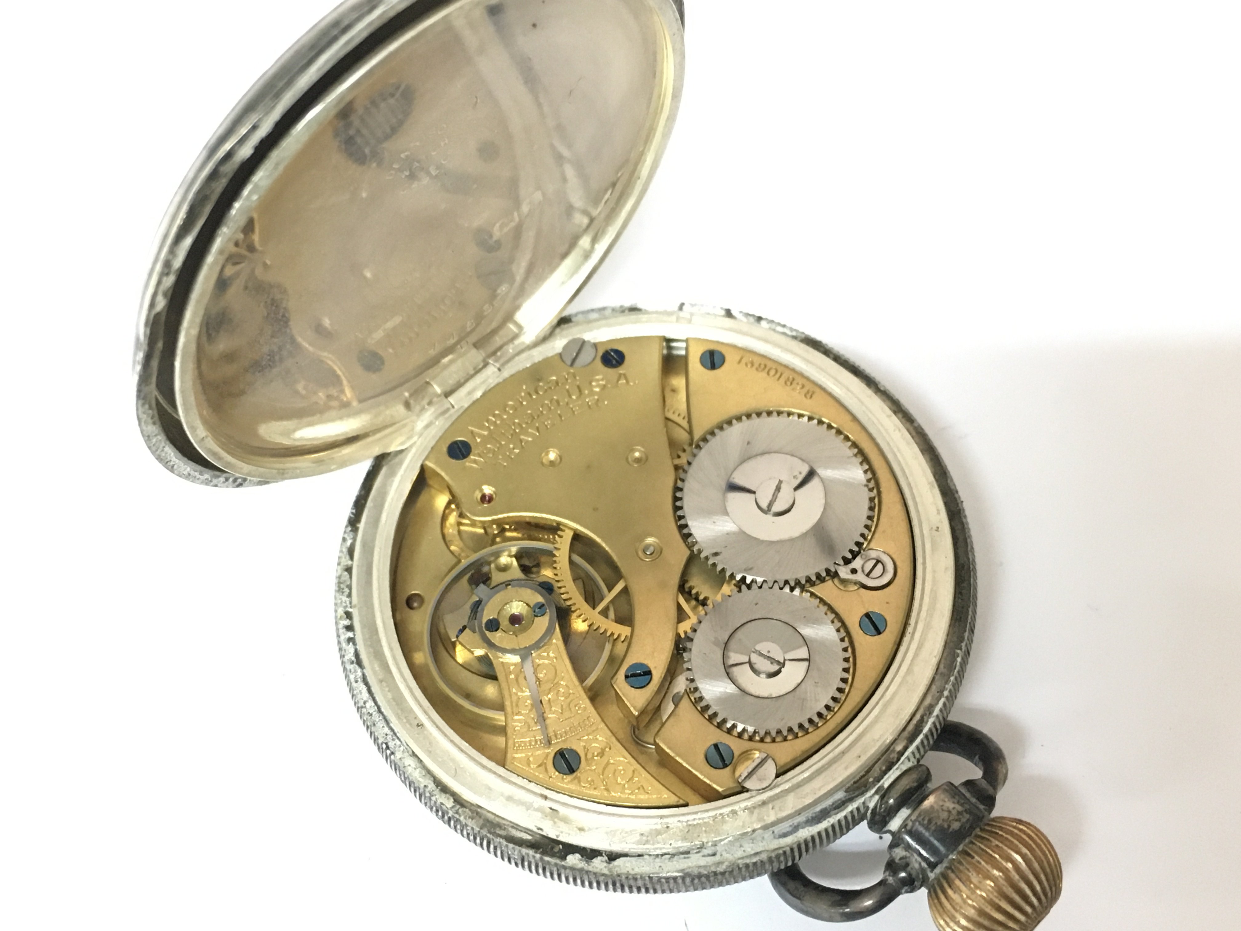 A silver hallmarked Waltham pocket watch. 99g winds and runs.