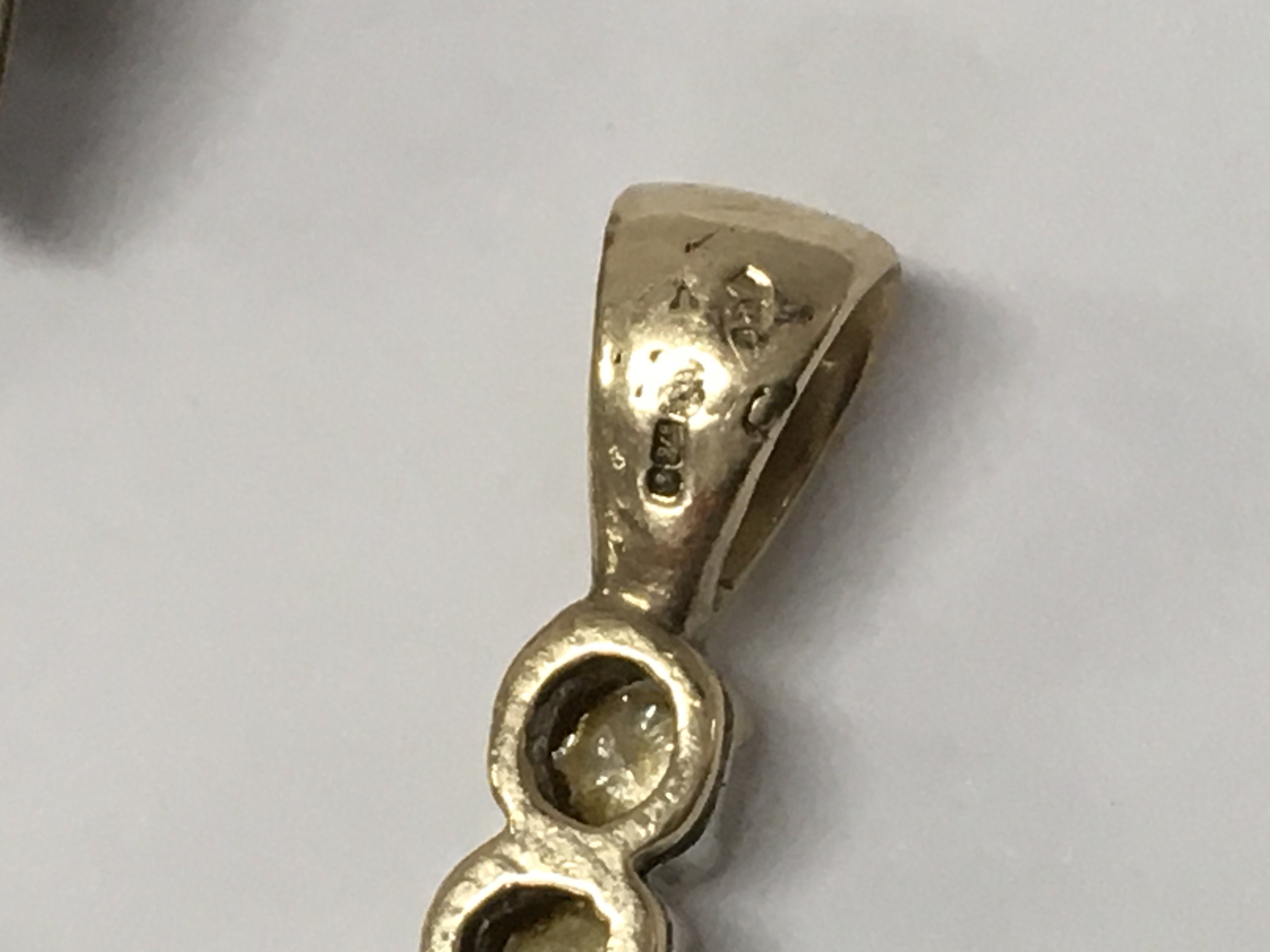 a collection of pendants including mother of pearl, some silver examples and a 9 ct gold cross pendant inset with diamond stones (2.7g total weight) .