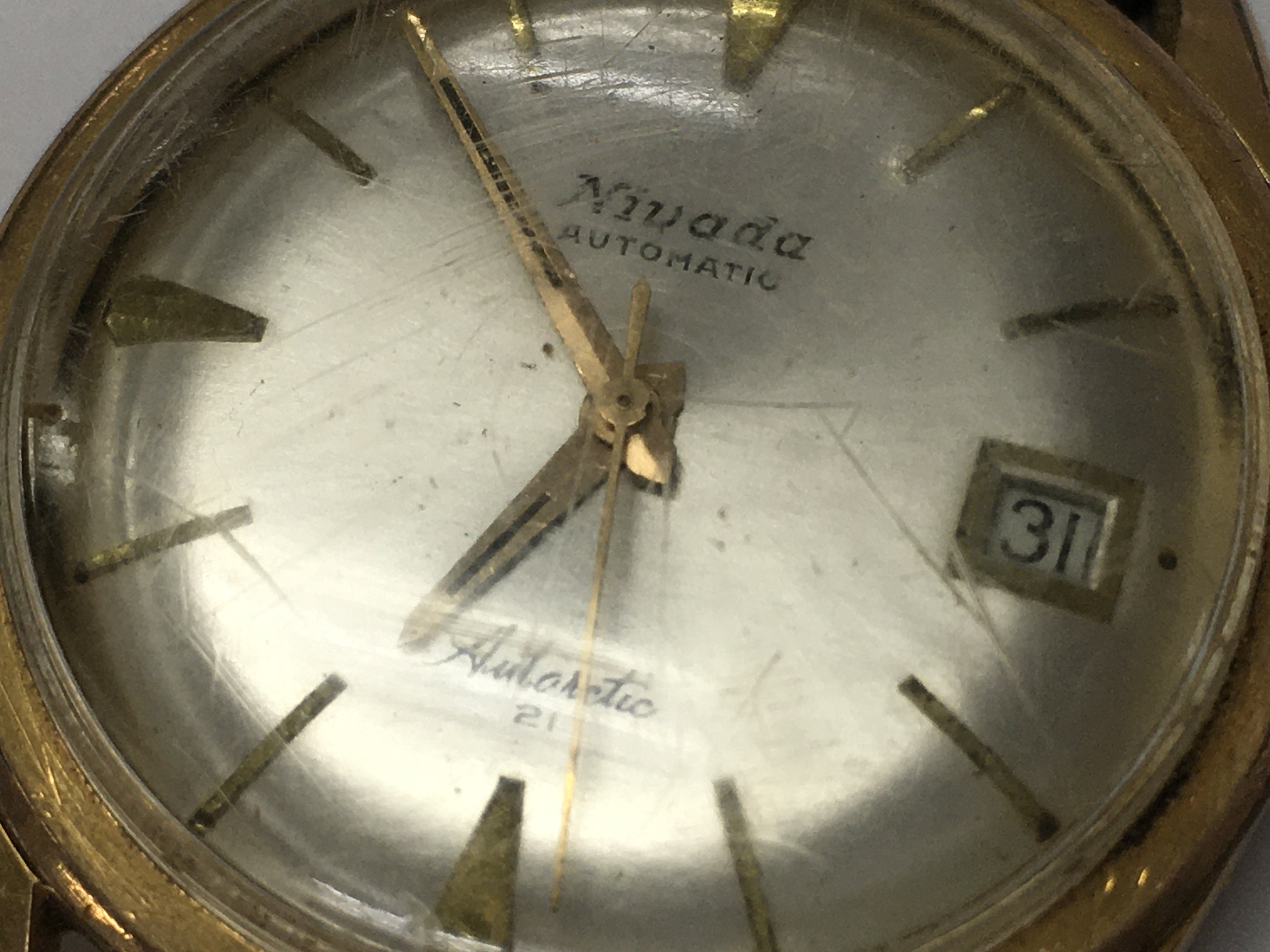 A boxed vintage gents Nivada Swiss automatic watch . Postage category A