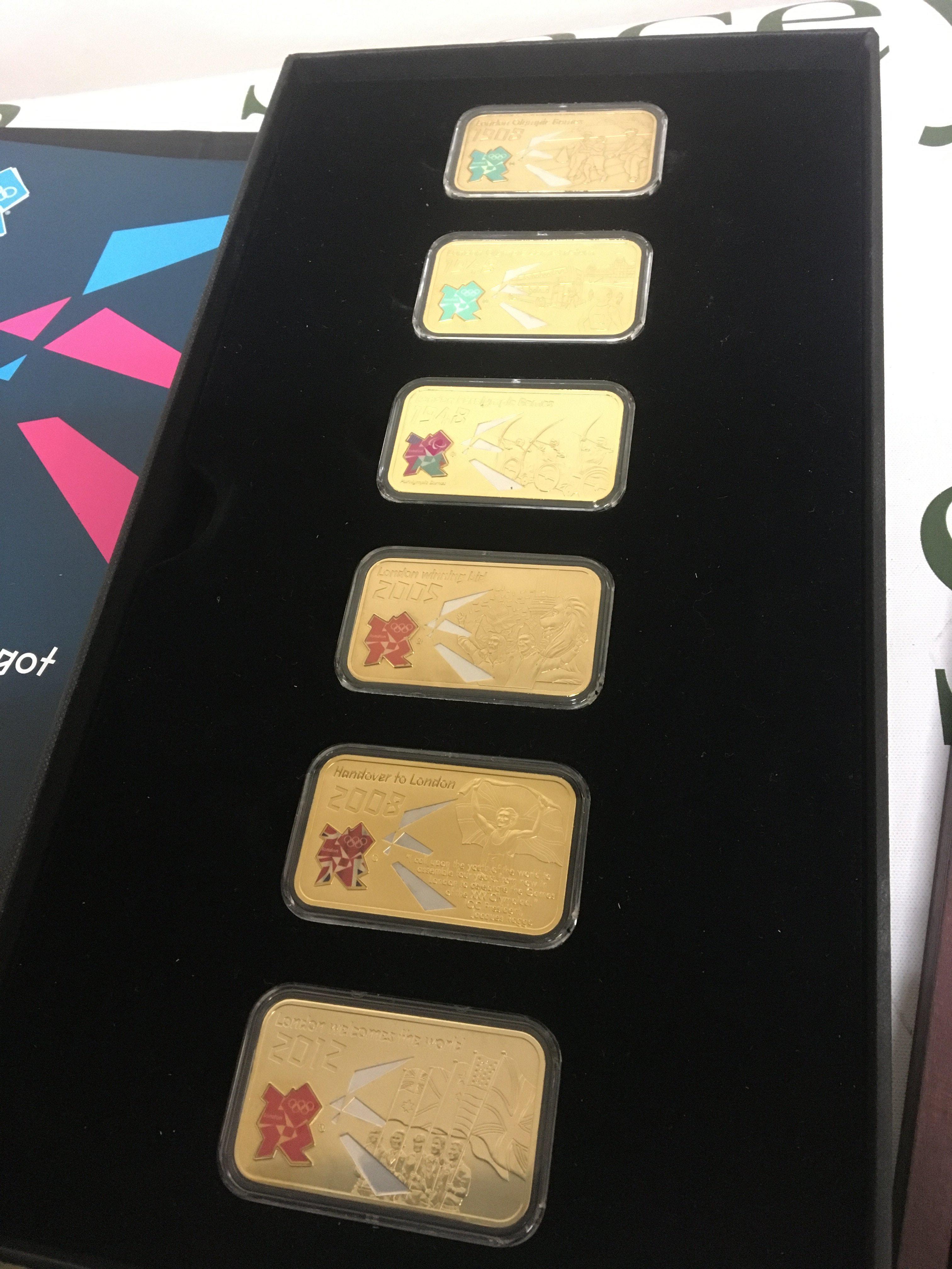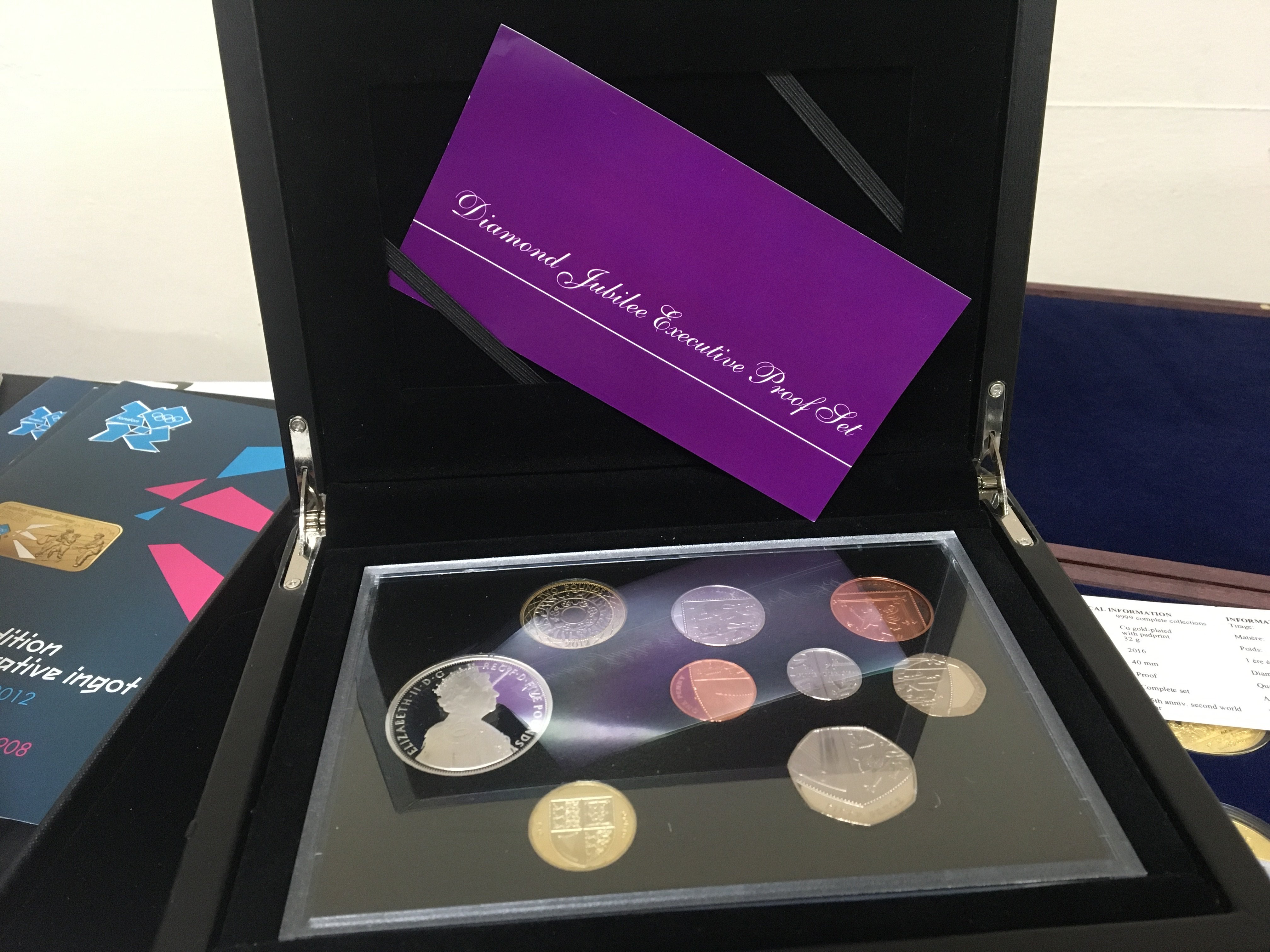 A collection of limited edition and other coins including 2012 Olympic Ingots Battle of Berlin A diamond Jubilee and two Executive Jubilee set.