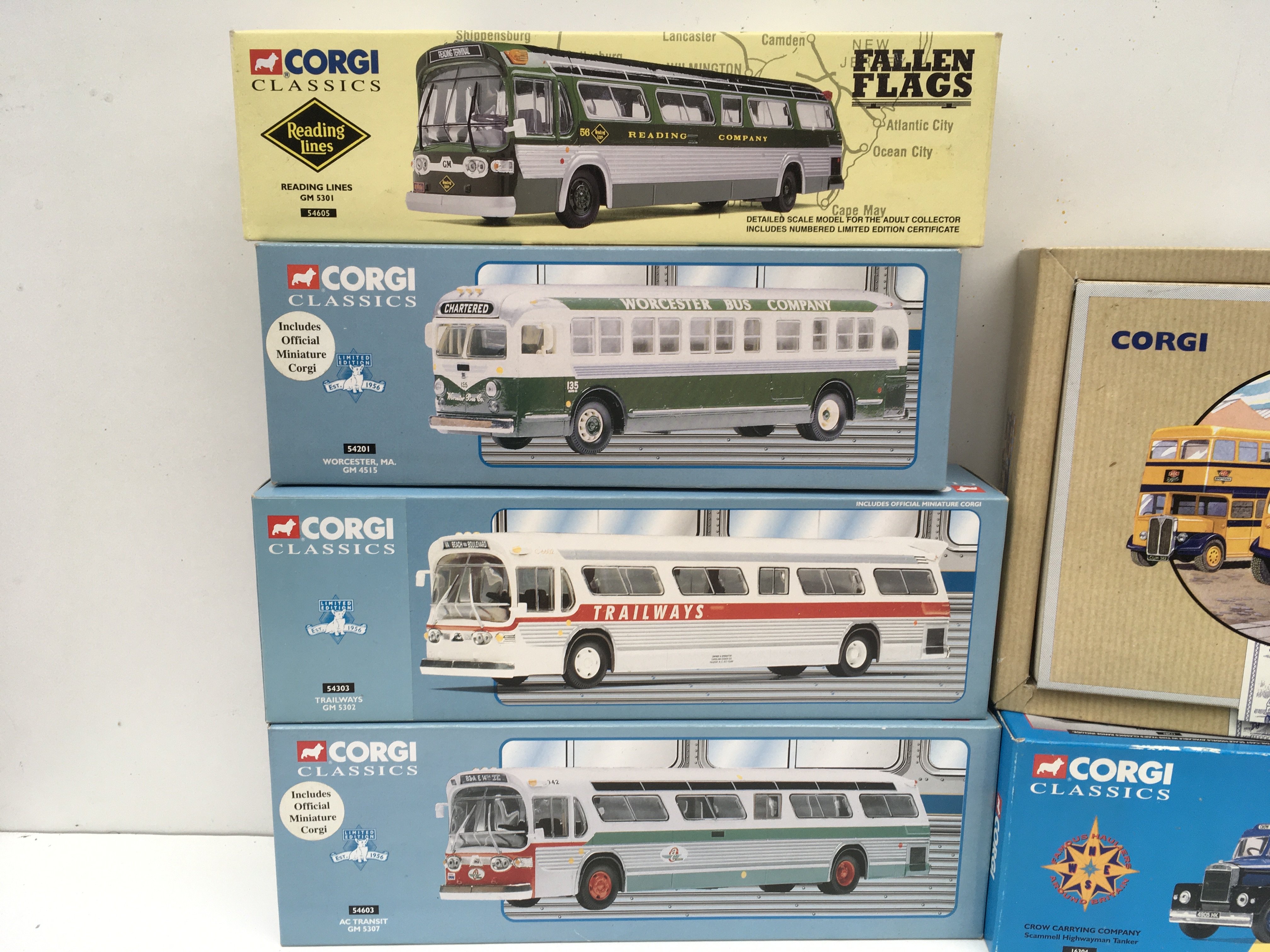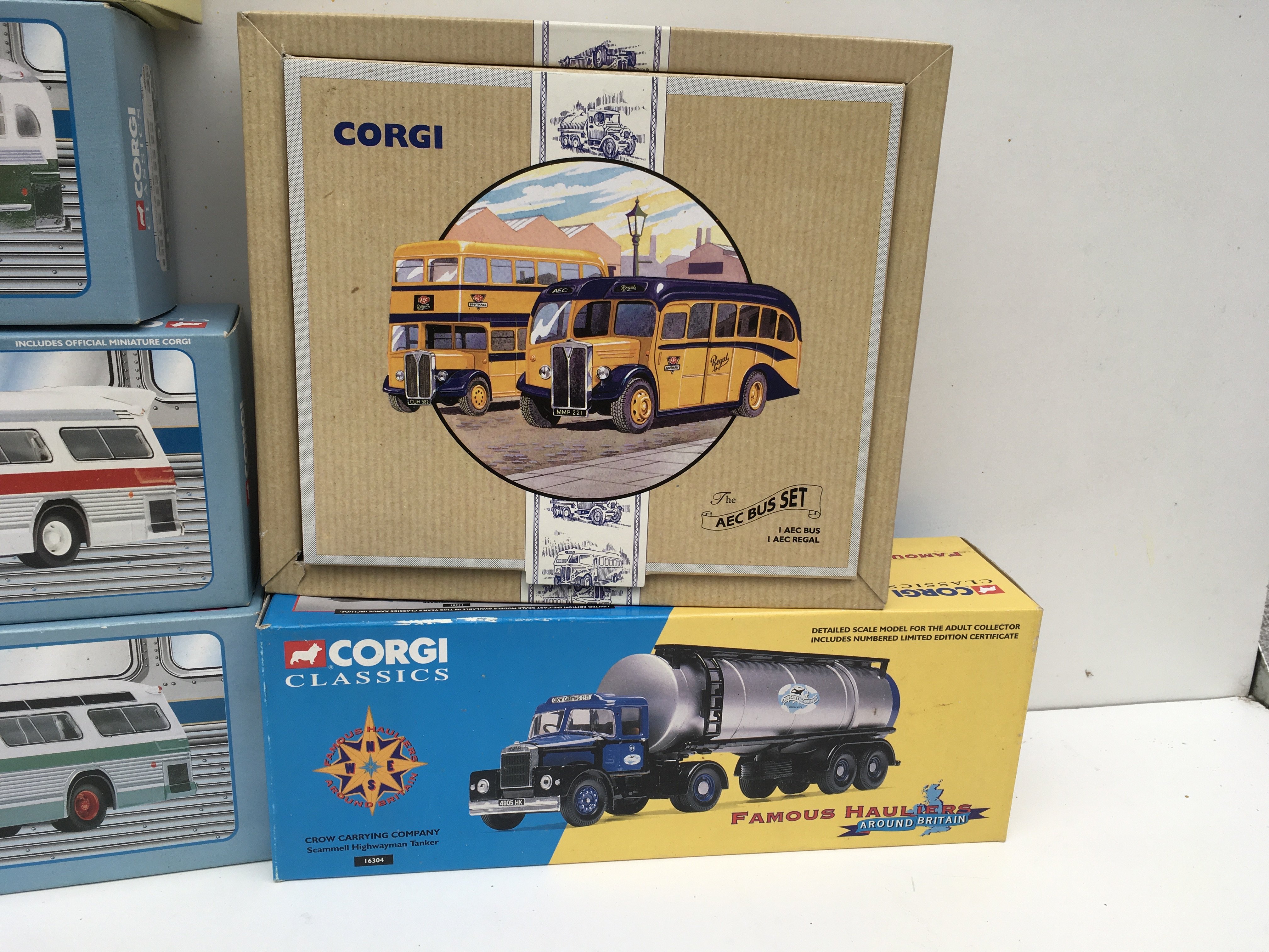 A collection of 6 boxed Corgi Classics mostly coaches but includes a tanker. No reserve