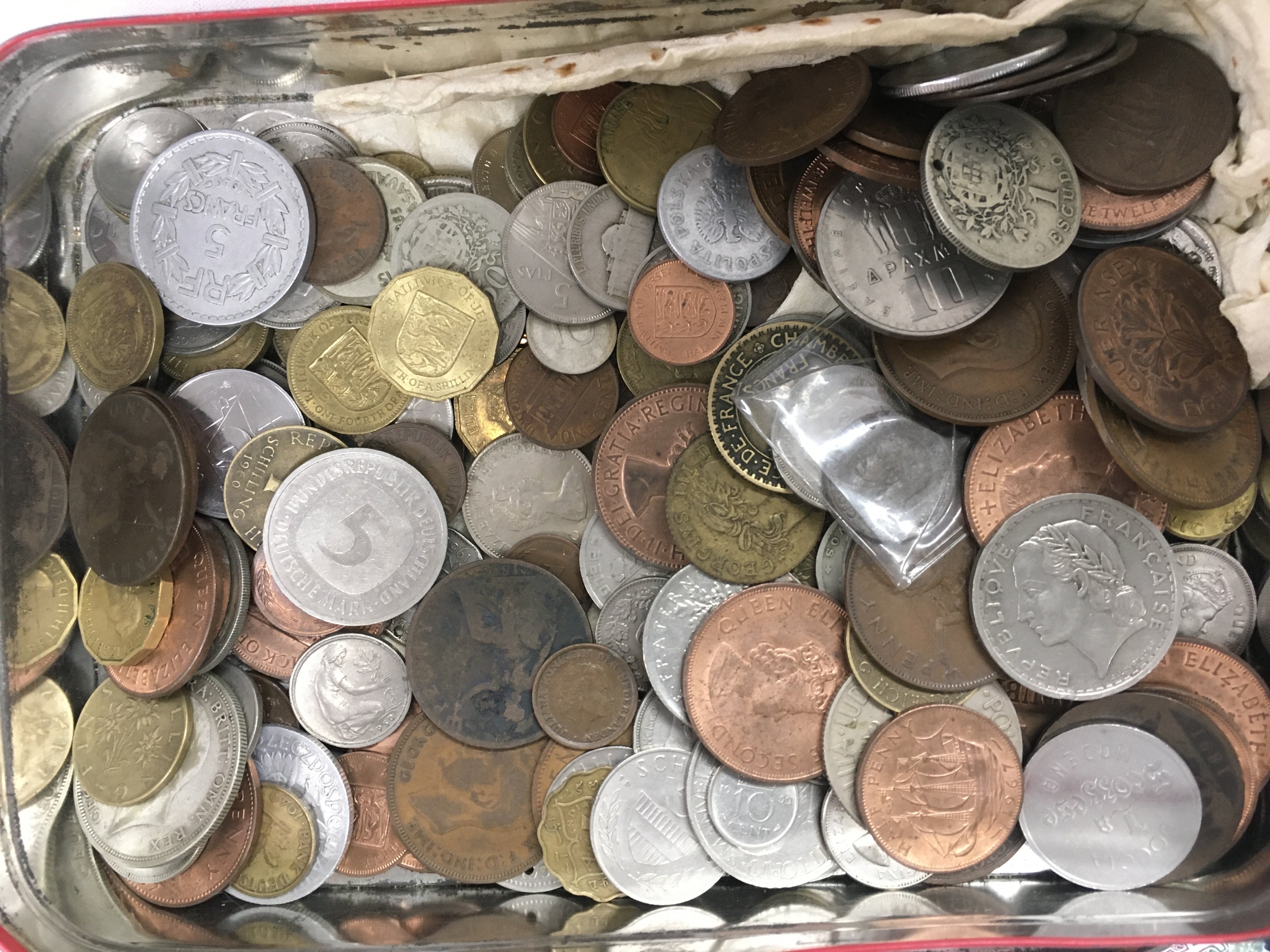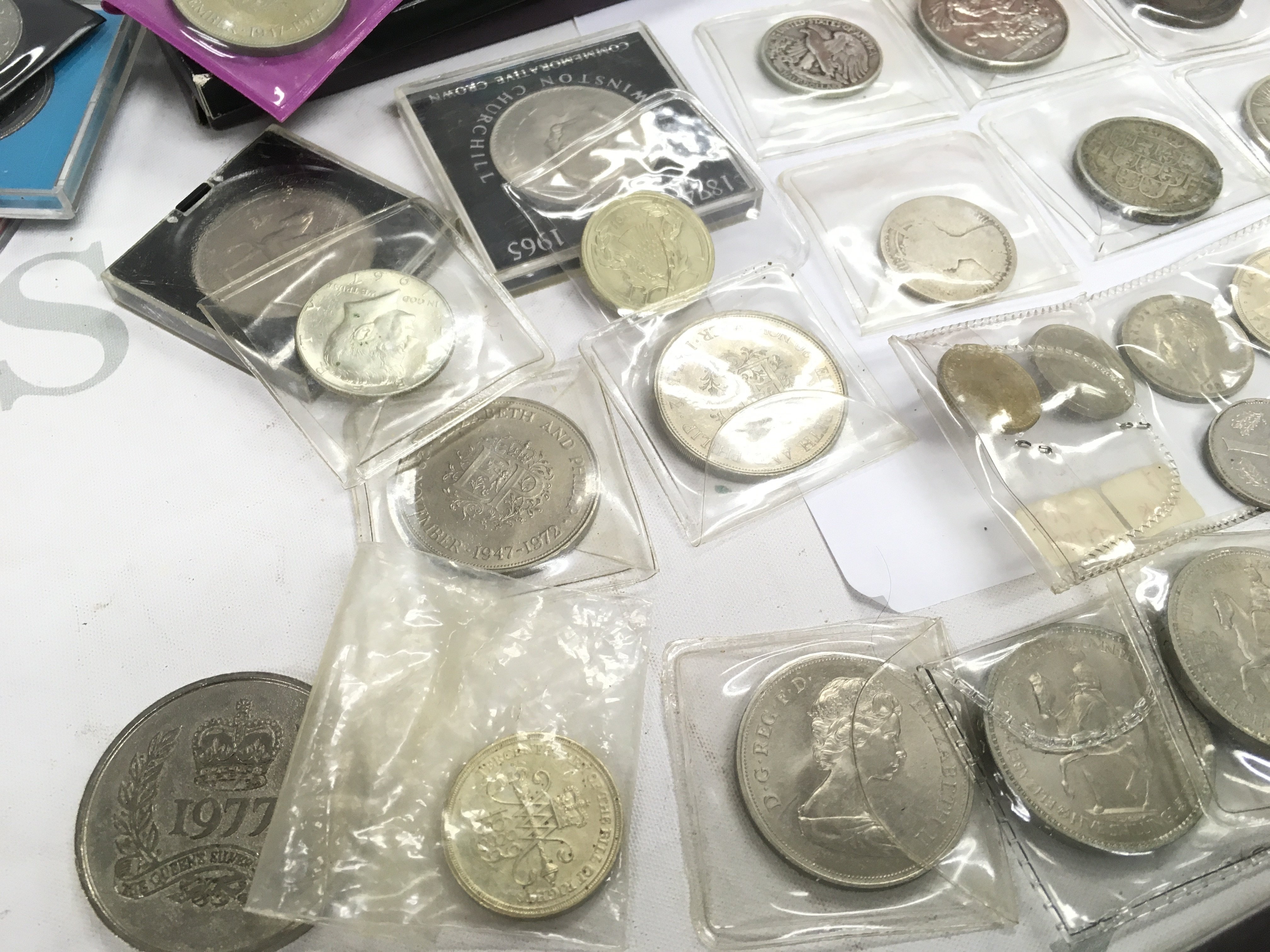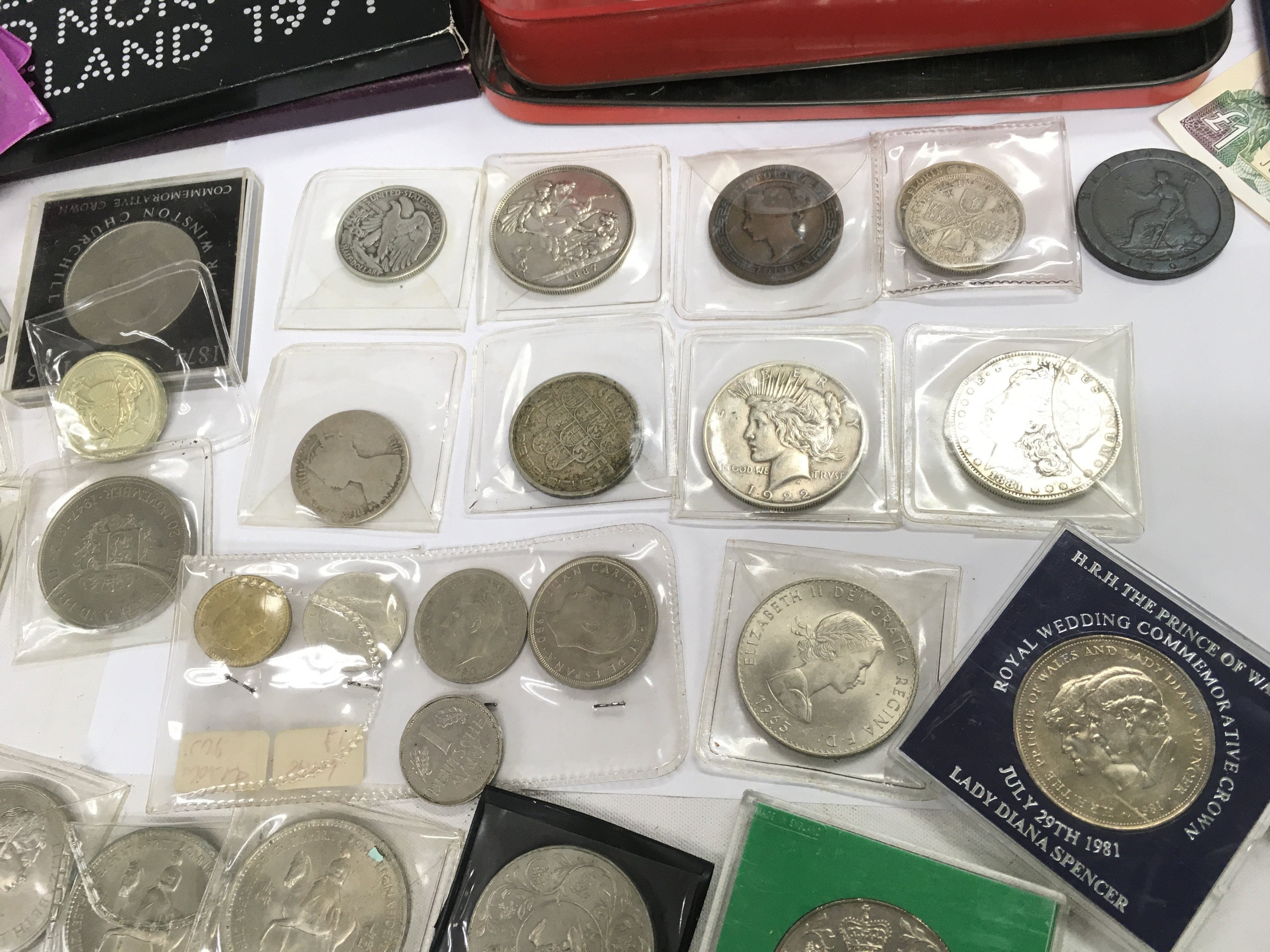 A mixed collection of world coinage including a 1922 US liberty dollar ,1881 US Dollar, 1887 crown, 1797 George III penny etc. 1986 Brilliant uncirculated coin collection, The Decimal coinage of GB and Northern Ireland 1971 etc. postage category B