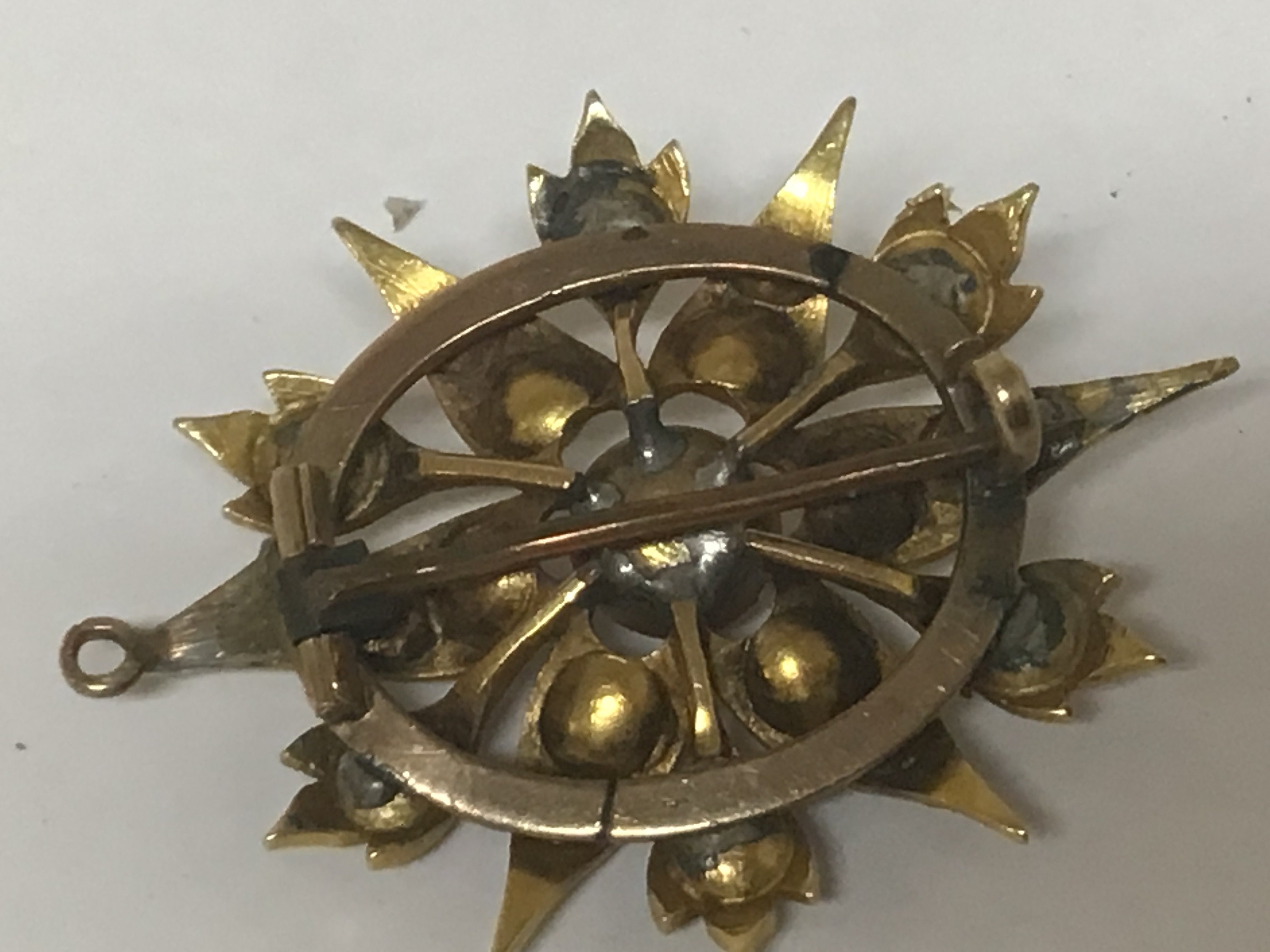 A Pearl set Antique brooch folate star pattern.repaired