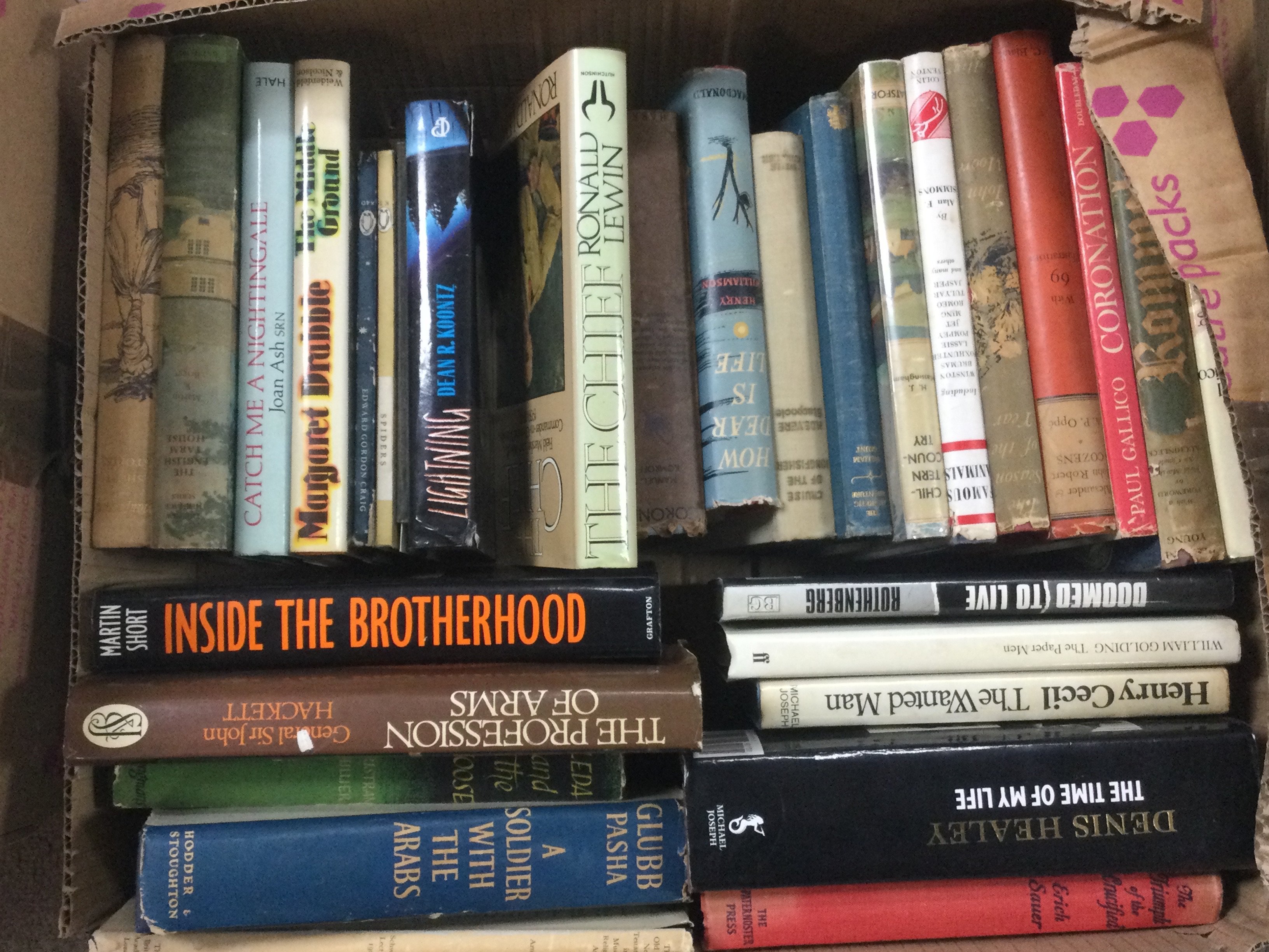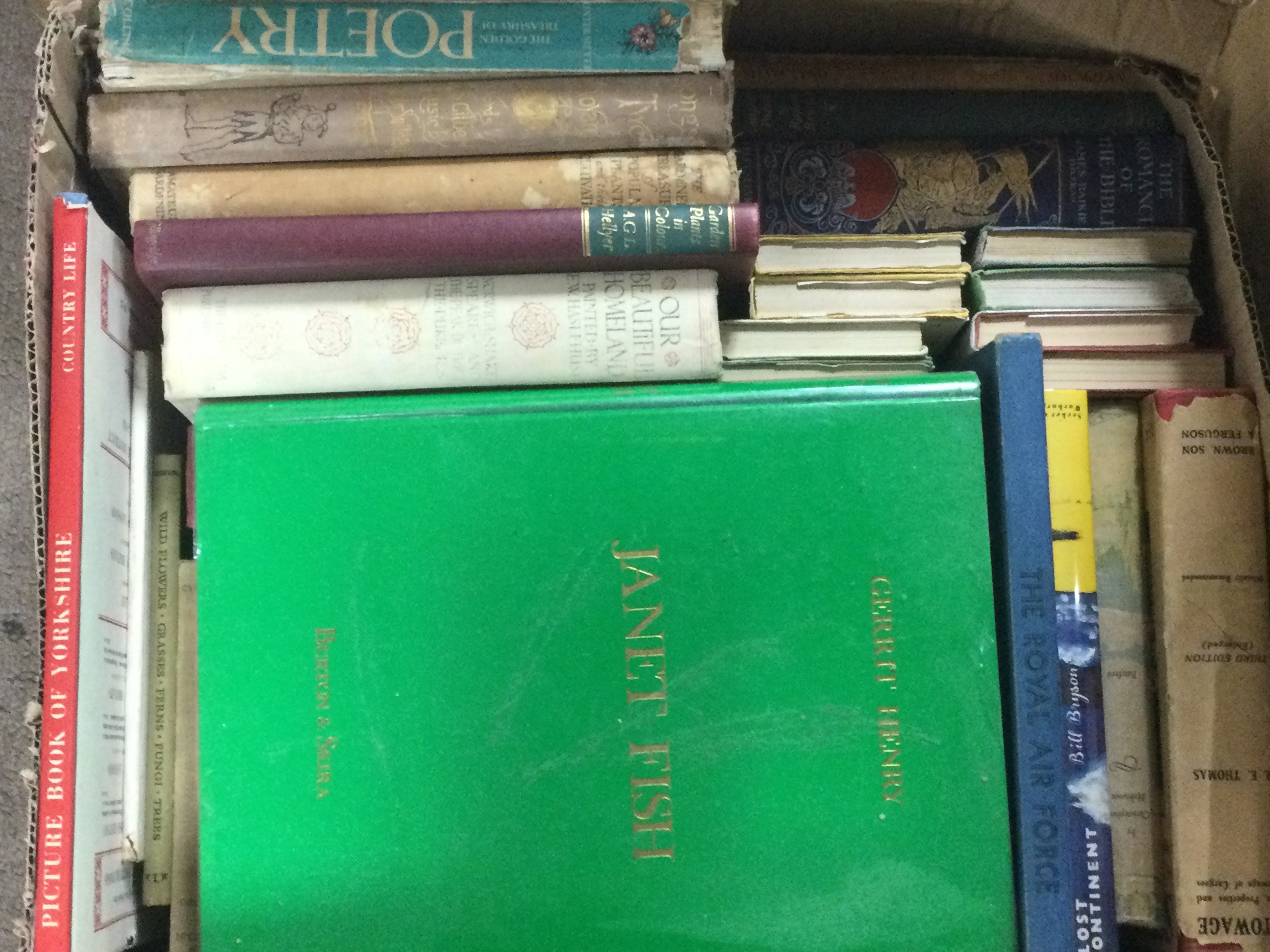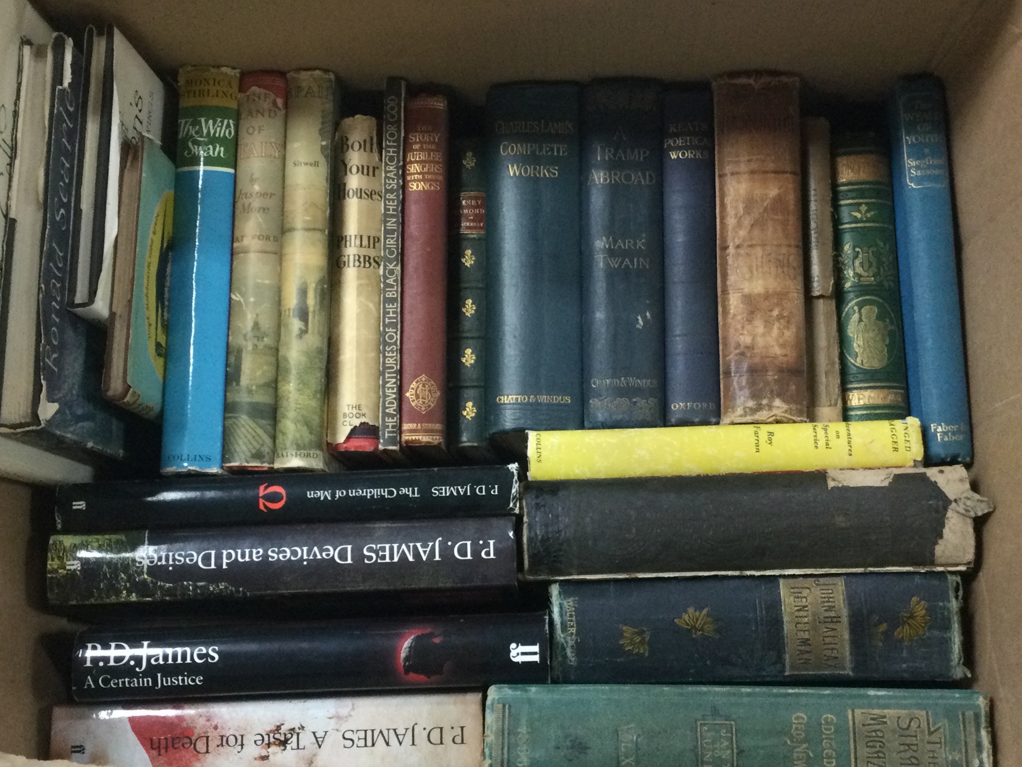 Six boxes of mixed vintage books including Skakespeare 1900 Macbeth Deighton, Henry Wadsworth Long Fellow Poems, Charles Lambs complete works, A Trap Aboard Mark Twain etc