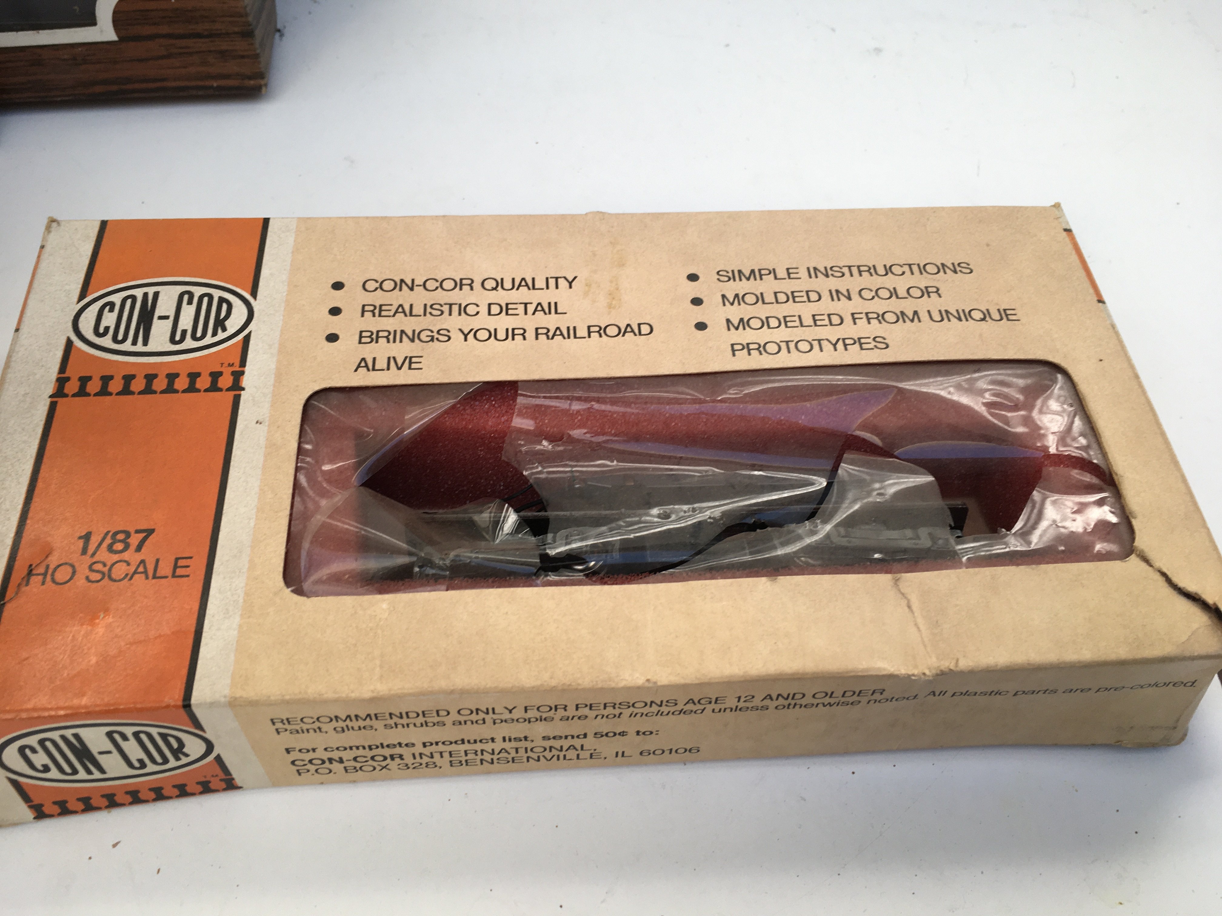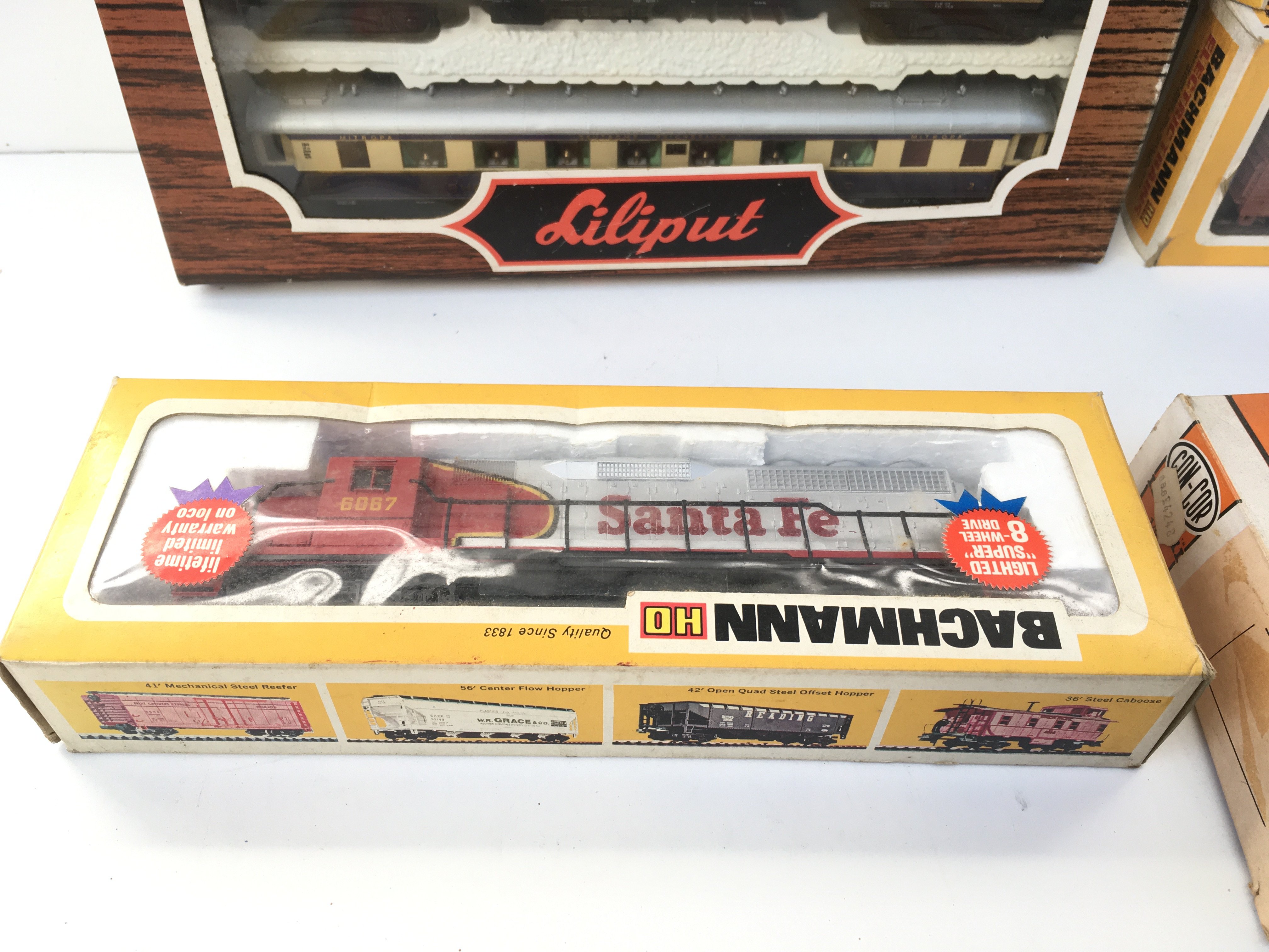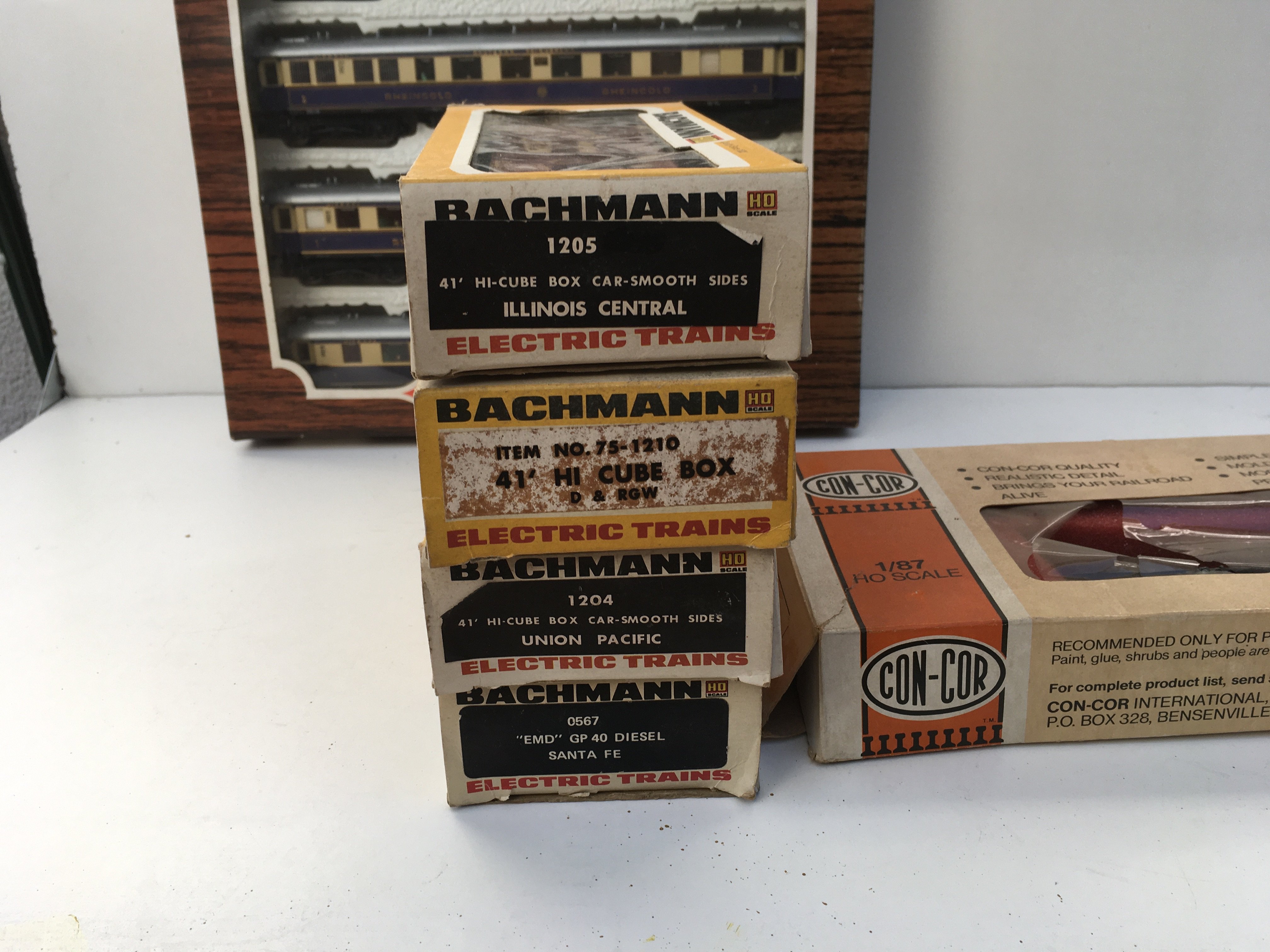 A collection of boxed HO gauge model railway items including a locomotive by Bachmann plus Part loco by ConCor. Also includes 3x Box cars by Bachmann plus a set of 5 carriages by Lilliput. No reserve.