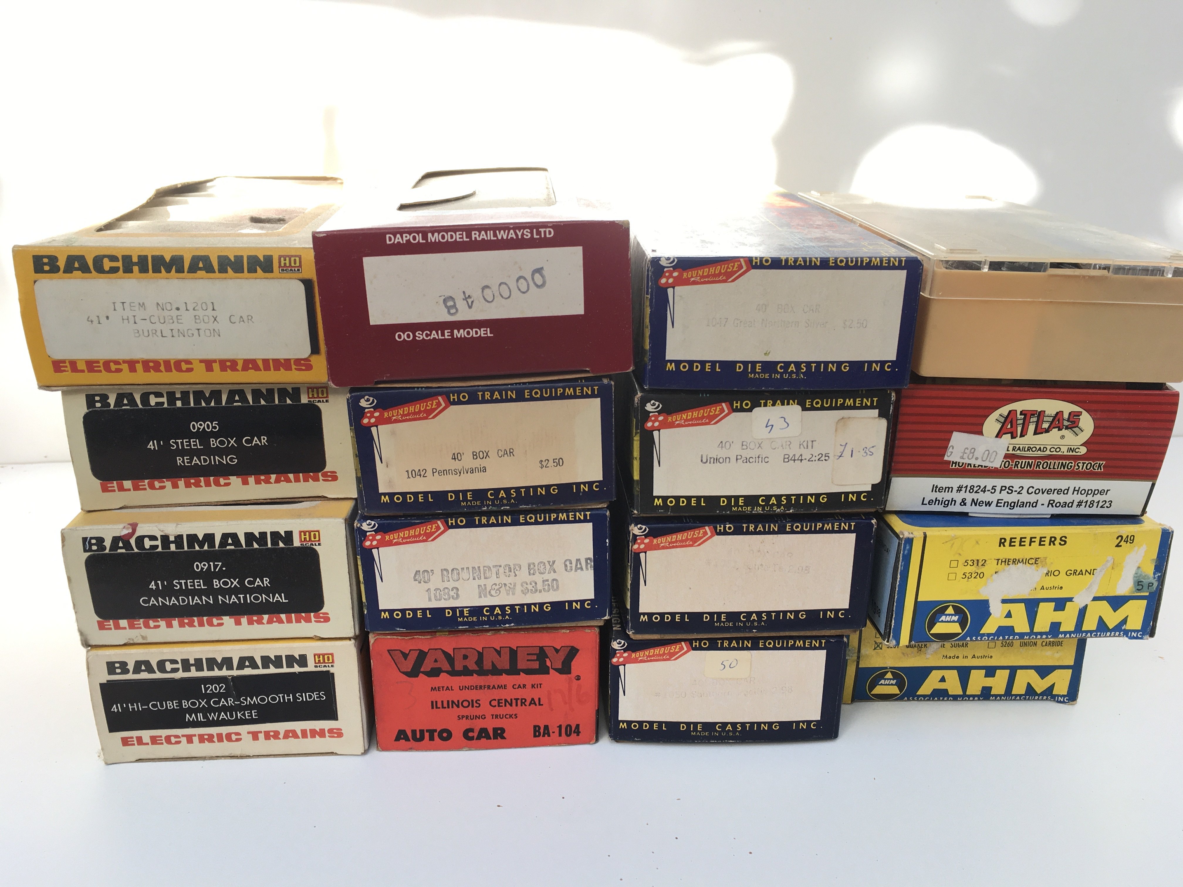 A collection of boxed HO gauge Wagons and box cars by various manufacturers including Bachmann..Roundhouse and others. No reserve