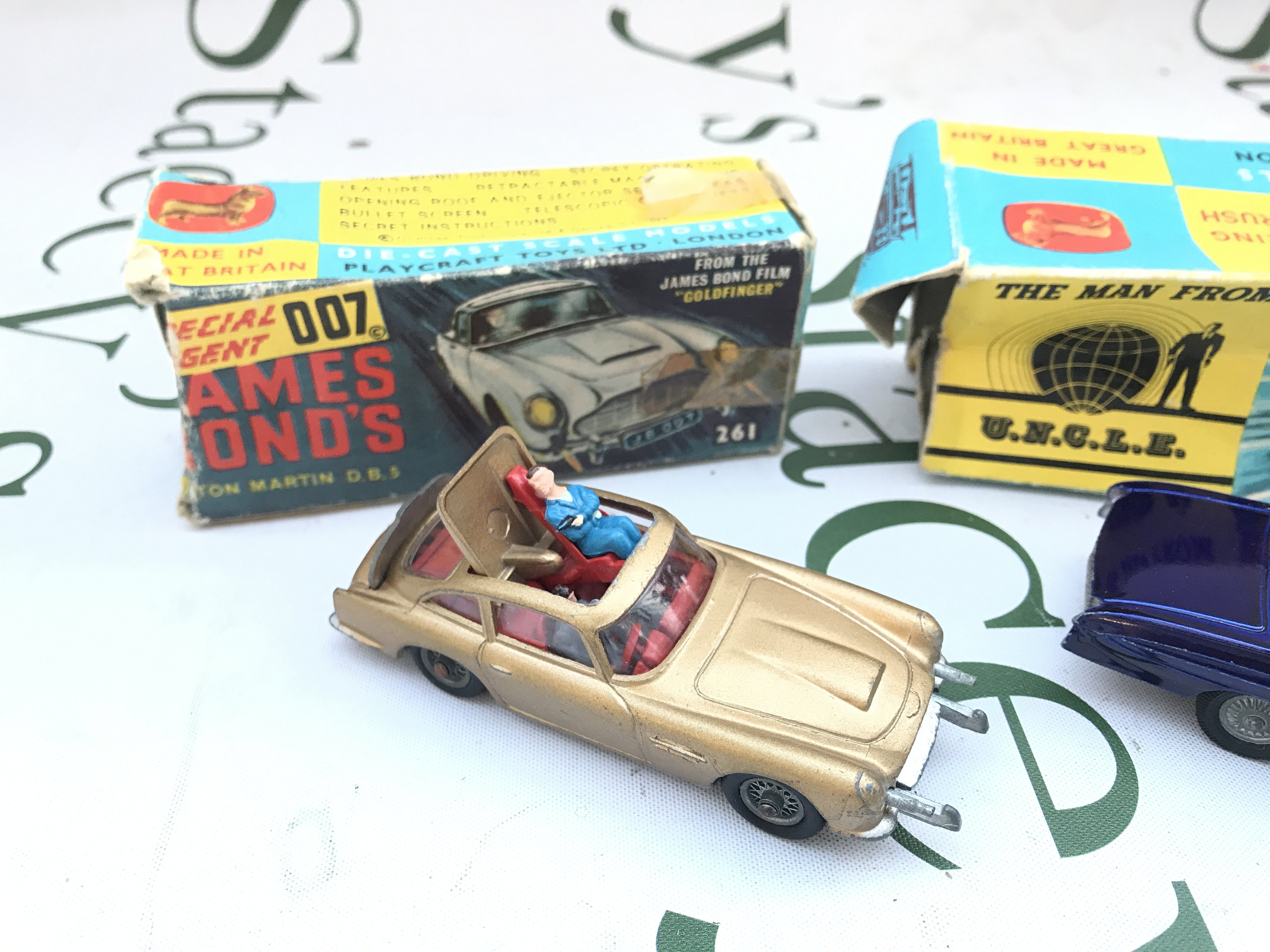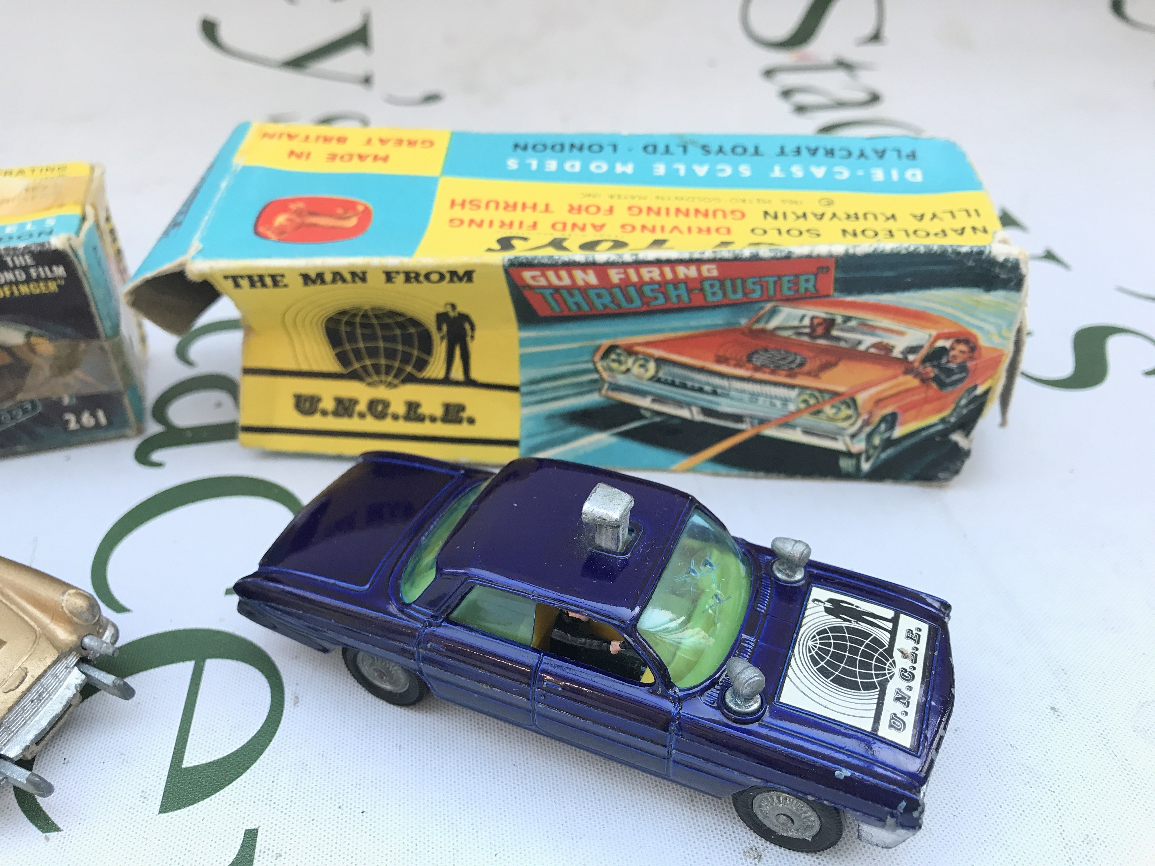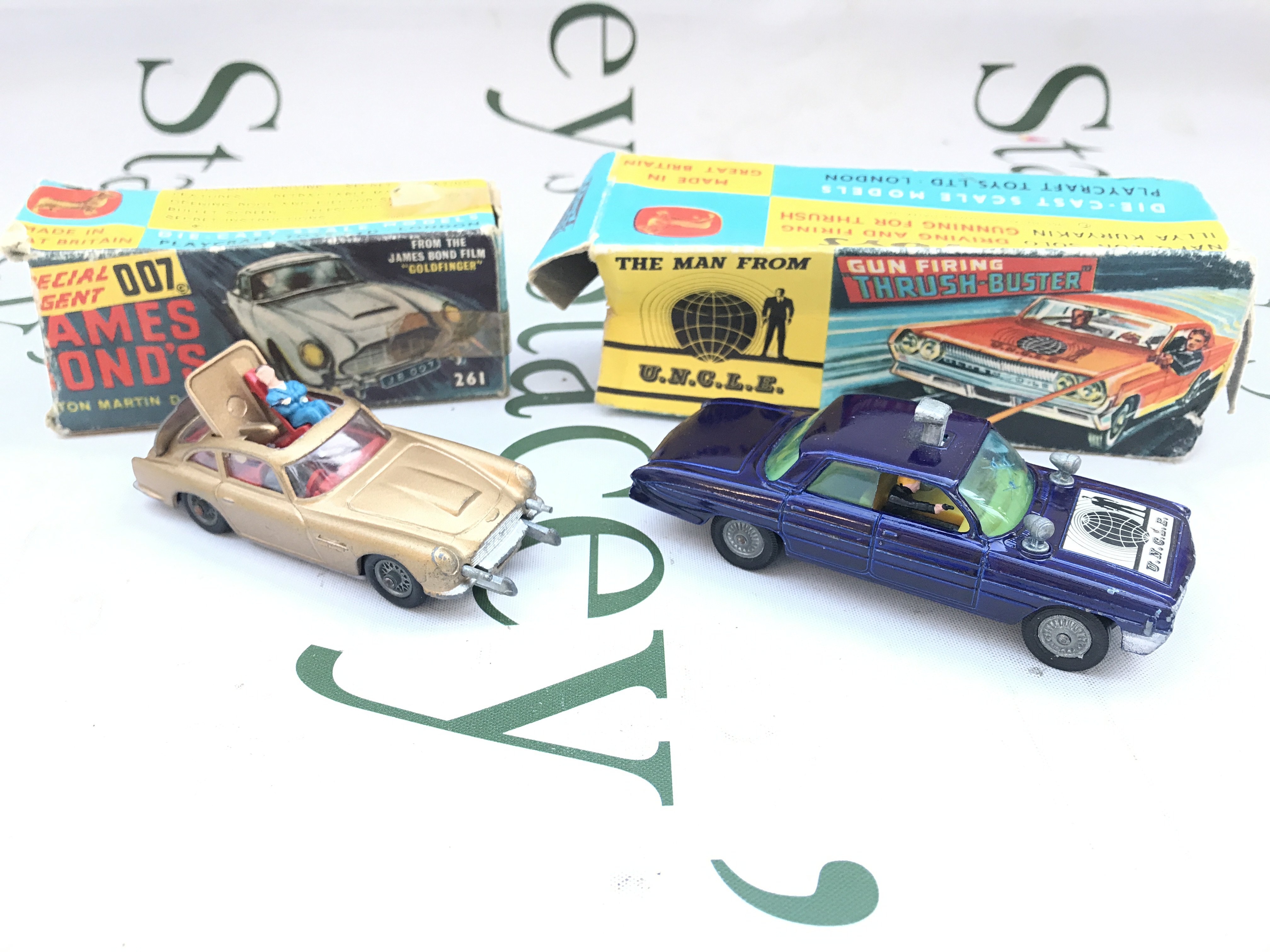A Boxed Corgi James Bond Aston Martin DB5 #261 (No Envolope) And A The Man From Uncle Thrush Buster (No Ring) Both plinths Missing Boxes Worn.