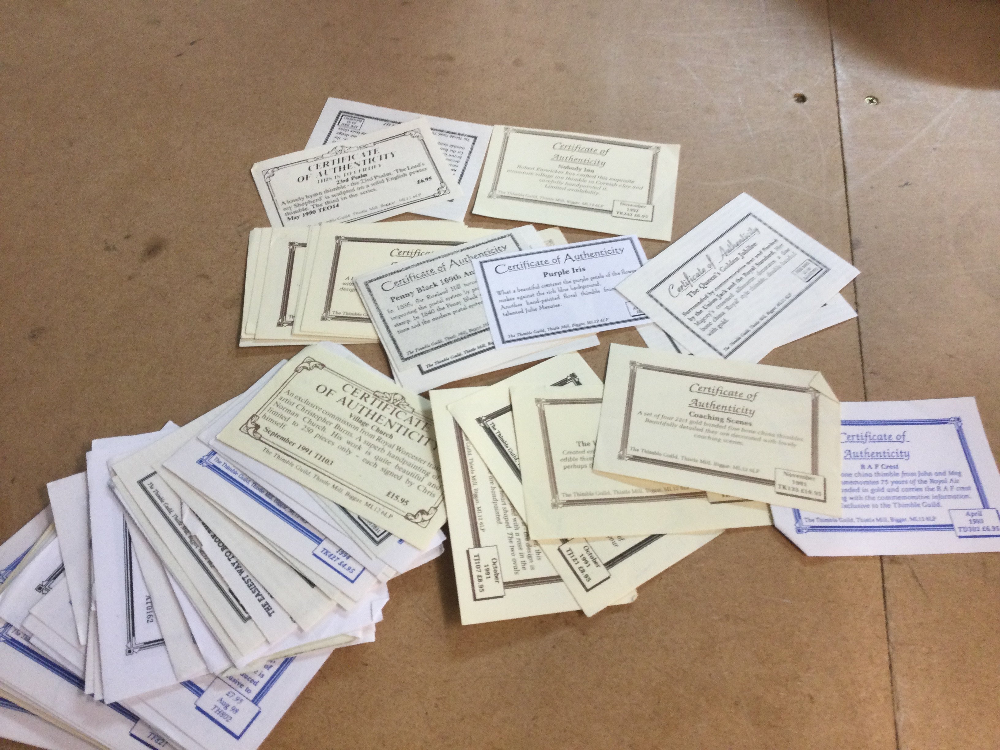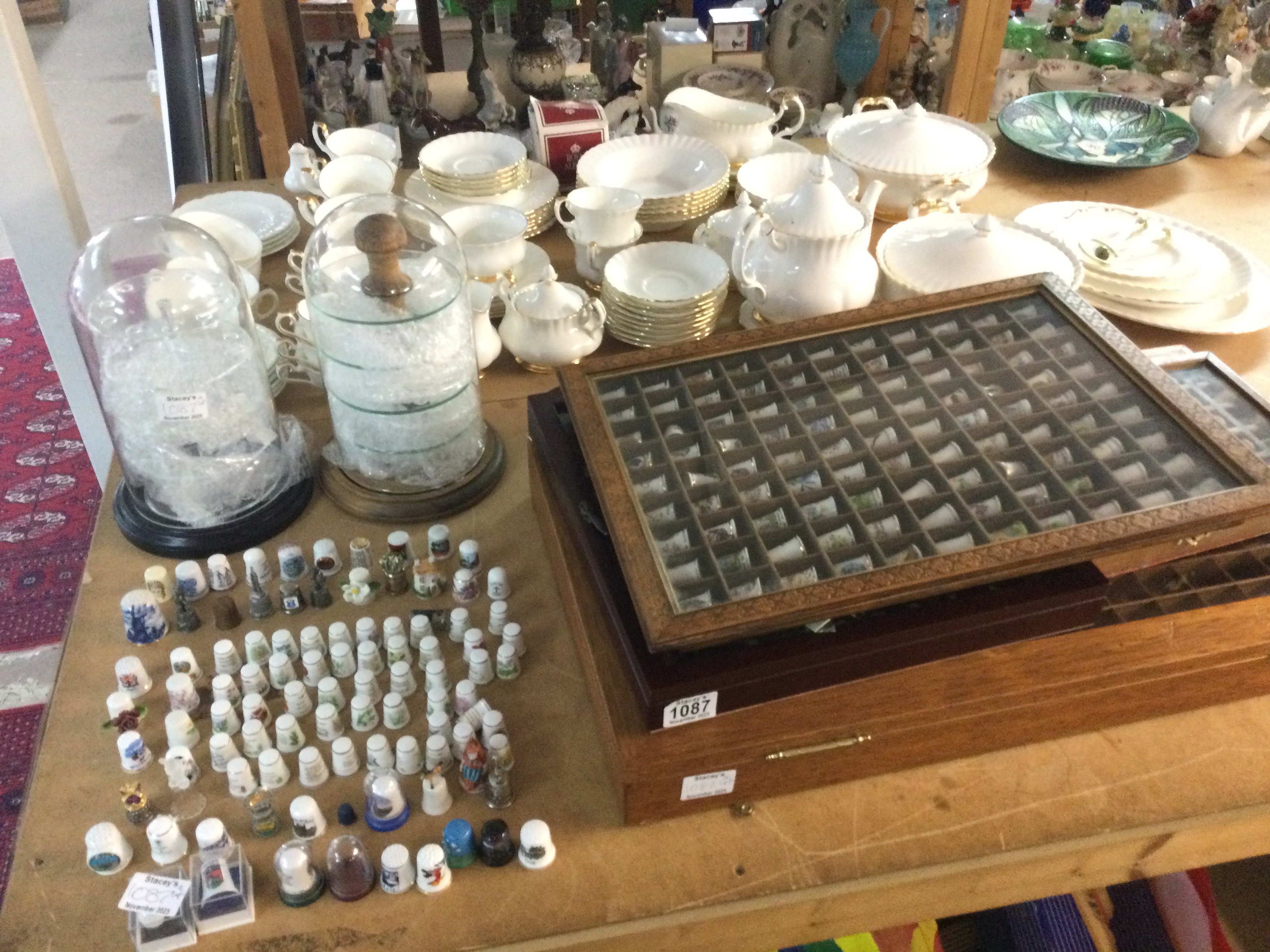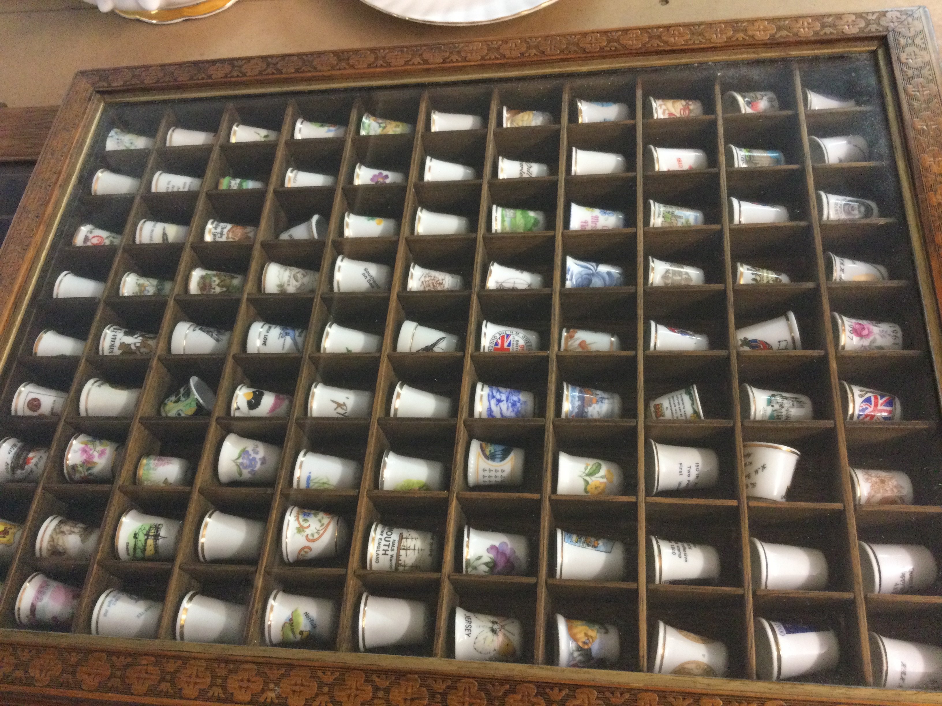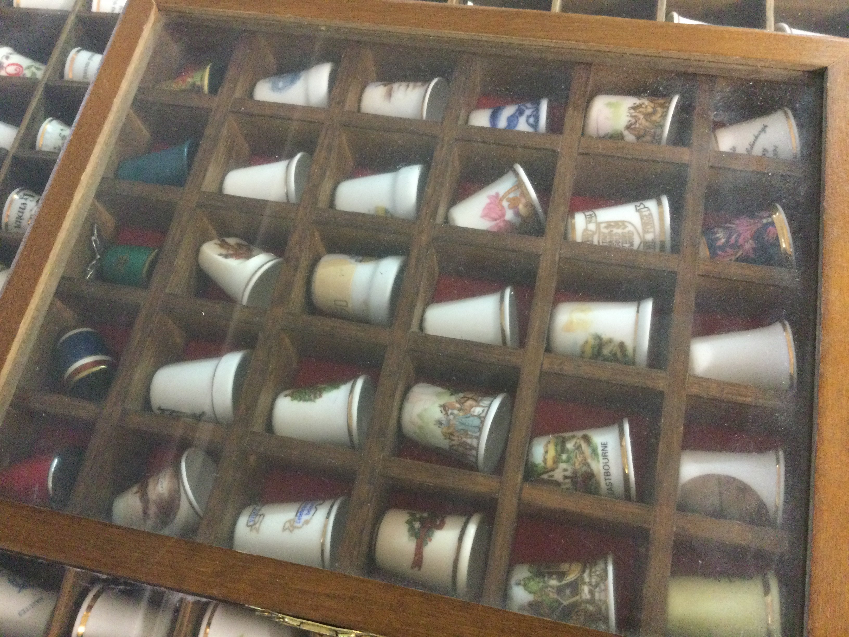 A large collection of ceramic thimbles including five trays, two domes . Approximately 500 thimbles. Including certificates .This lot cannot be posted