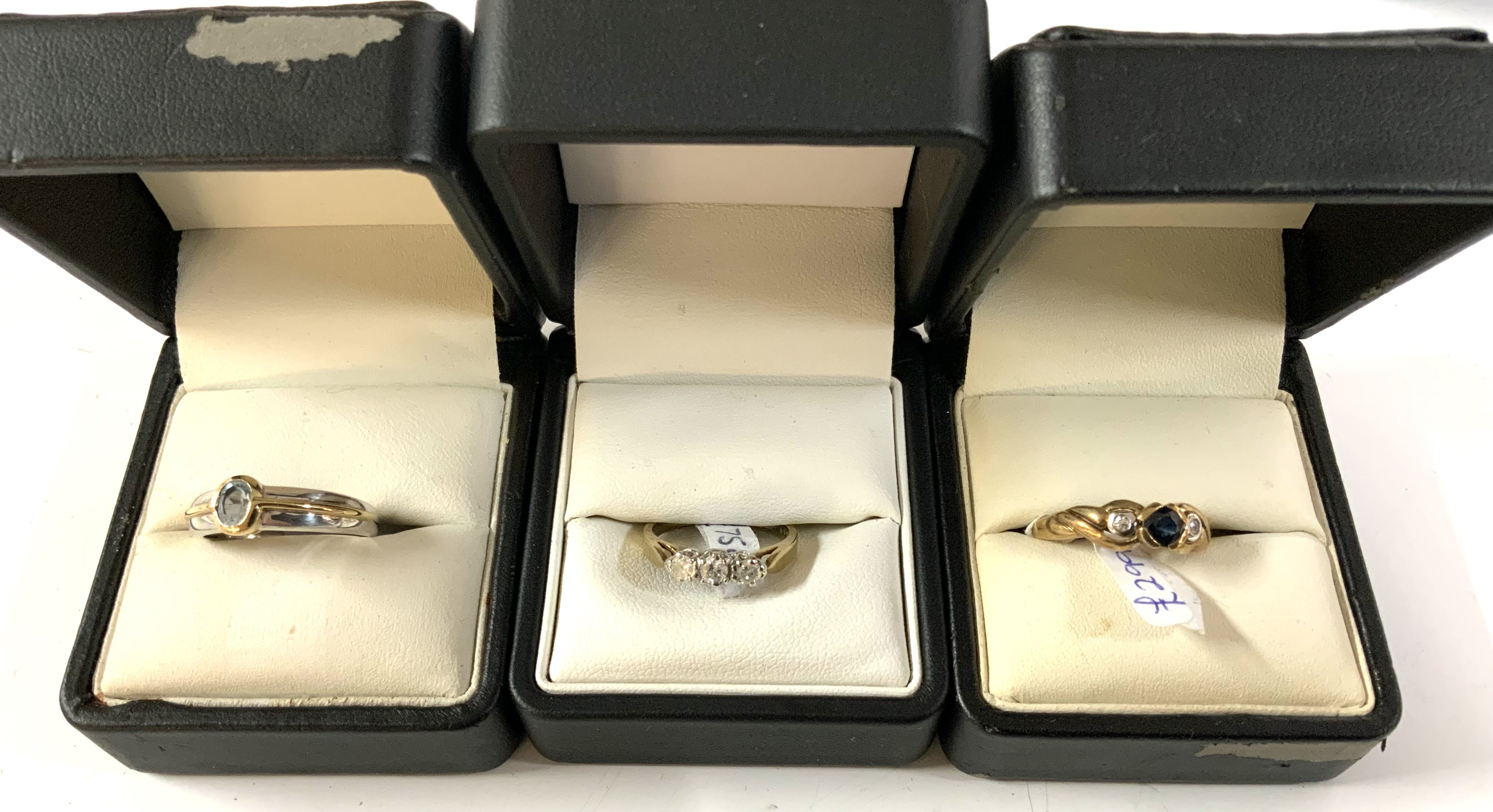 3 9ct gold stone set rings. (A)Condition Report