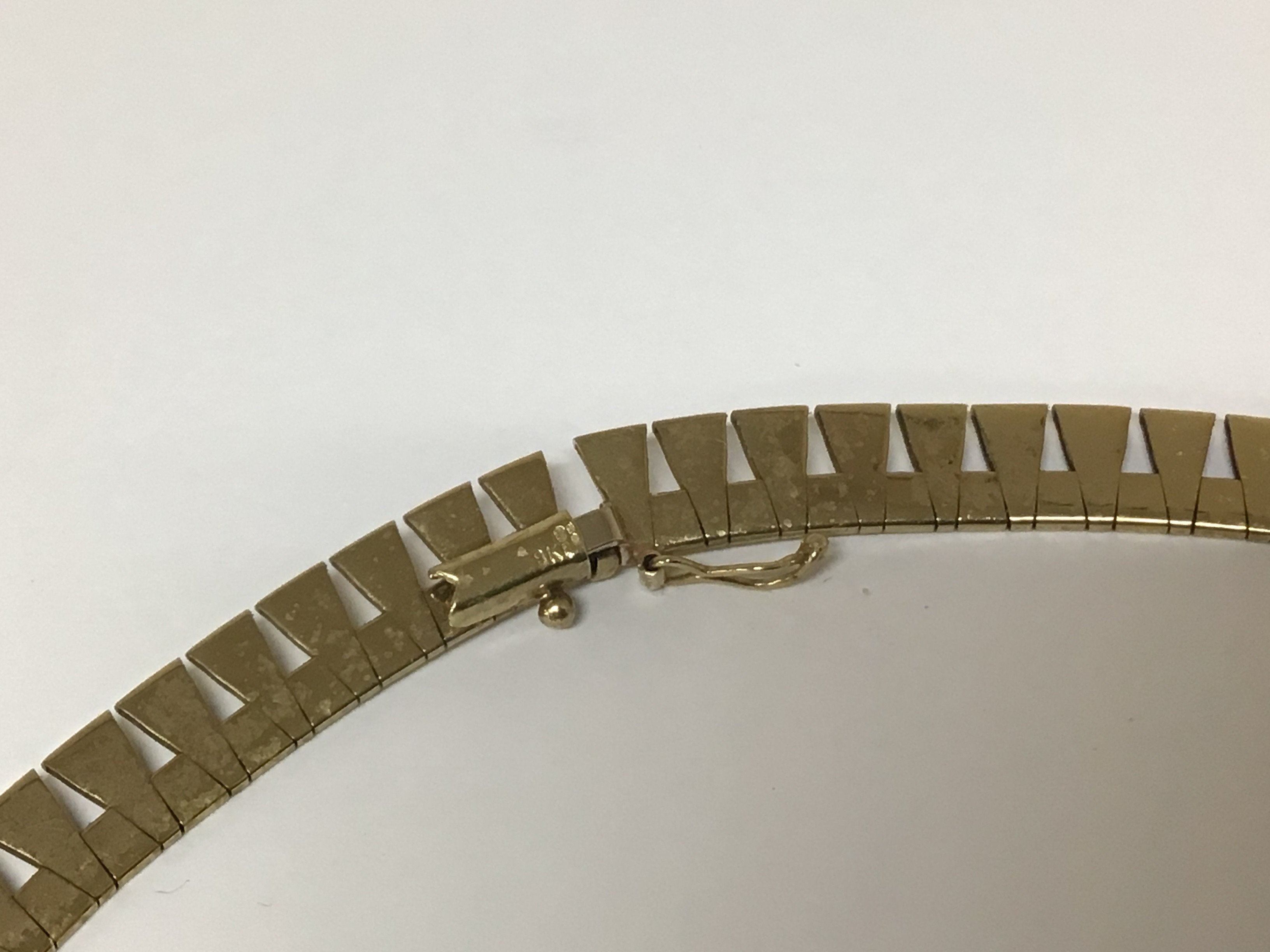 A modern design 9carat gold necklace. Weight 29g approximately.
