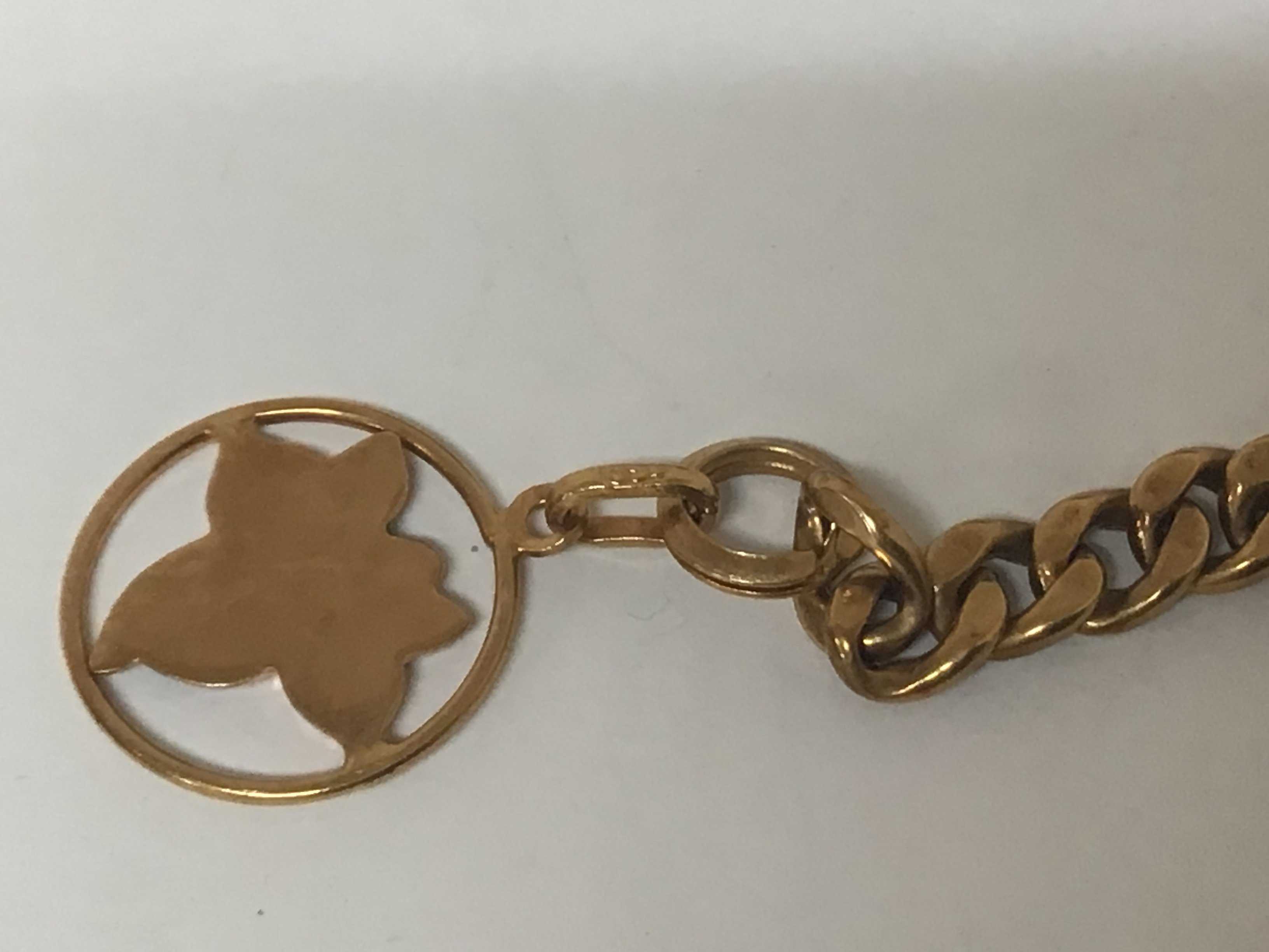 A gold ID bracelet possibly 18carat gold the attached enamel charm marked 750 sold as seen buyer to satisfy themselves before they bid. Weight 7g