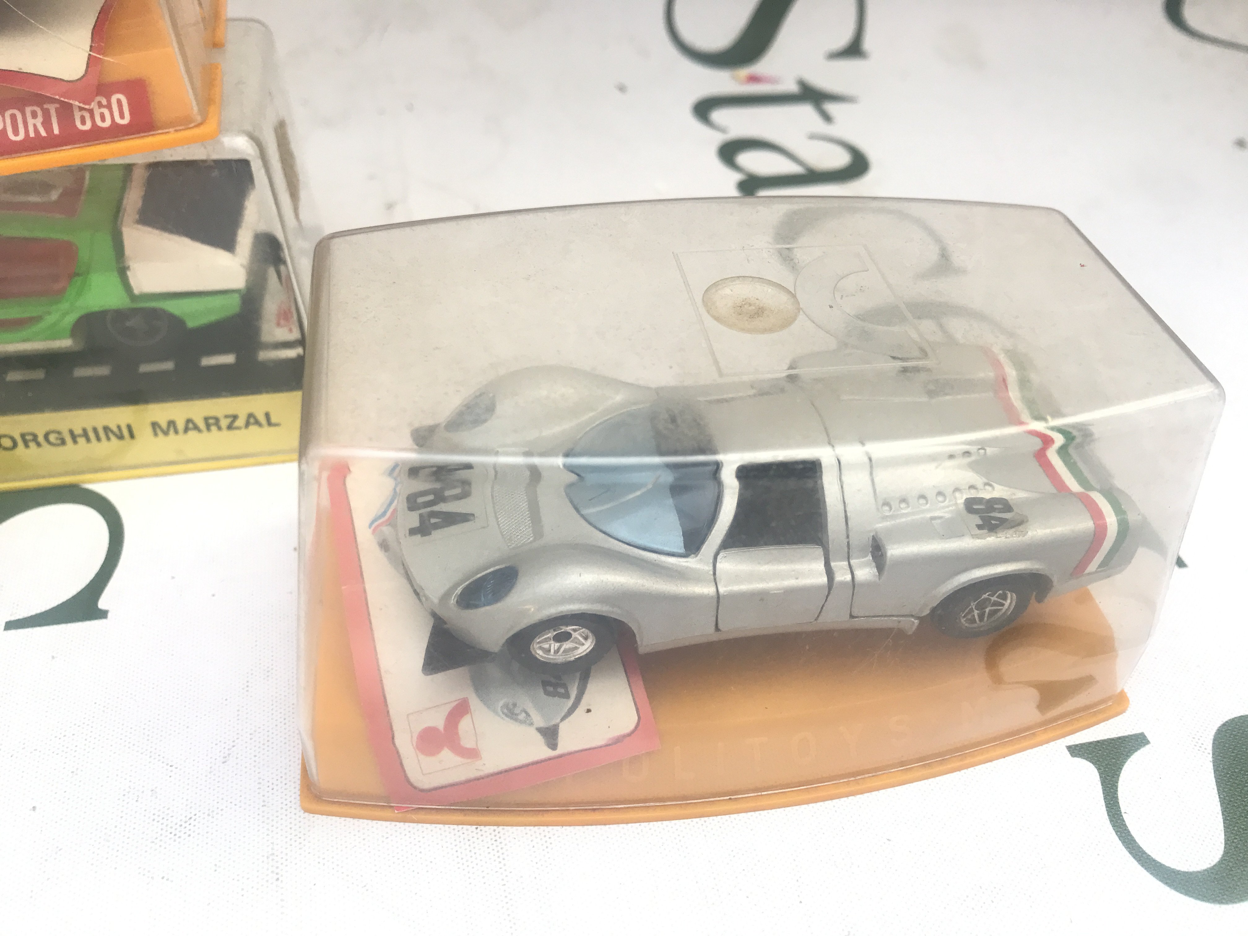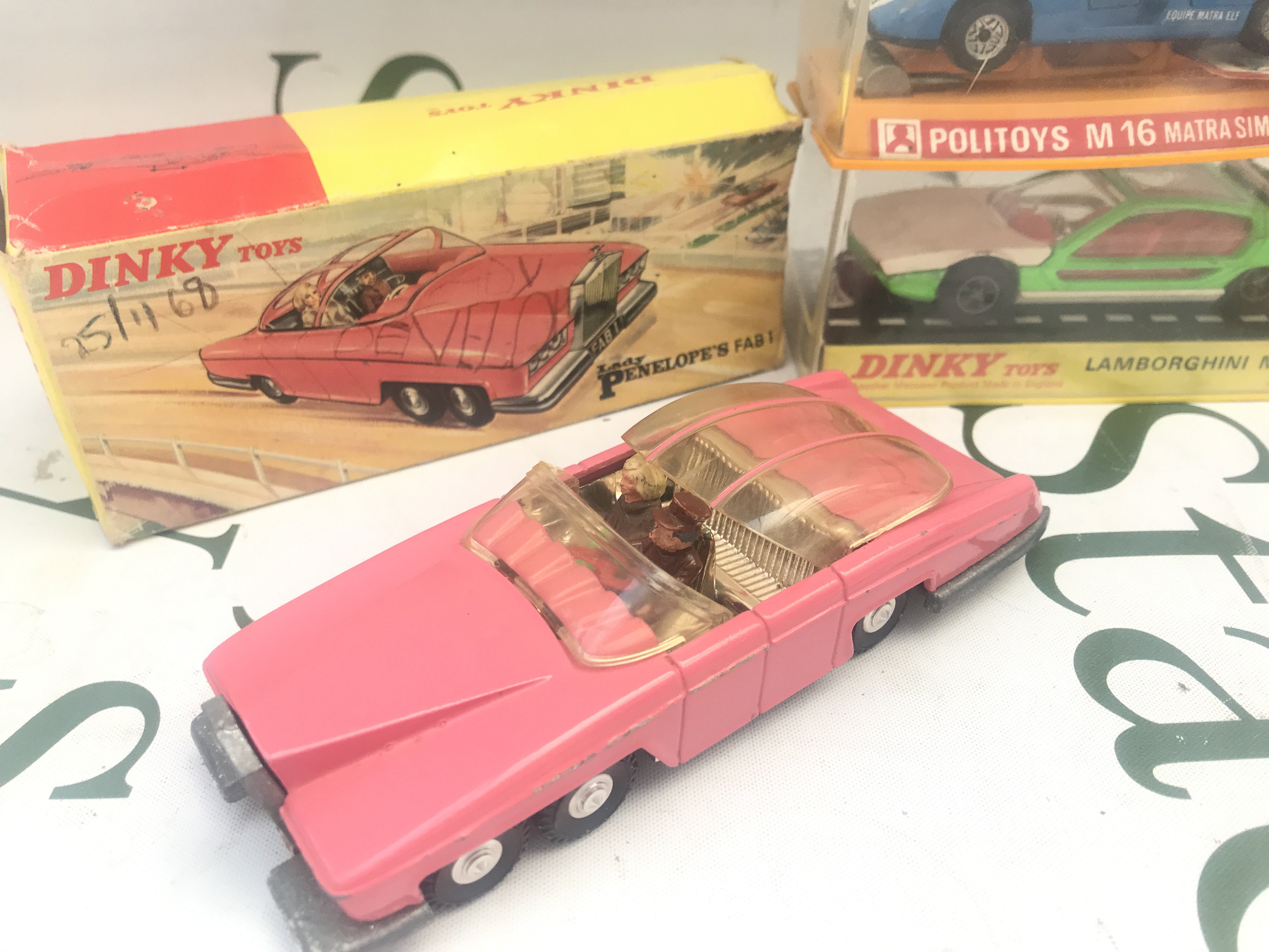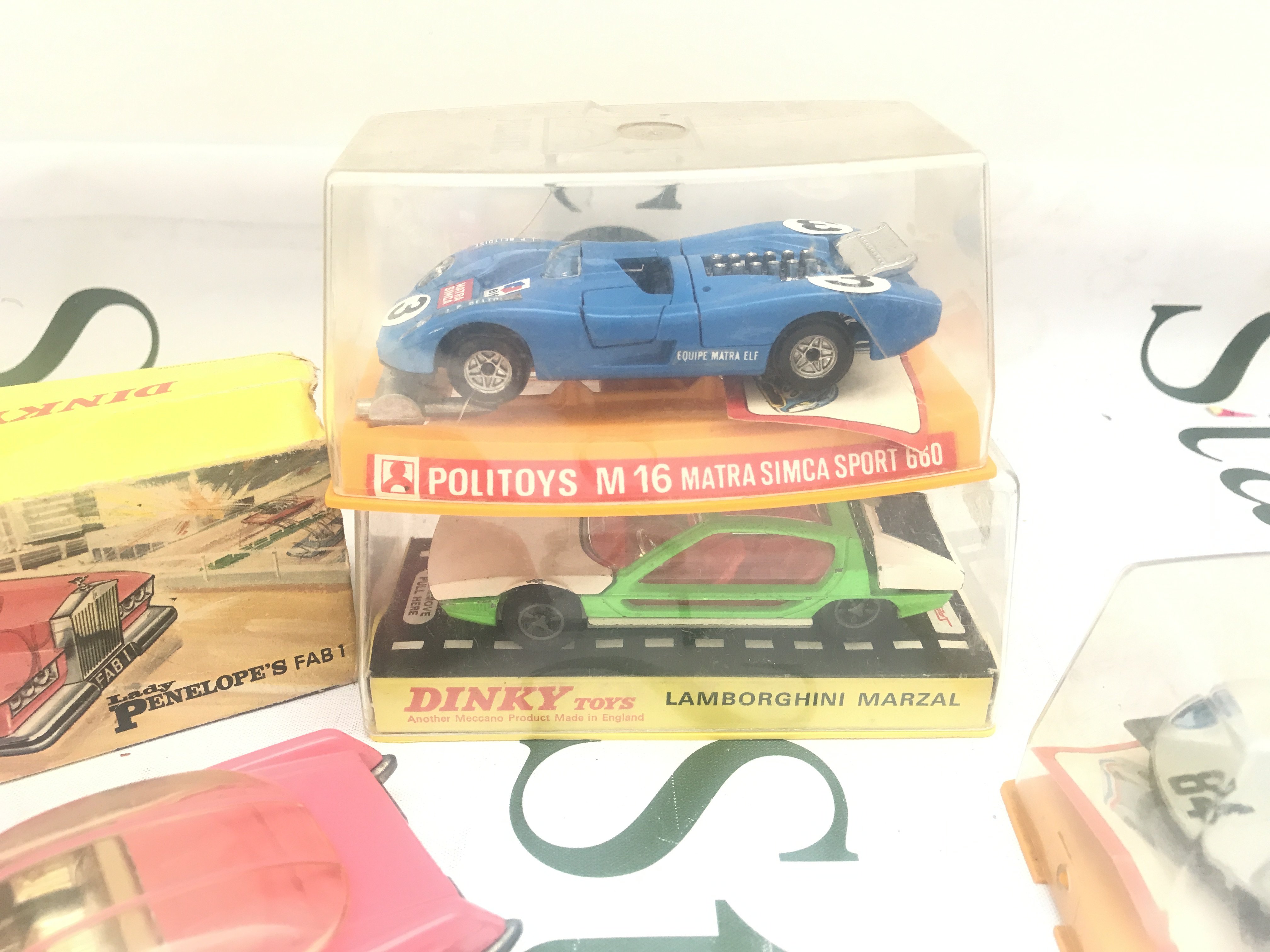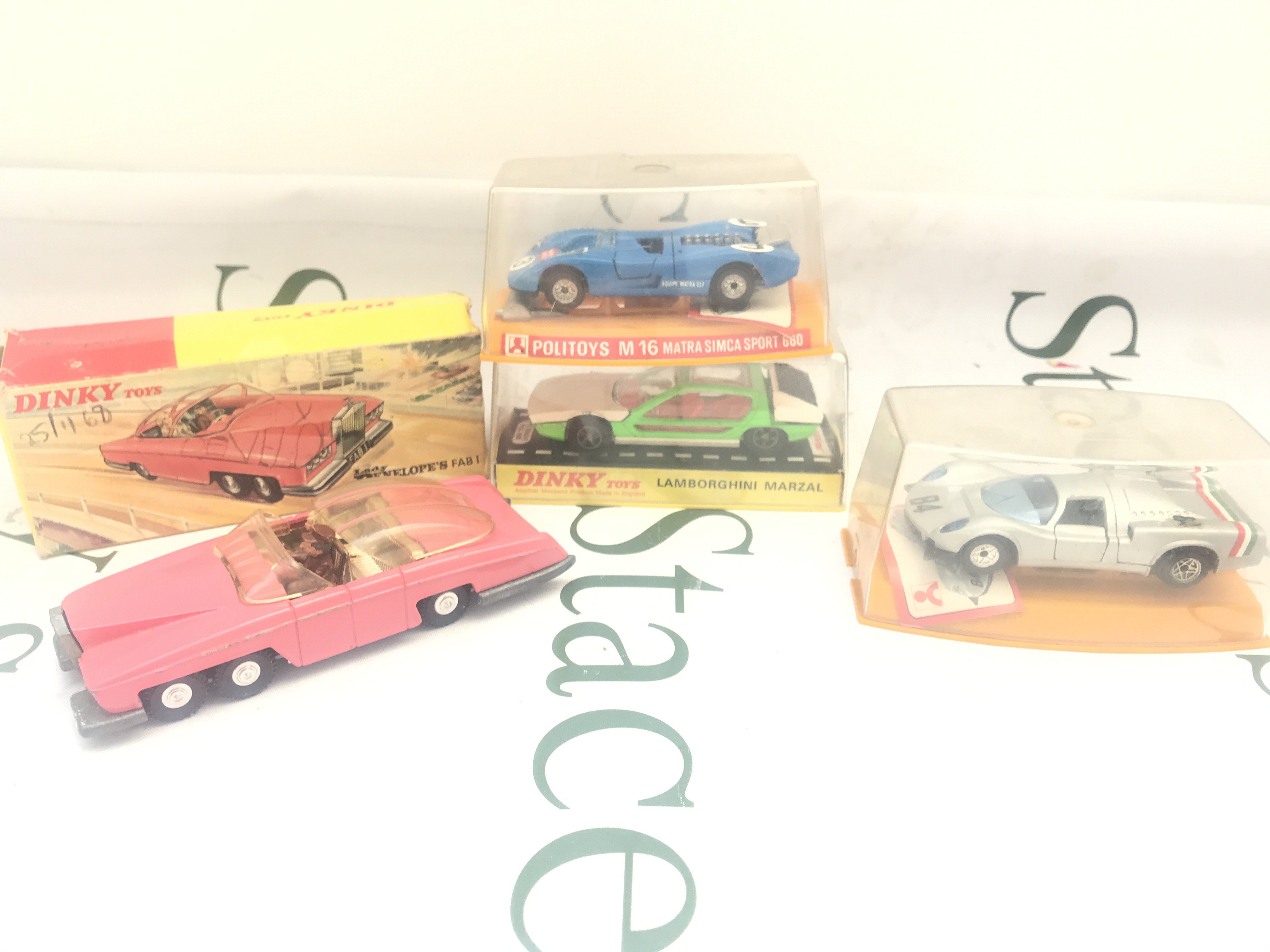 A Boxed Dinky Toys FAB 1 #100 (No Plinth) A Lamborghini Marzal #189 And 2 Politoys Sports Cars.