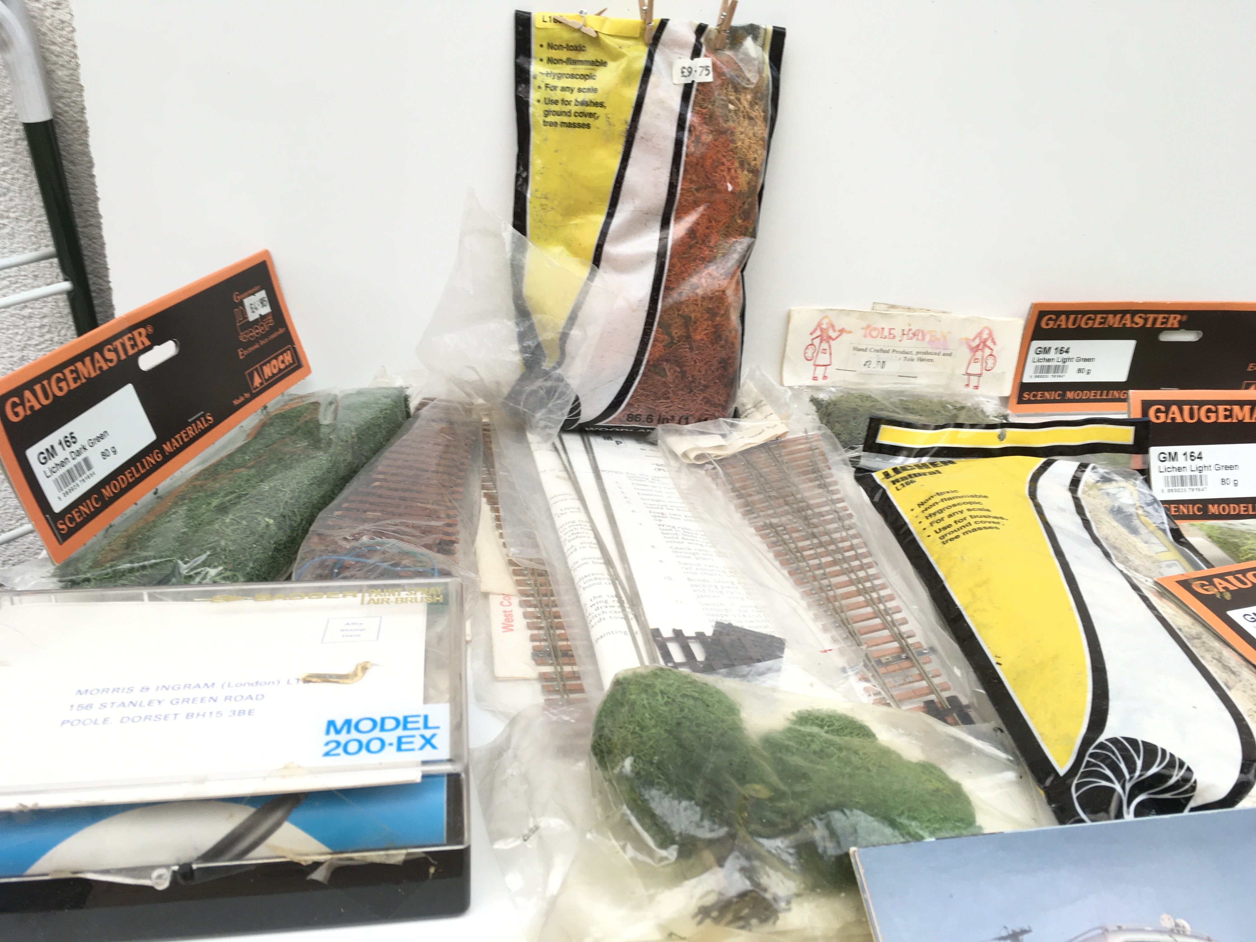 A collection of model railway accessories including track..scenery..picture cards and Air brush set. No reserve.